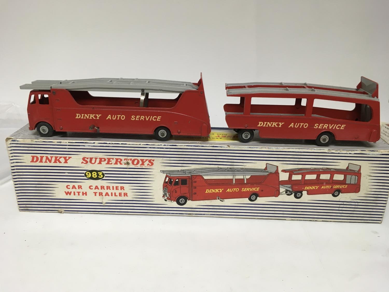 Dinky Supertoys, #983 Car carrier with trailer, boxed, hook is missing
