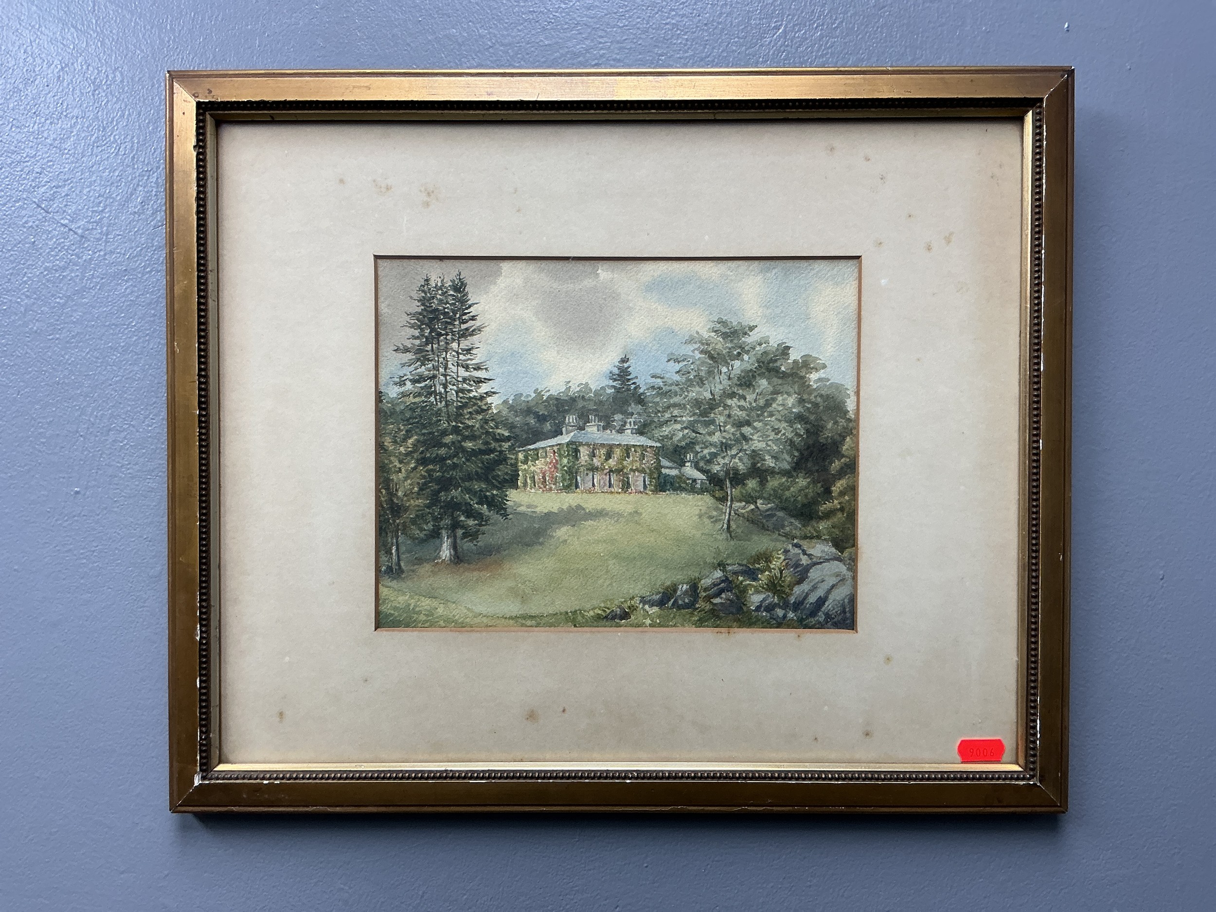 Original Framed and Glazed Watercolour of Georgian Country House set in Extensive Gardens (50cm x 40cm)