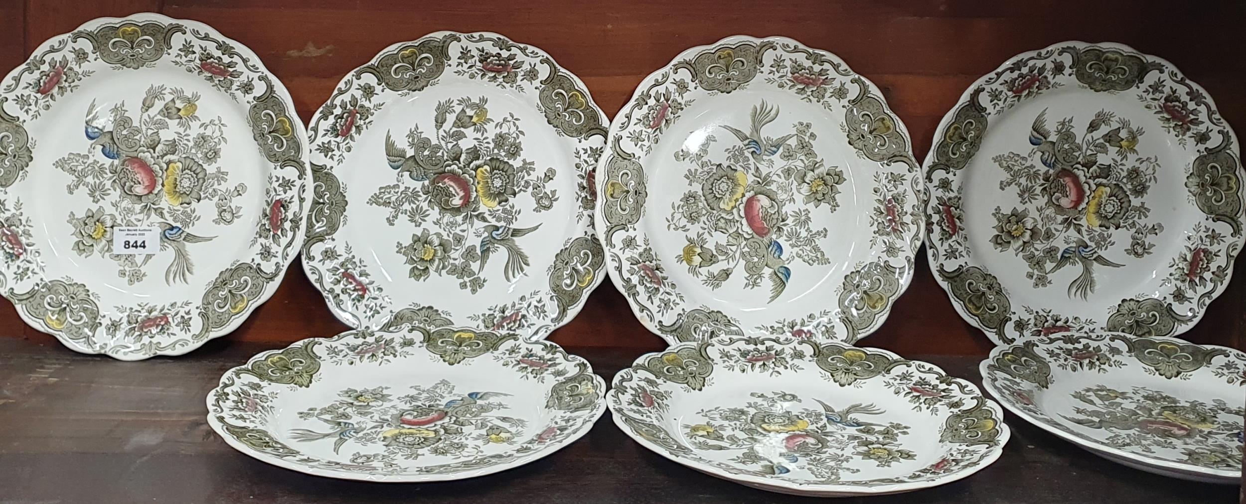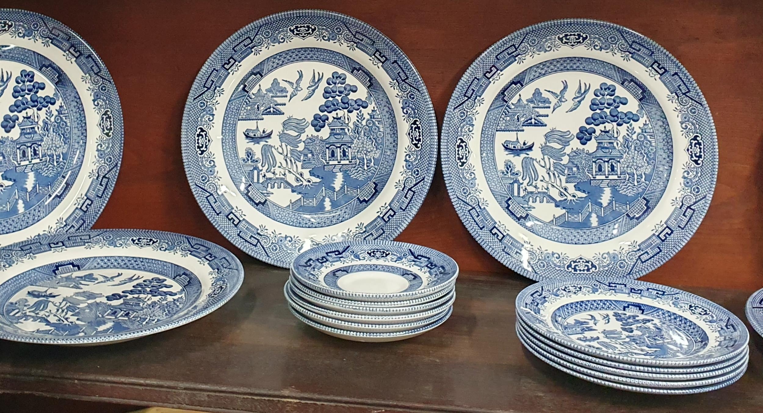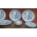 A good set of Ridgeway Staffordshire Windsor pattern Plates along with a quantity of Churchill blue and white plates.