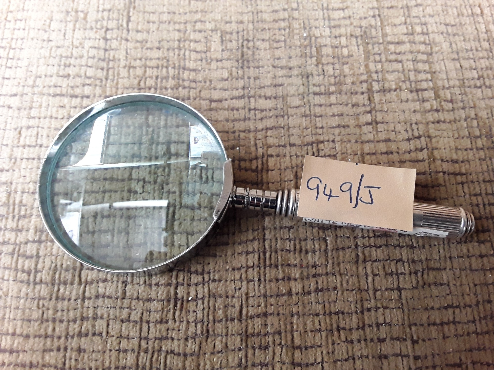 White metal magnifying glass