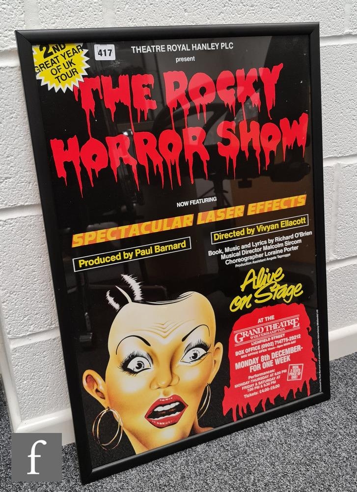 A contemporary theatre poster for the 2nd year of the UK tour of the Theatre Royal Hanley’s production of The Rocky Horror Show, 69cm x 48cm, framed.