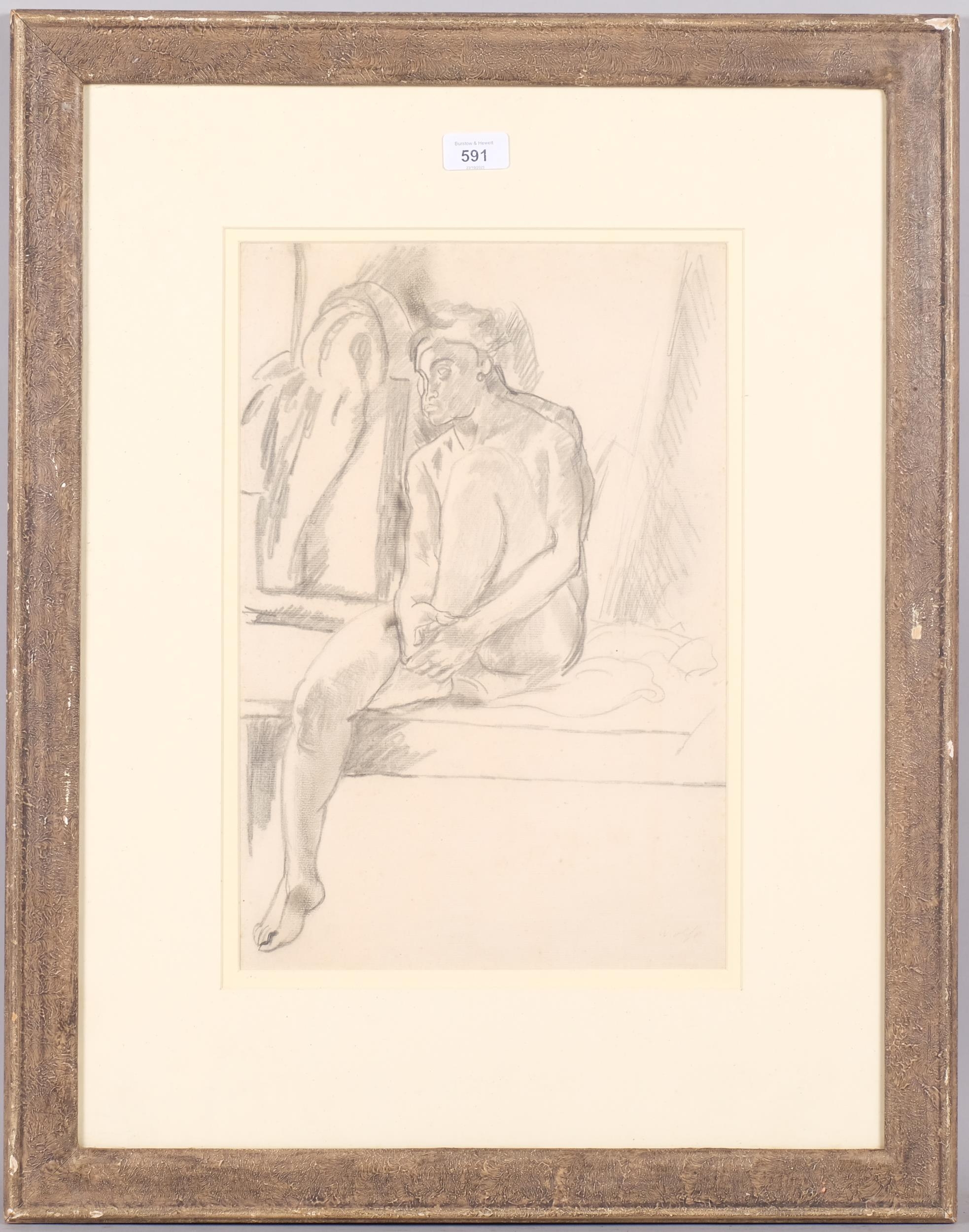 Edward Wolfe (1896/7 - 1981/2), nude life study, pencil drawing, 43cm x 28cm, framed
