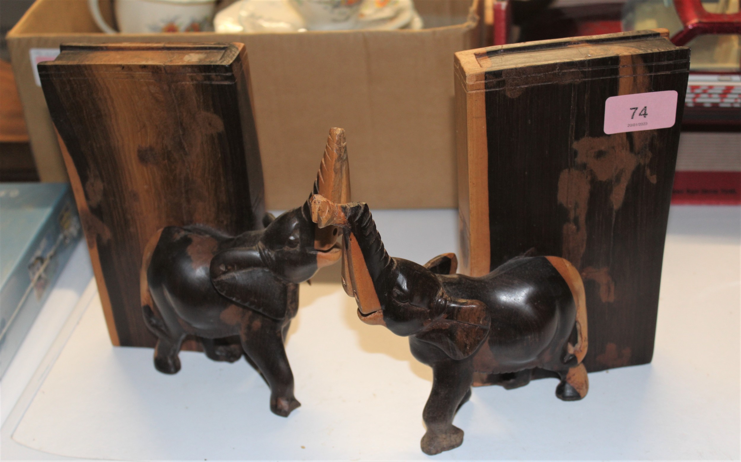 Pair of Hardwood (possibly African Blackwood) African Elephant Bookends (some loss to Trunks and Tusks are missing)