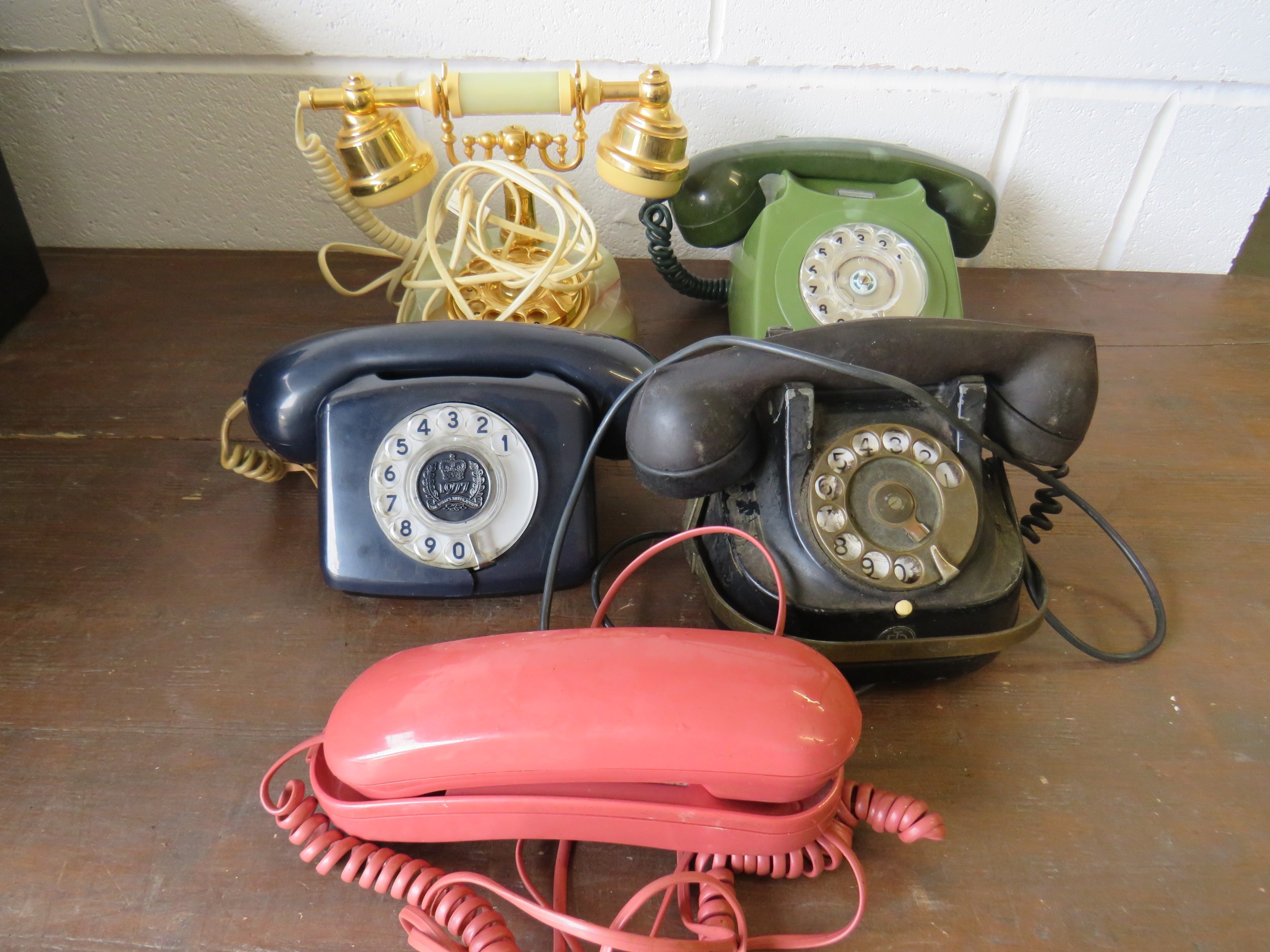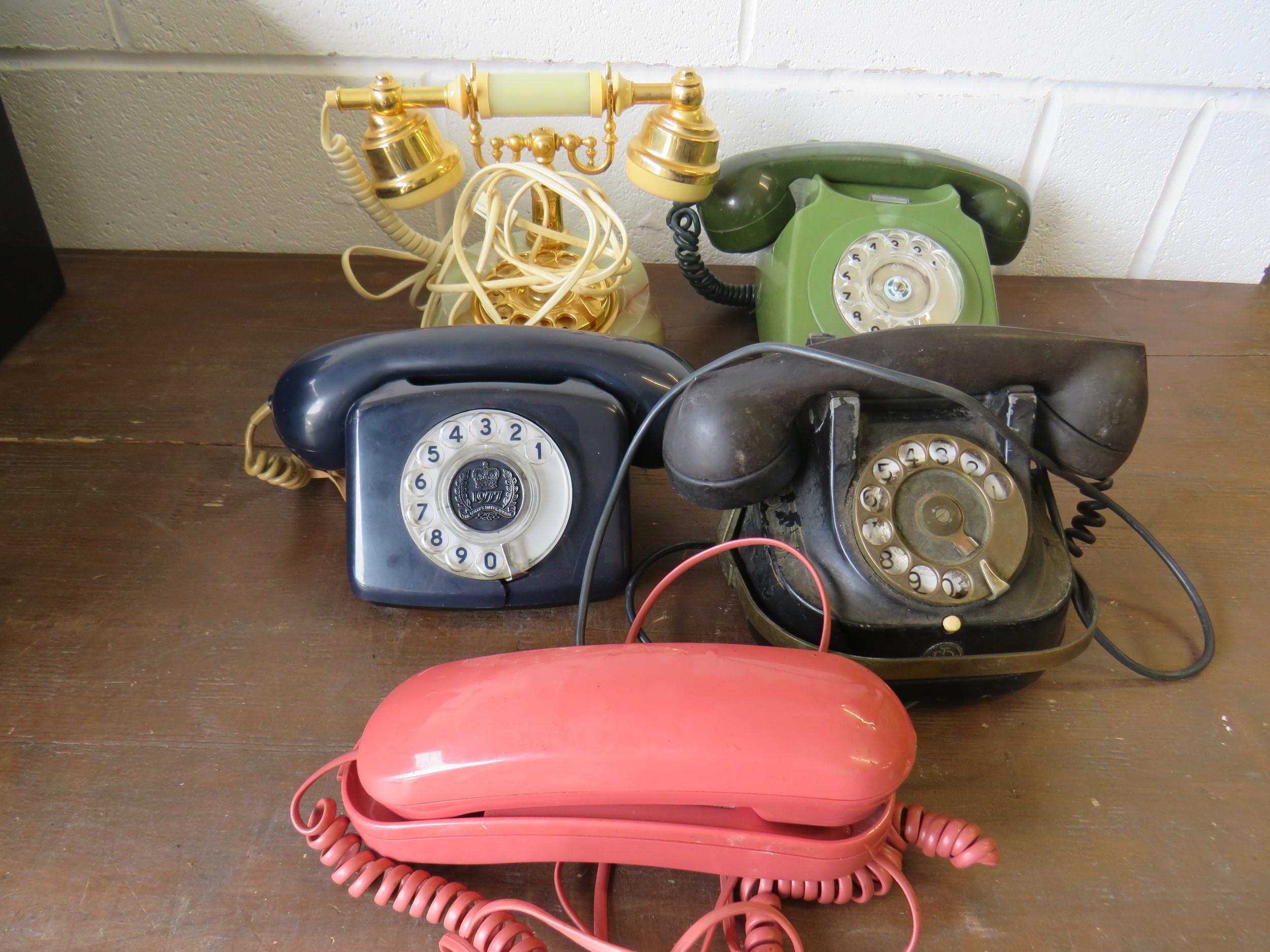 Five vintage landline telephones