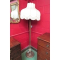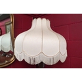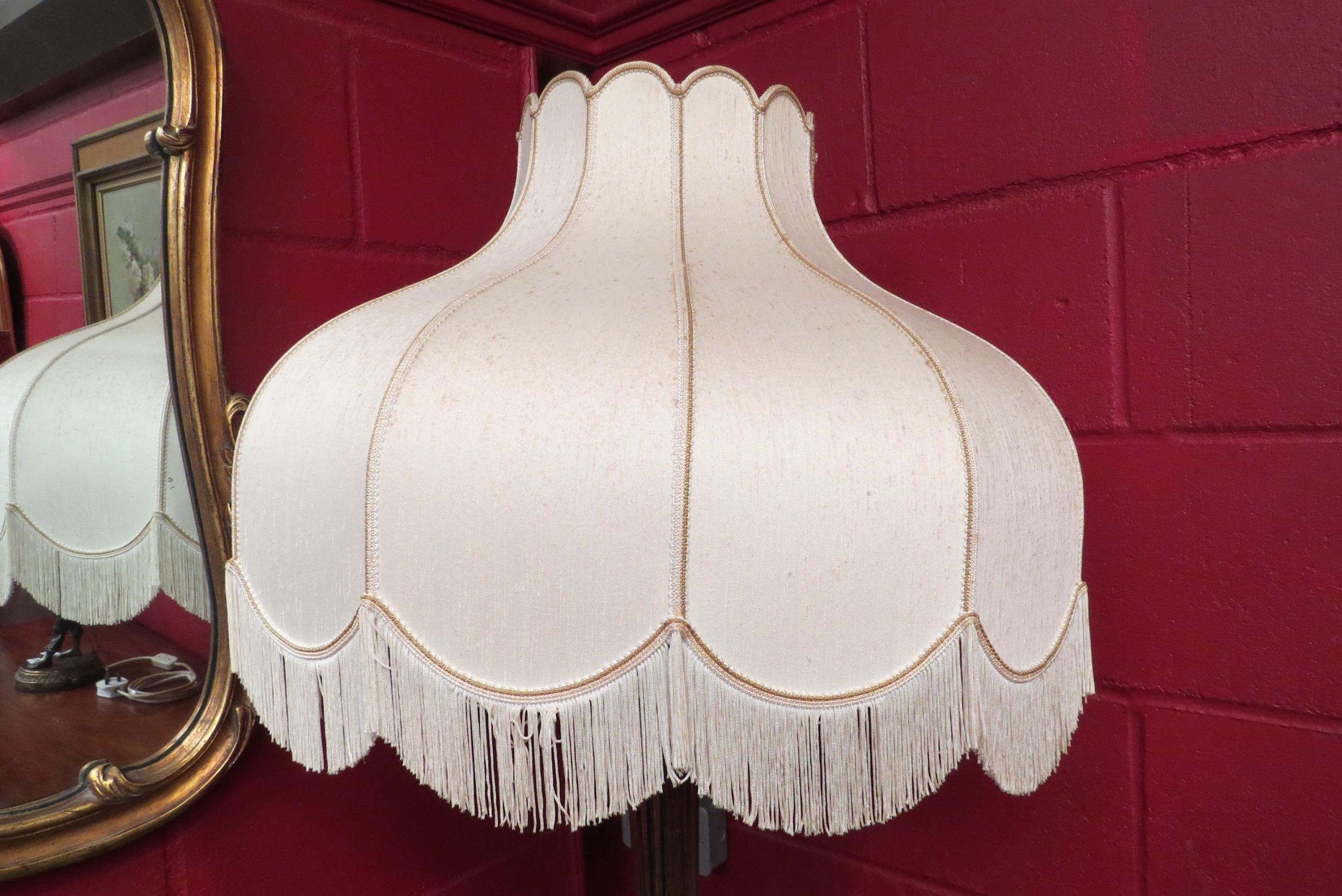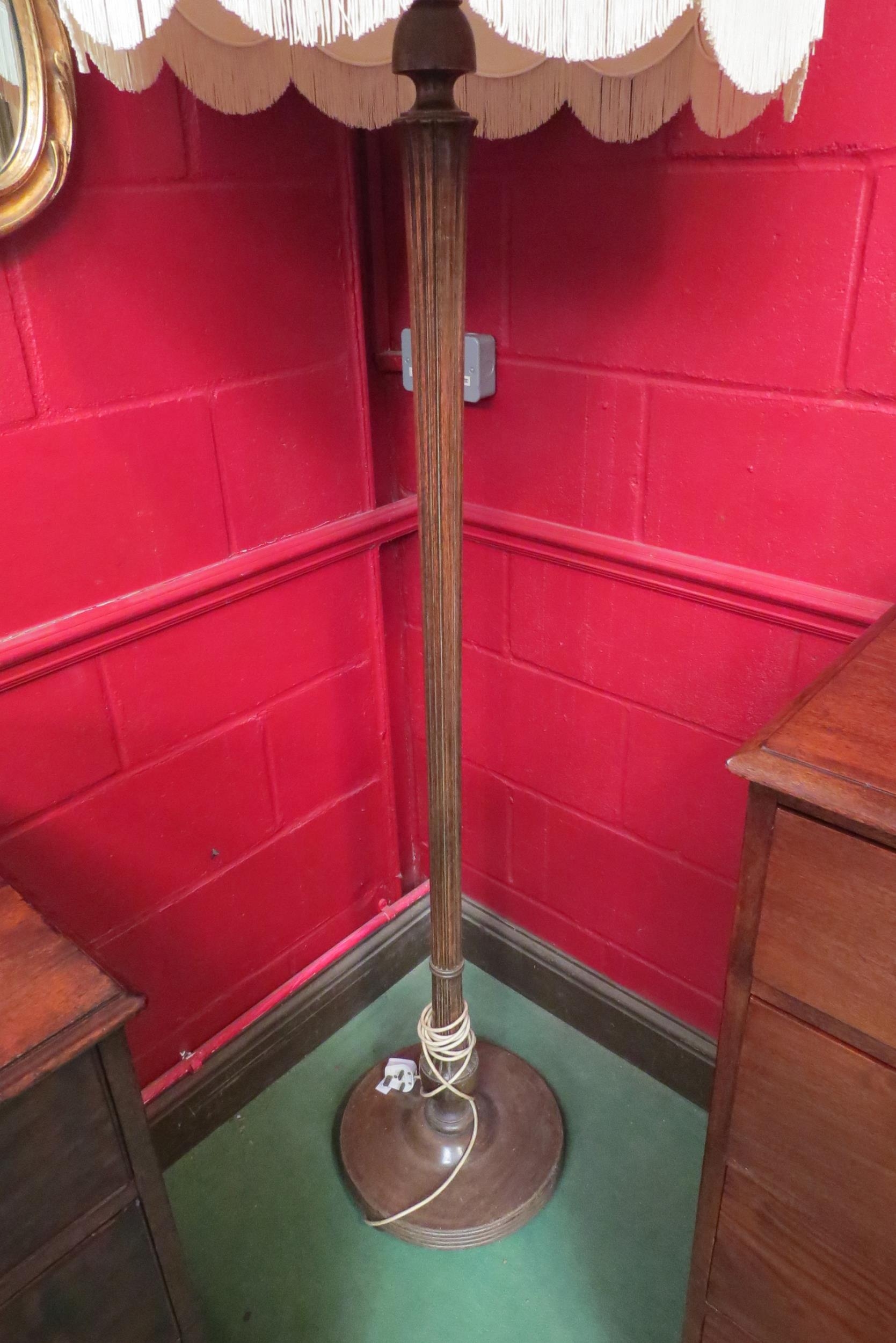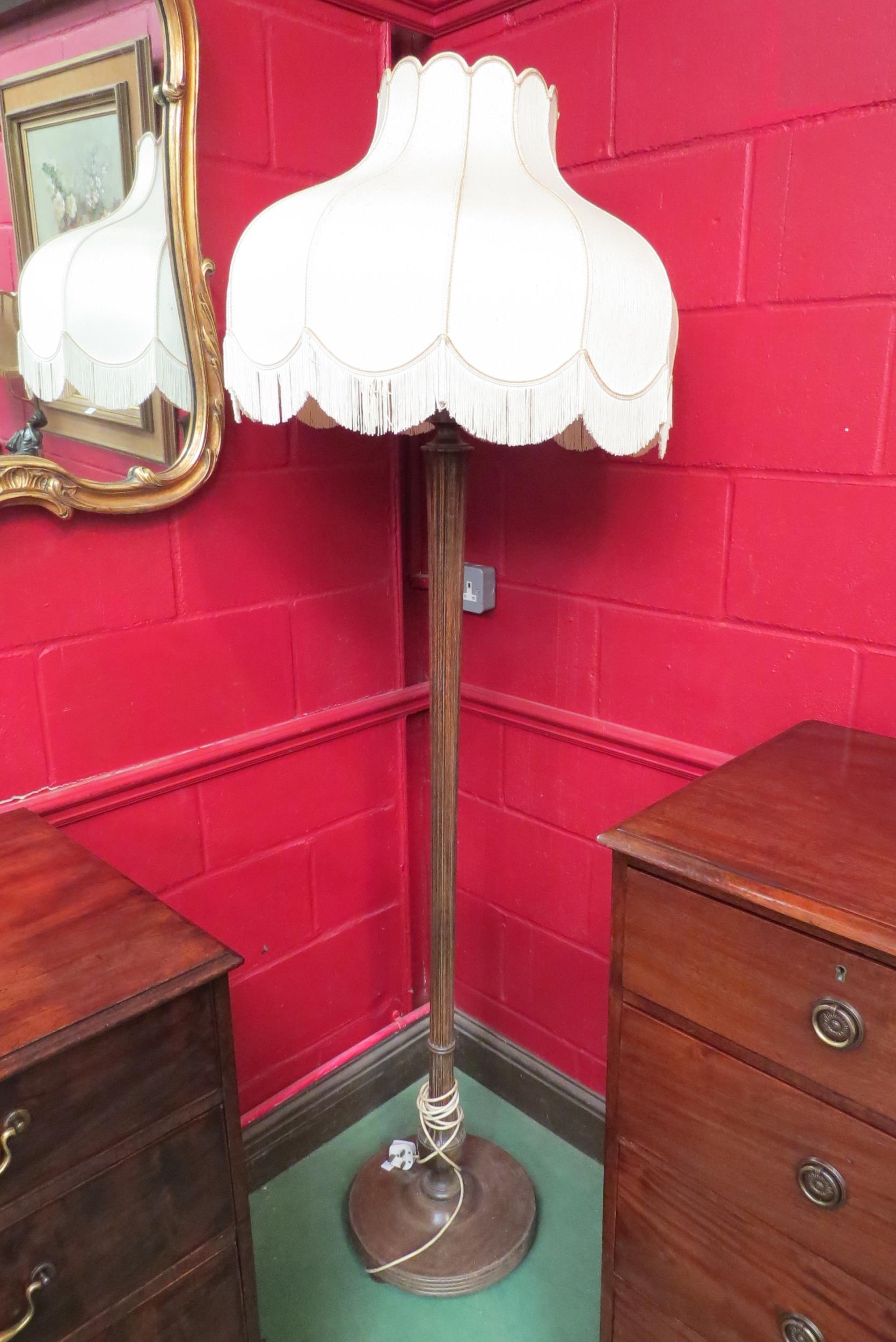 A reeded standard lamp with tasselled shade