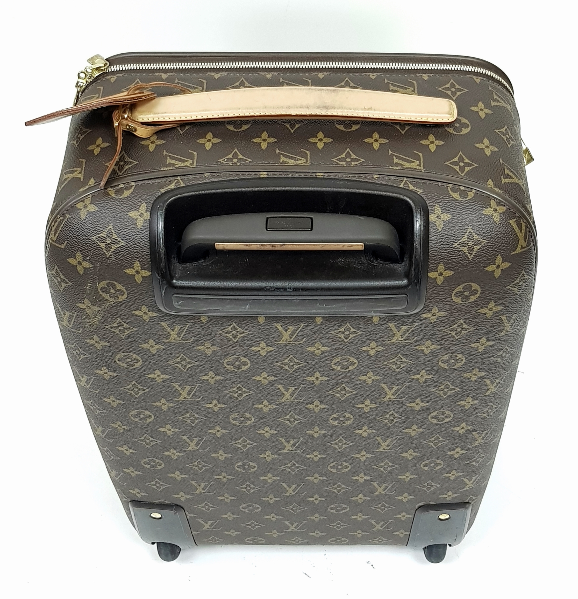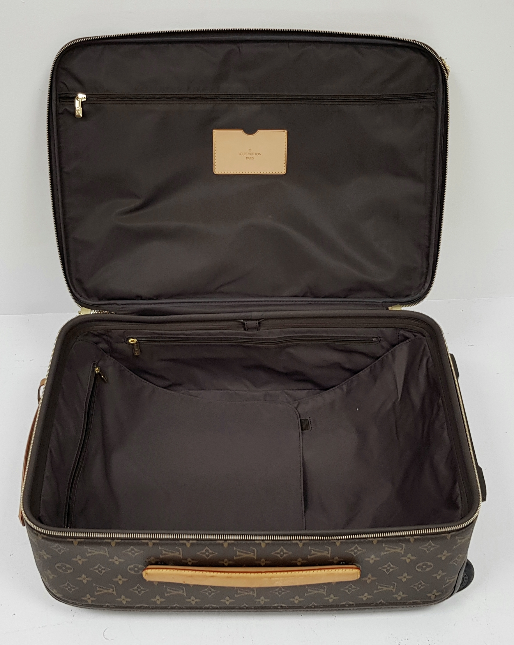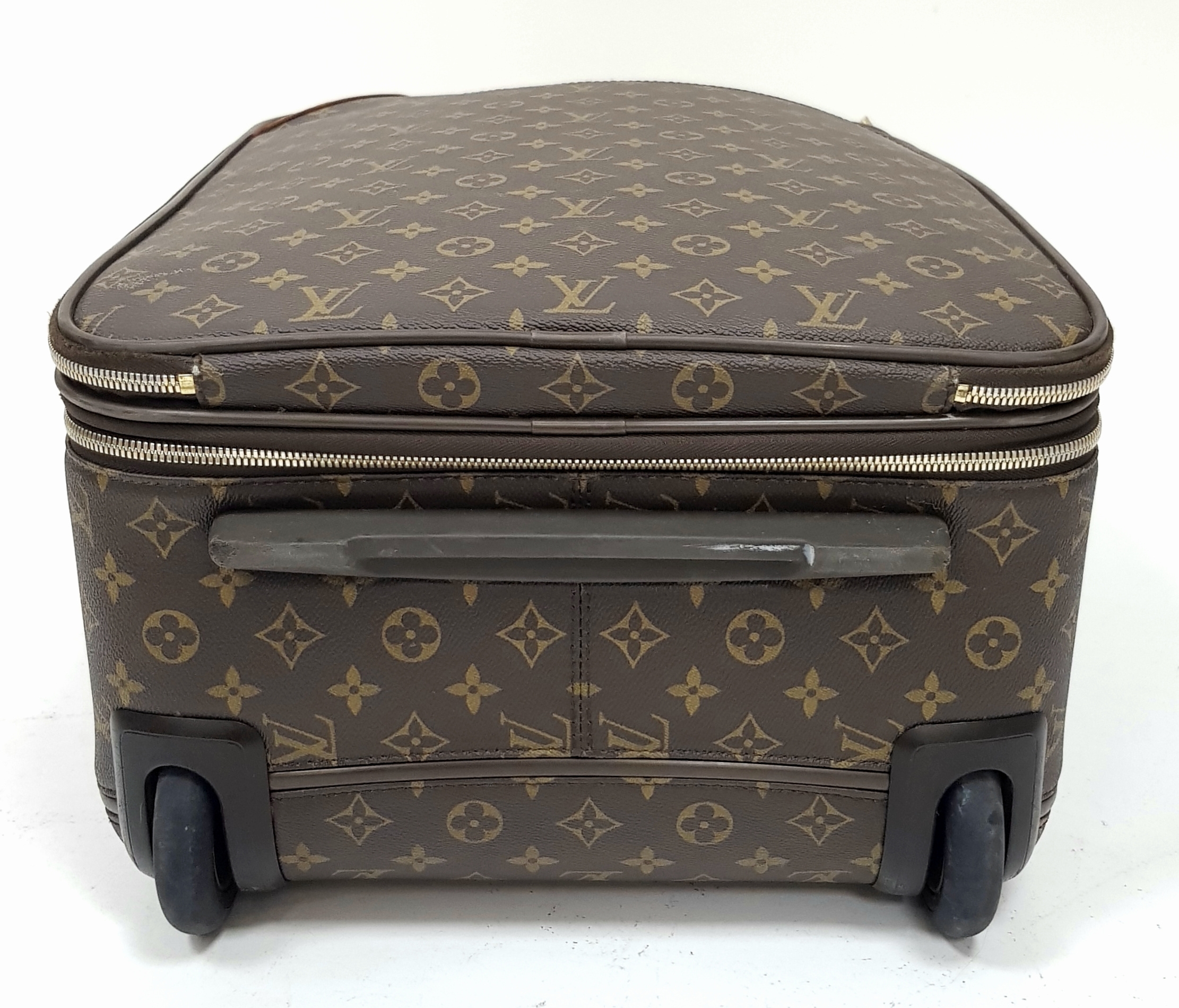 A Louis Vuitton Monogram Canvas Rolling Travel Bag. Large exterior pocket and zipped compartment. Spacious interior with two zipped compartments. 53cm height x 40cm width x
