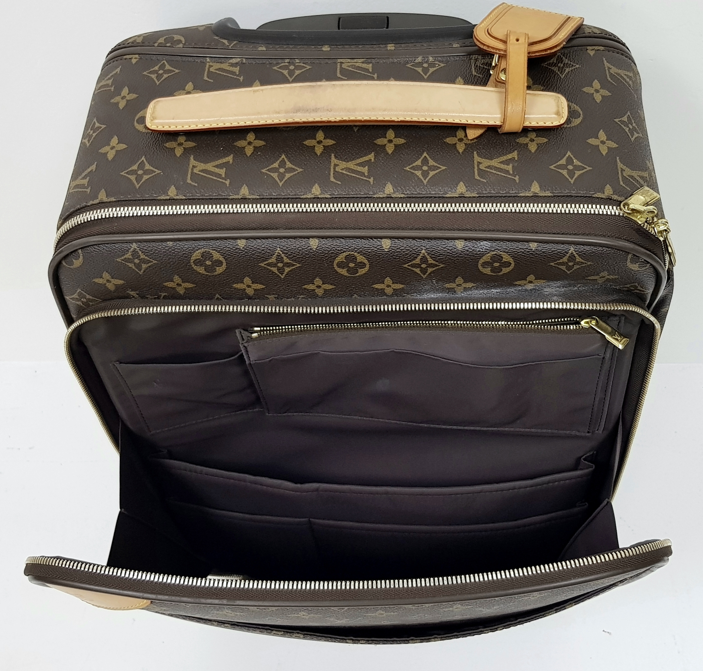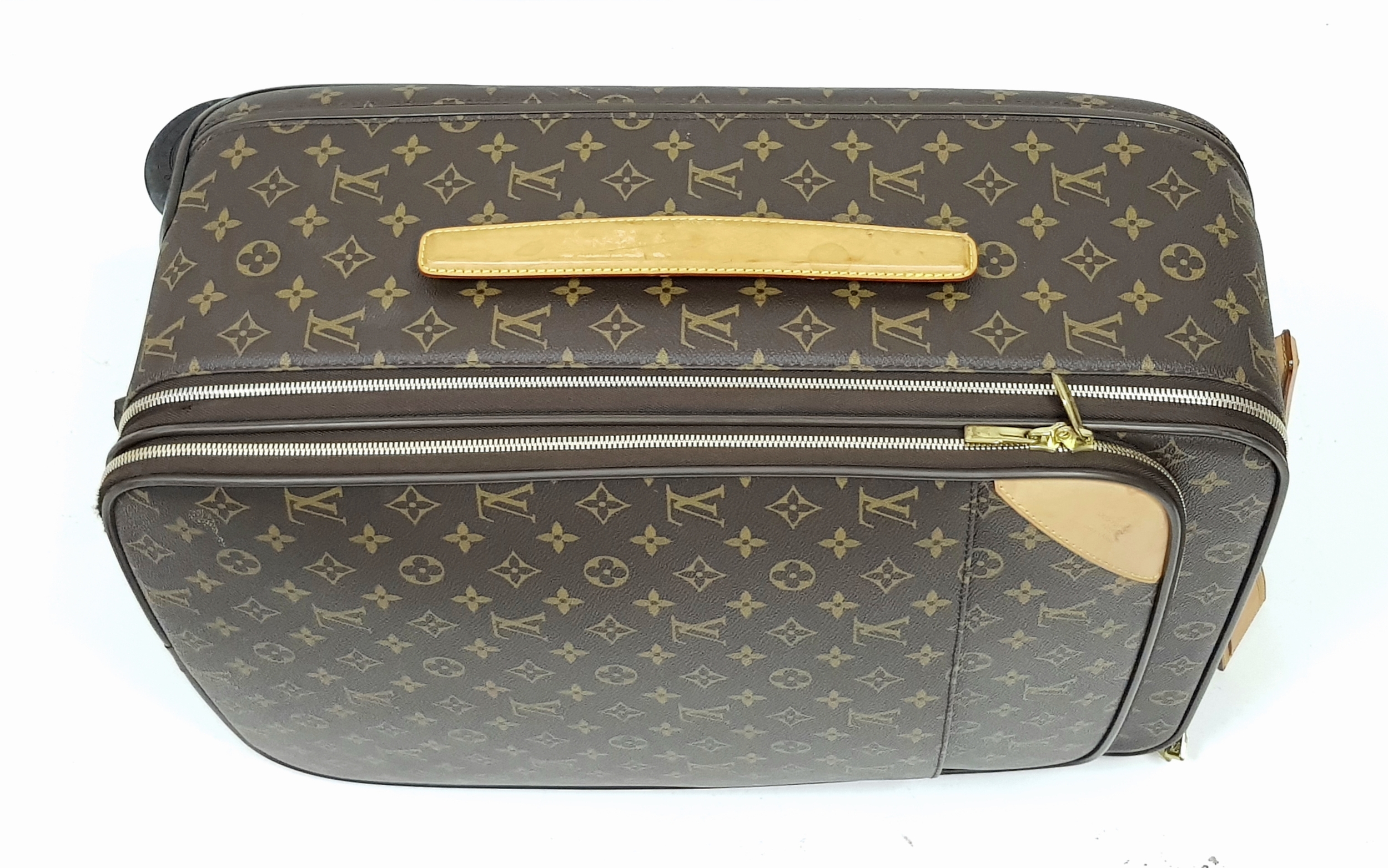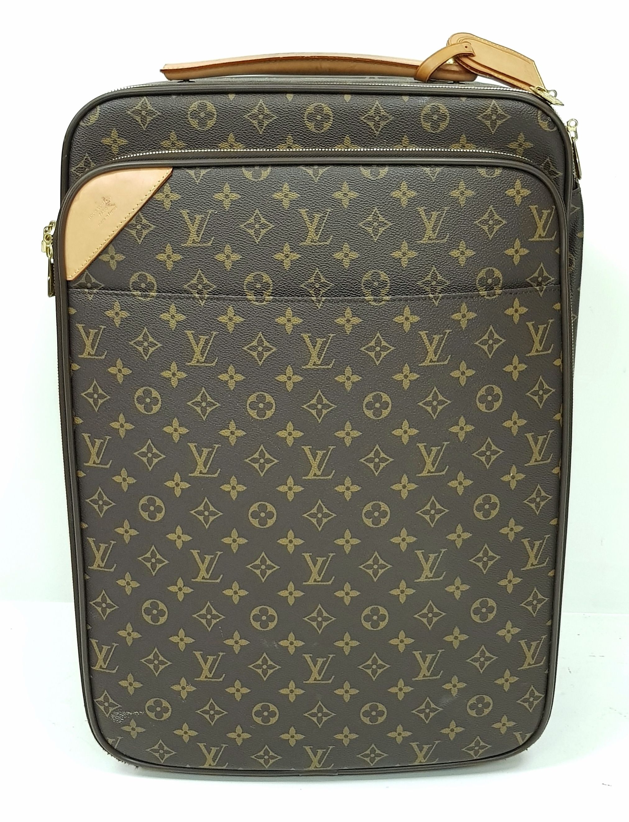 A Louis Vuitton Monogram Canvas Rolling Travel Bag. Large exterior pocket and zipped compartment. Spacious interior with two zipped compartments. 53cm height x 40cm width x