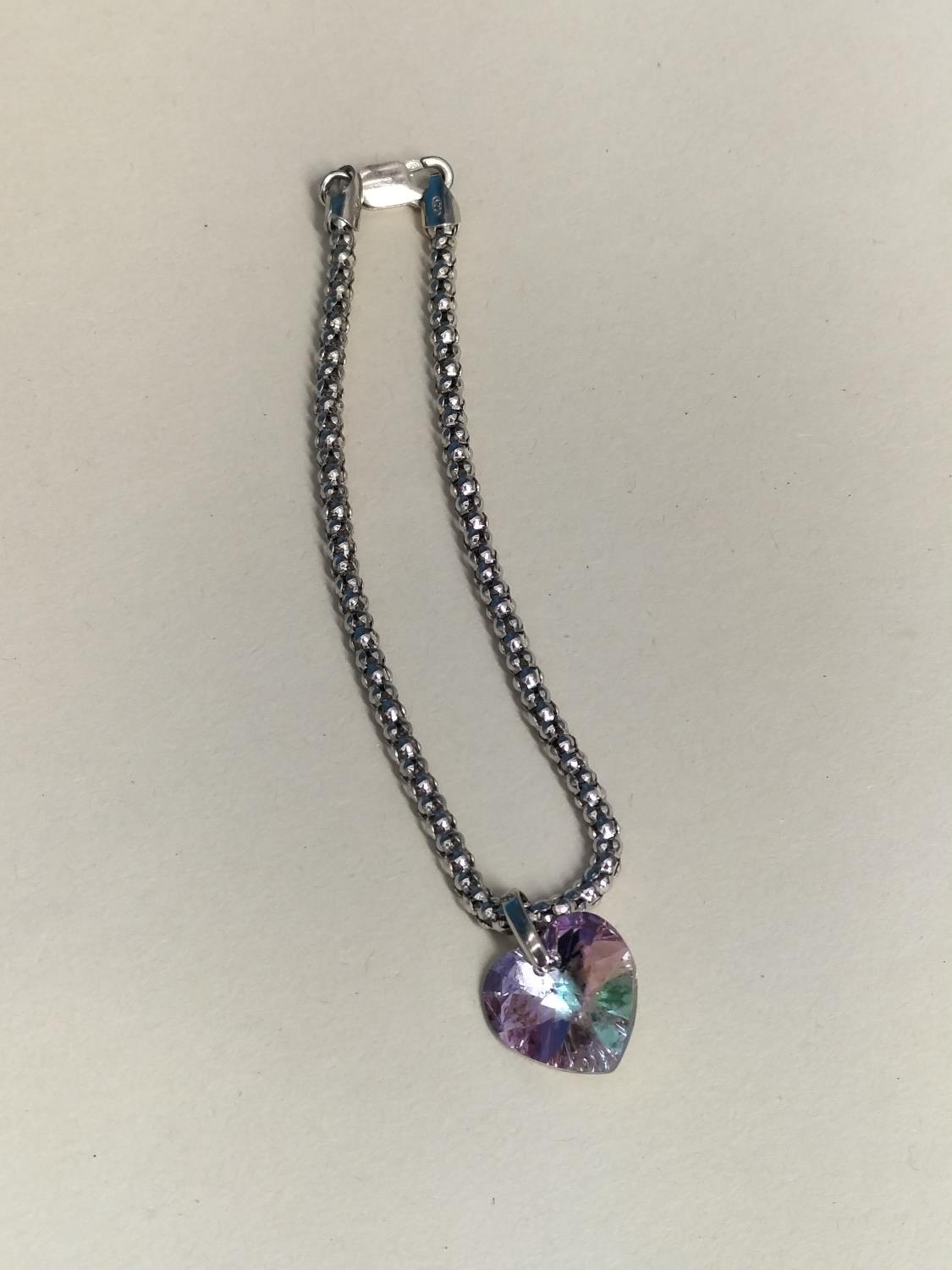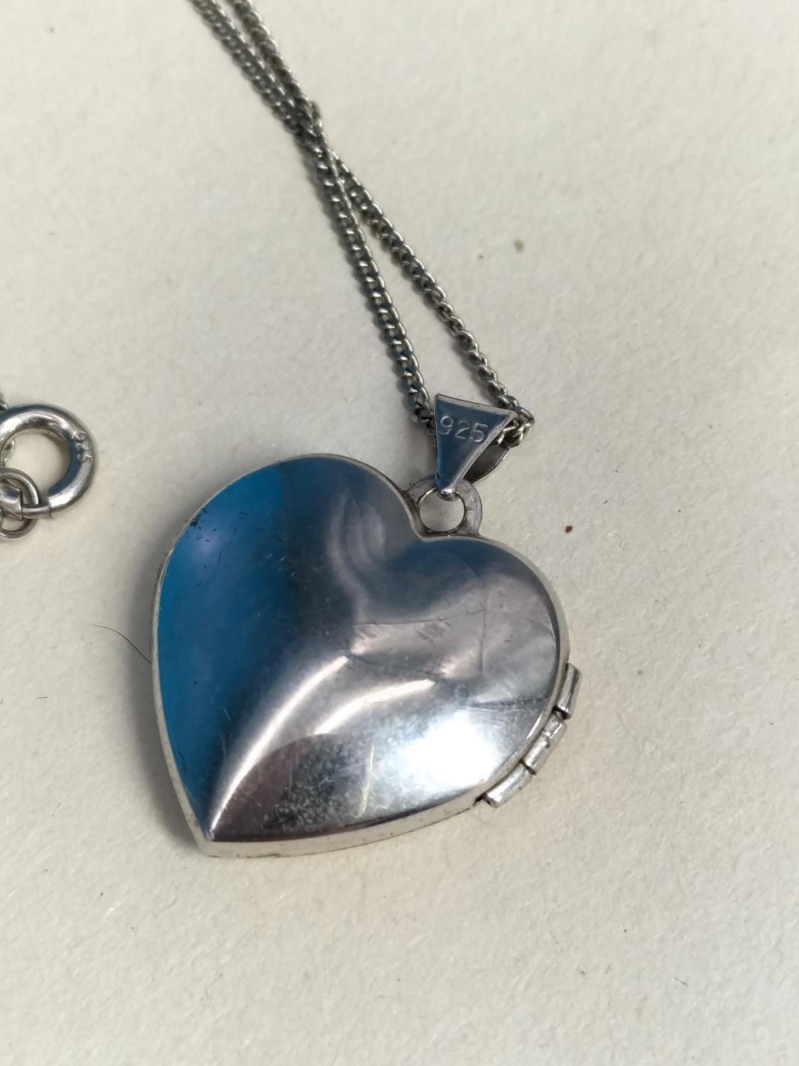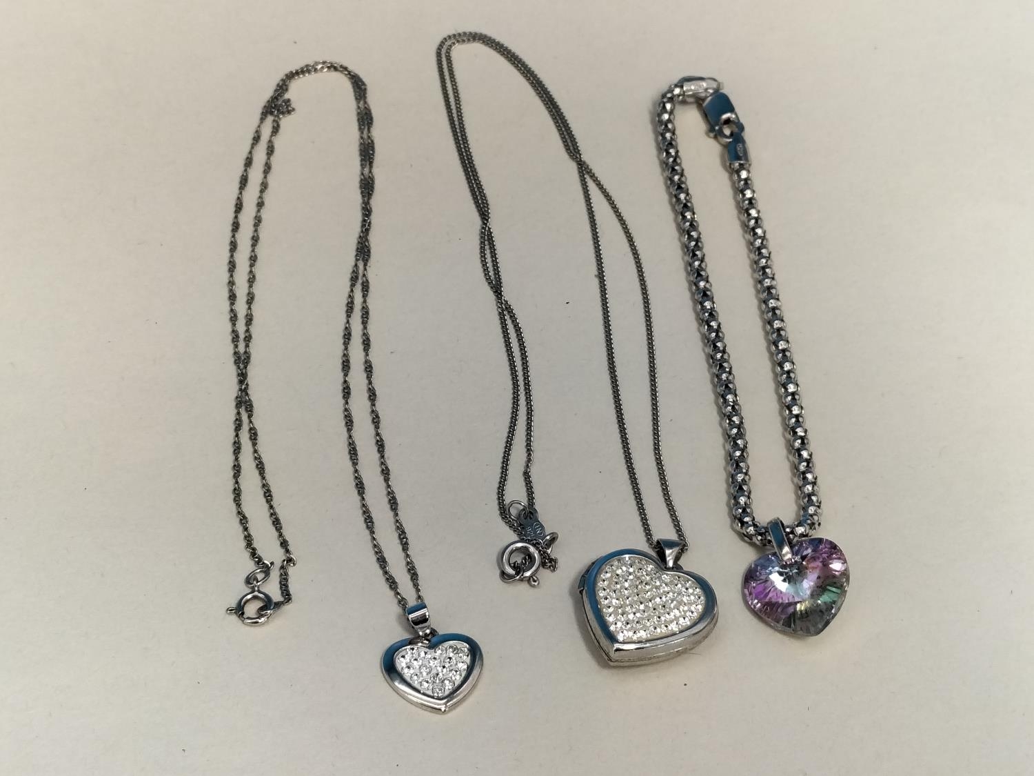 Silver 925 Locket on 16" Silver 925 Chain, Silver 925 Pendant on 17" Silver 925 Chain plus Silver 925 6" Bracelet with Rainbow Stone Heart.