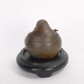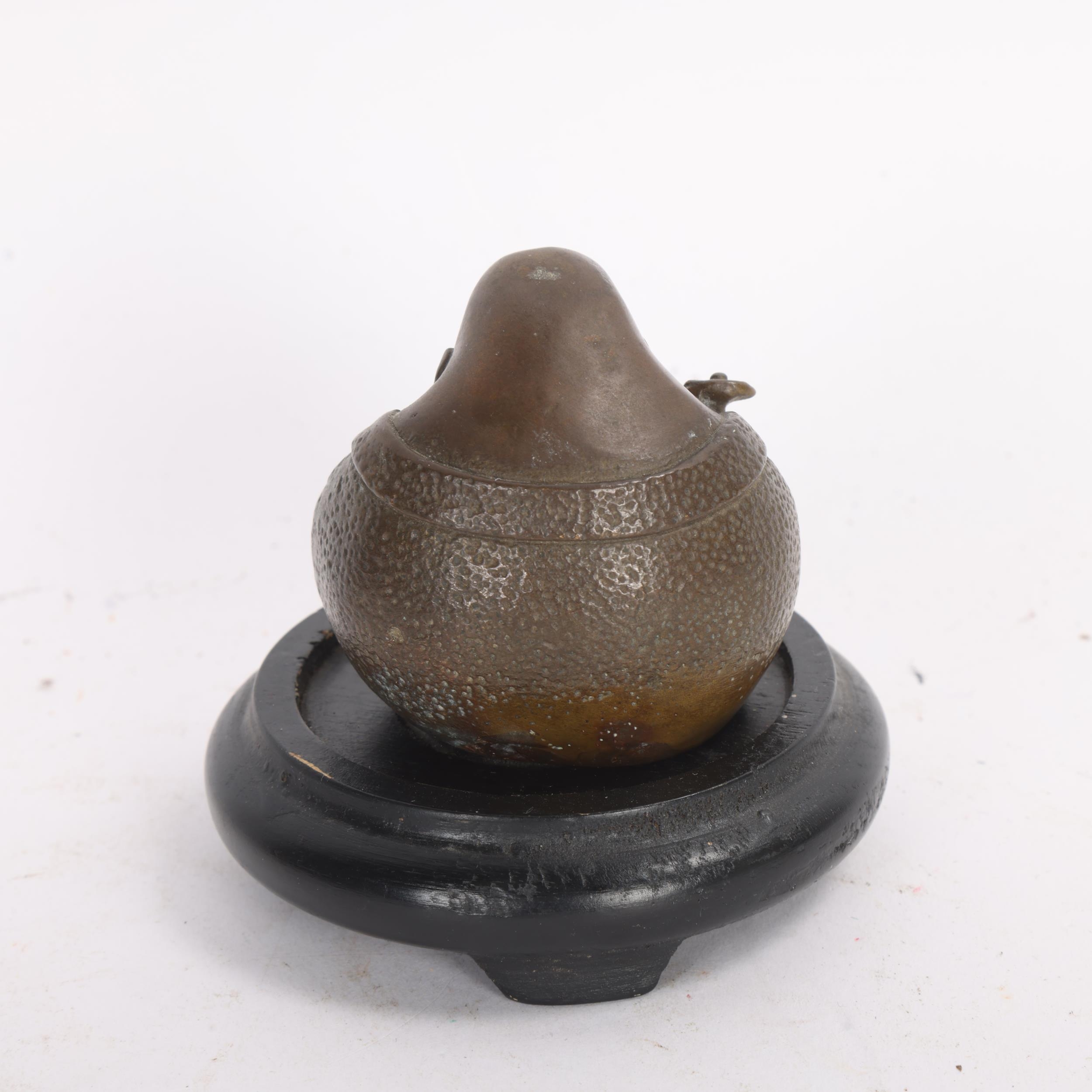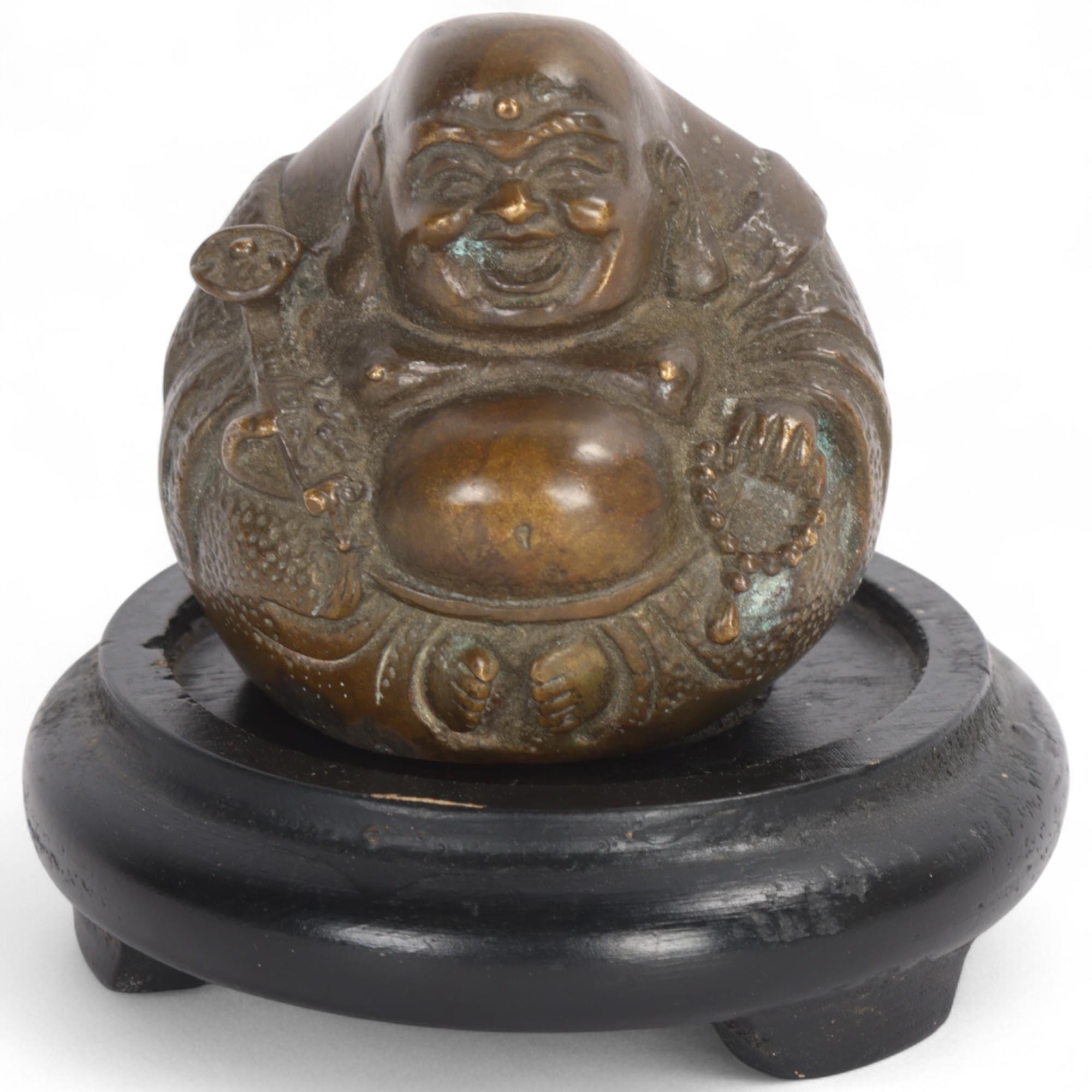 A miniature Chinese bronze seated Buddha, height 5cm, on wood stand