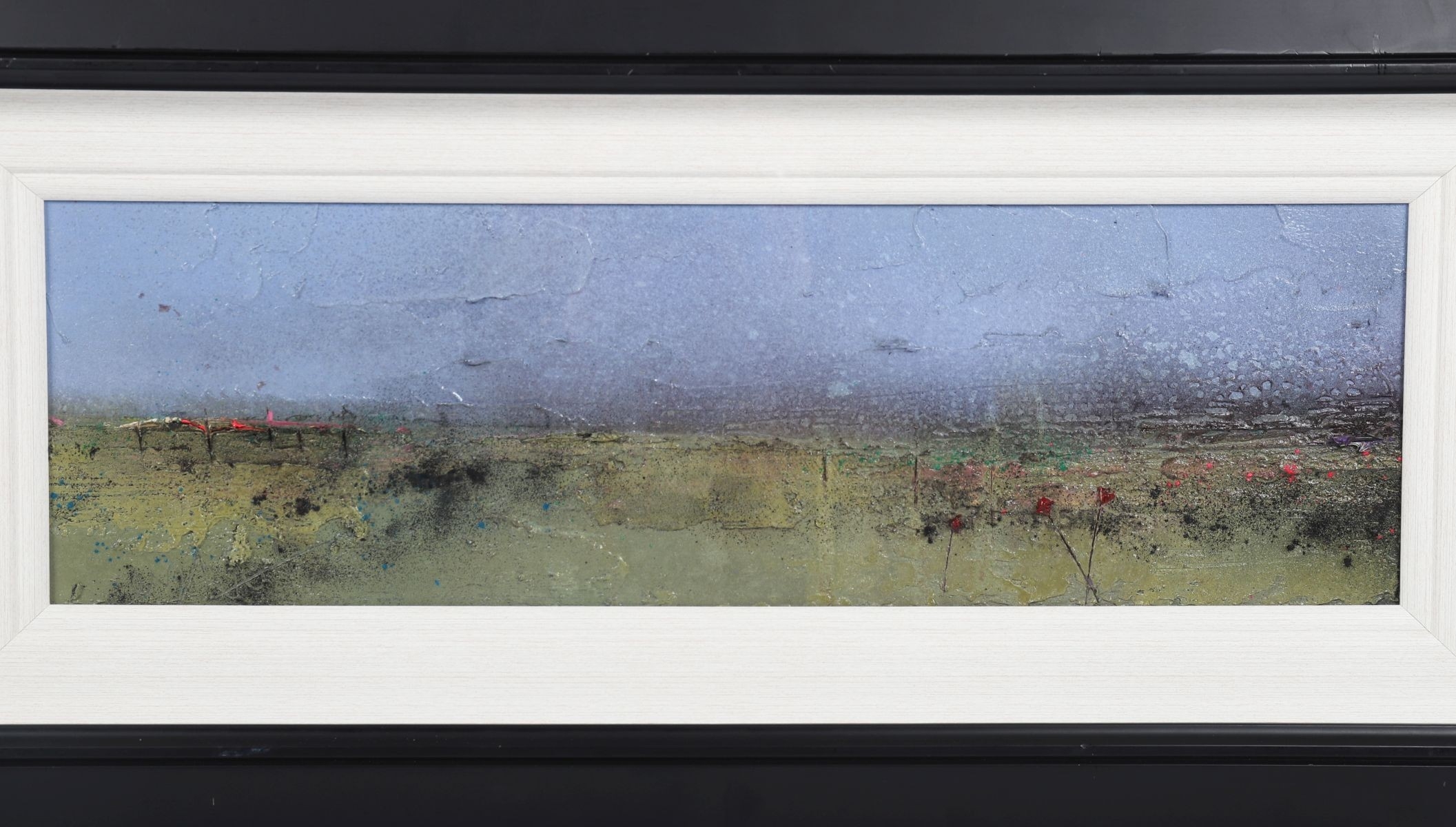 An evocative Connemara vista, painted with textured acrylics in muted tones of green and blue. The artist’s expressive layering captures the light and expanse of the Irish West. Image size: 70 x 56.5 cm.; framed: 43 x 83.5 cm. PICTURES AND PRINTS Thursday 11th December 2025 19:48:16