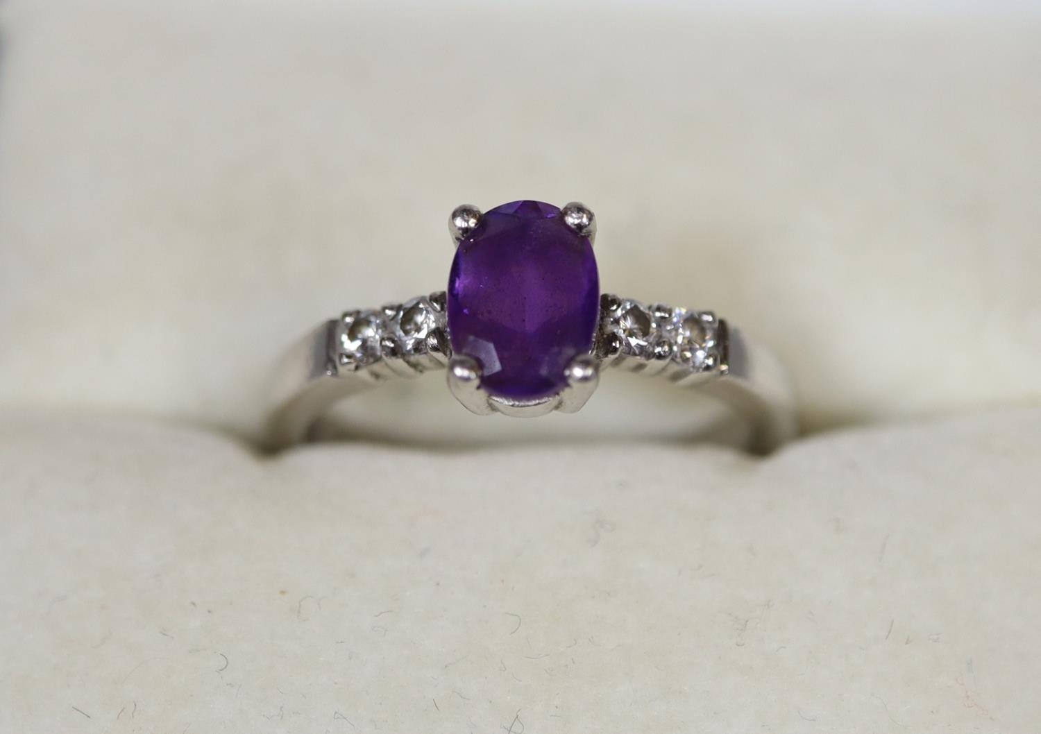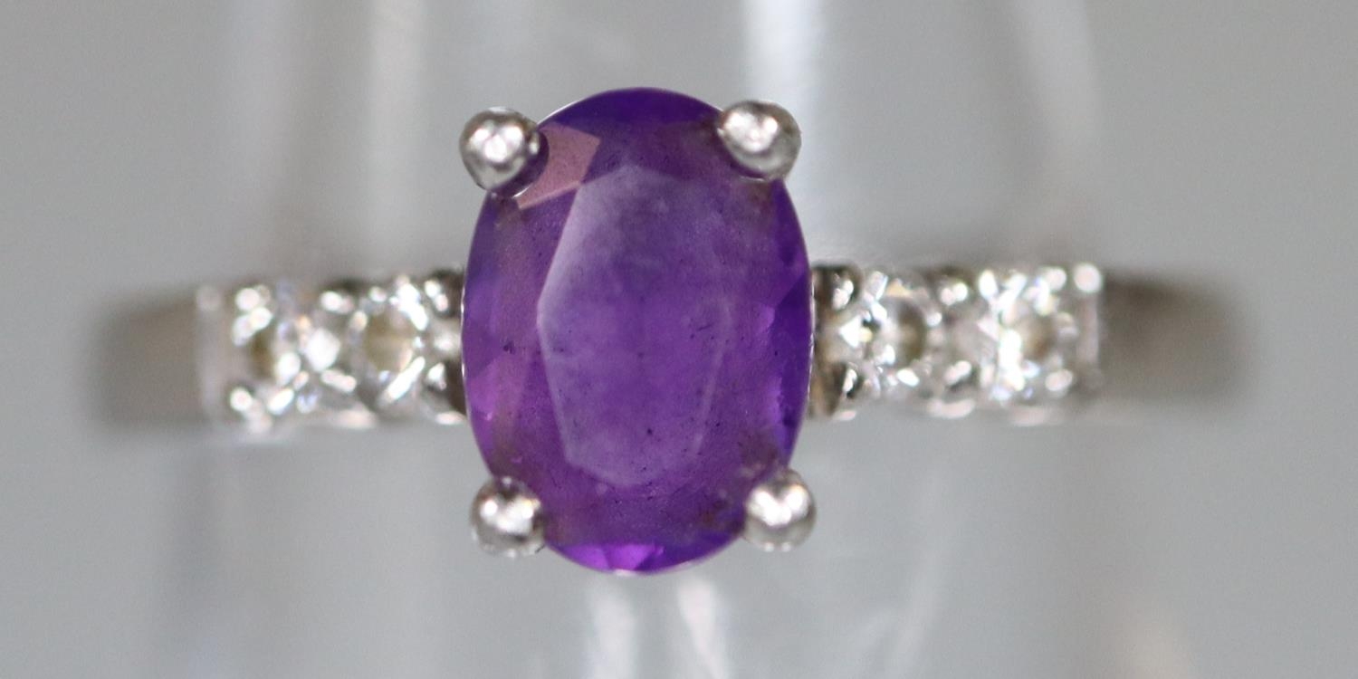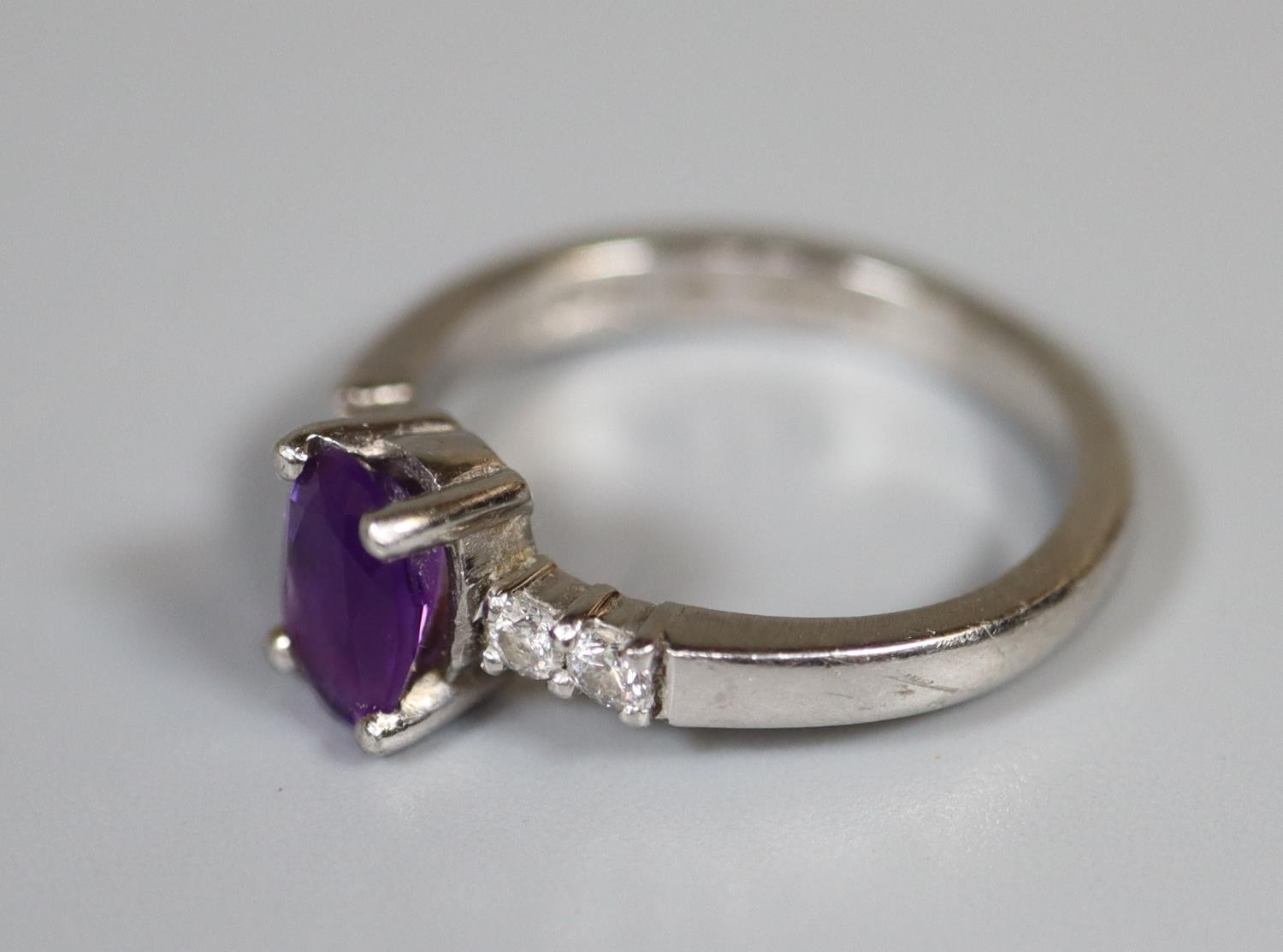 Platinum amethyst and diamond ring. Ring size I & 1/2. Approx weight 4.3 grams.