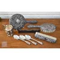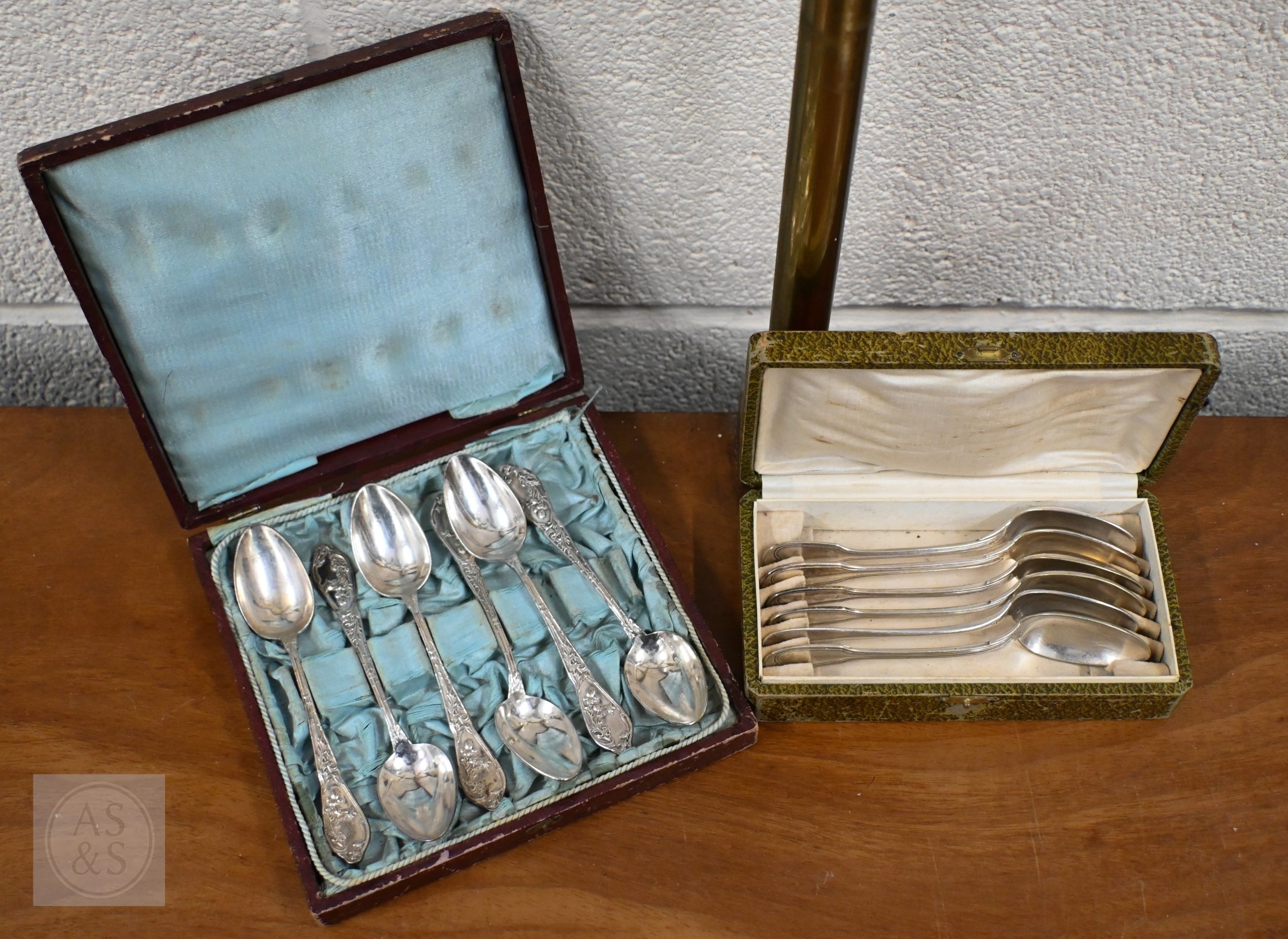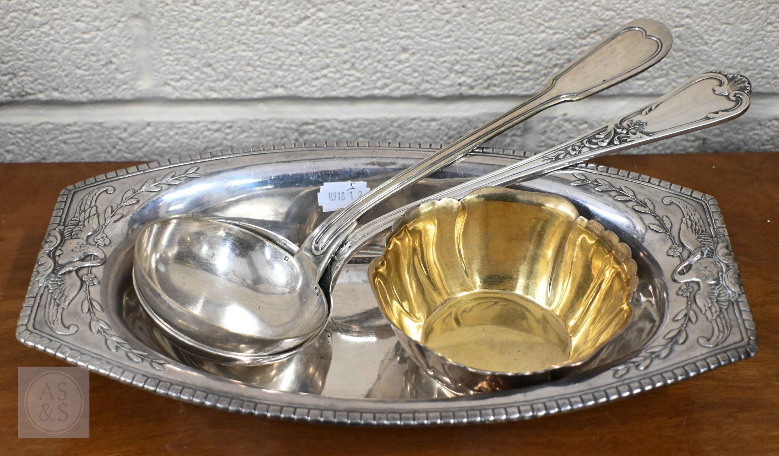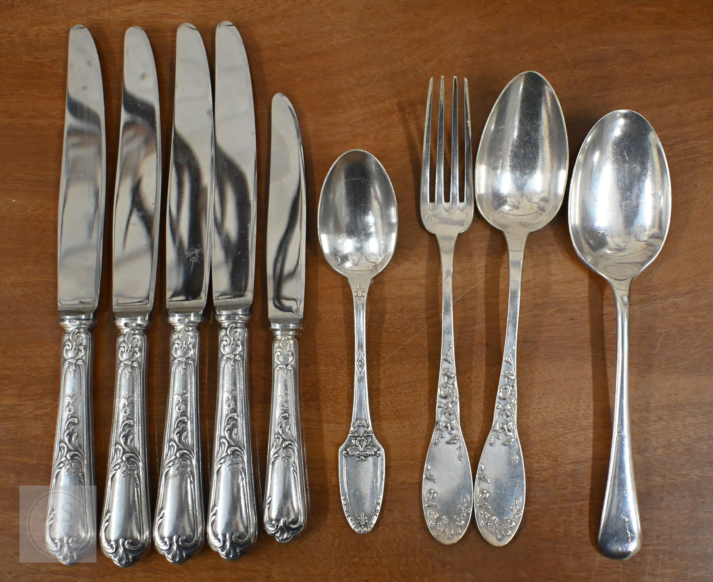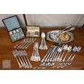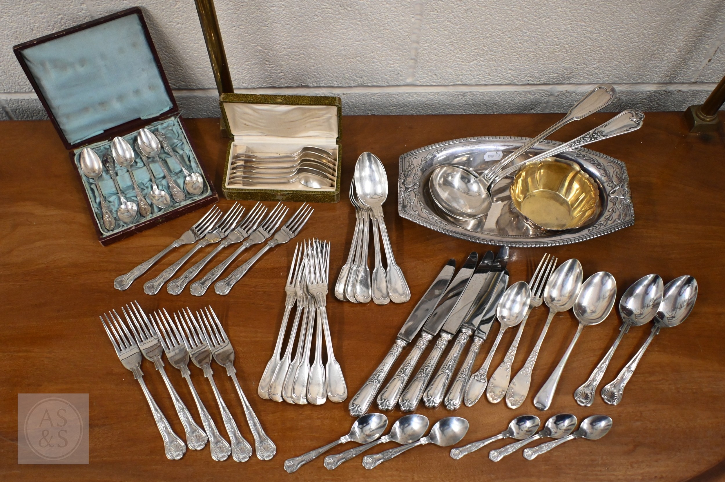 A quantity of Continental flatware, a bread dish and a sugar basin, to/w a part set of stainless steel Kings Pattern flatware (box)