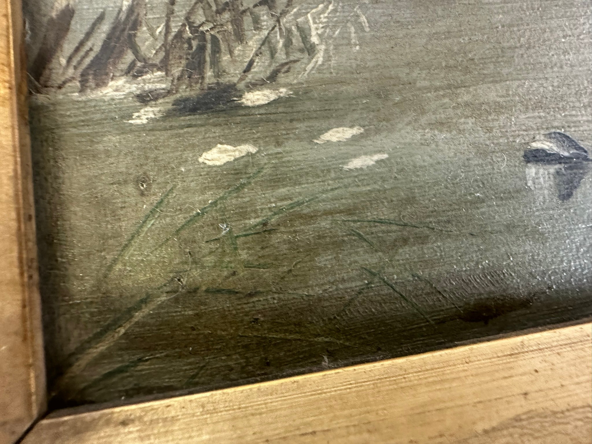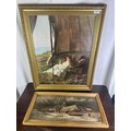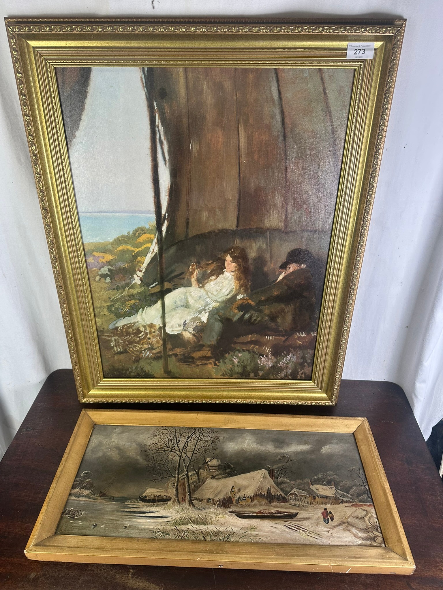 A collection of 2 oil paintings in gilt frames, one on board and the other is on canvas