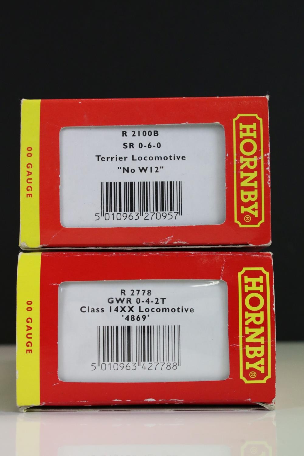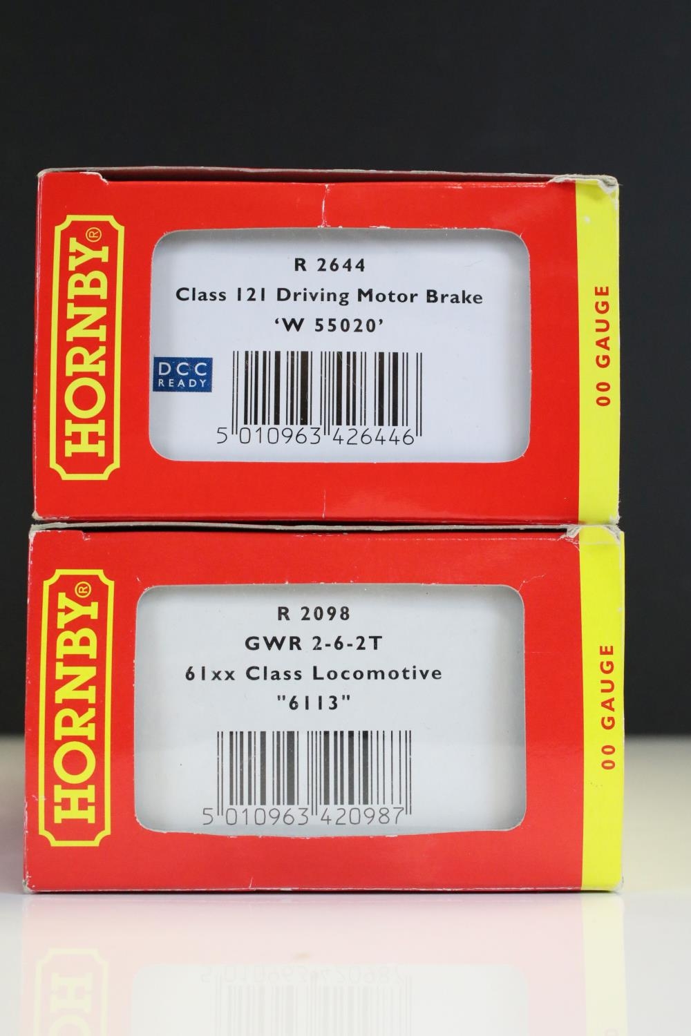 Four boxed Hornby OO gauge locomotives to include R2098 GWR 2-6-2T 61XX Class Locomotive 6113, R2644 Class 121 Driving Motor Brake W 55020, R2100B SR 0-6-0 Terrier Locomotive No W12 and R2278 GWR 0-4-2T Class 14XX Locomotive 4869