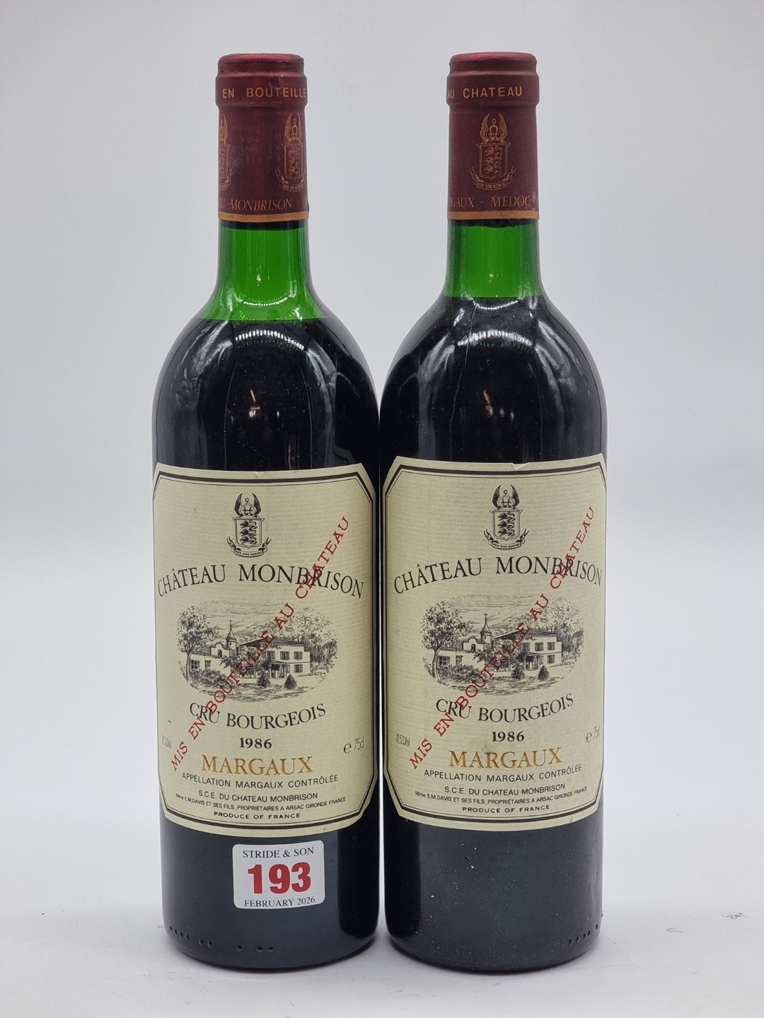 Two 75cl bottles of Chateau Monbrison, 1986, Cru Borgeois Margaux. (2)