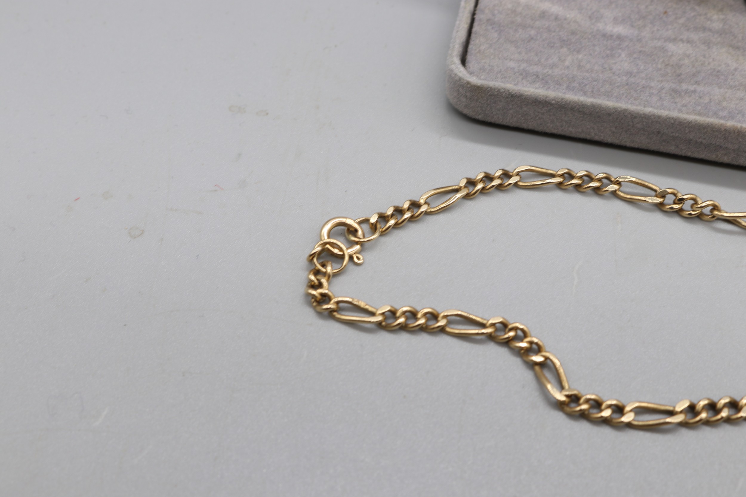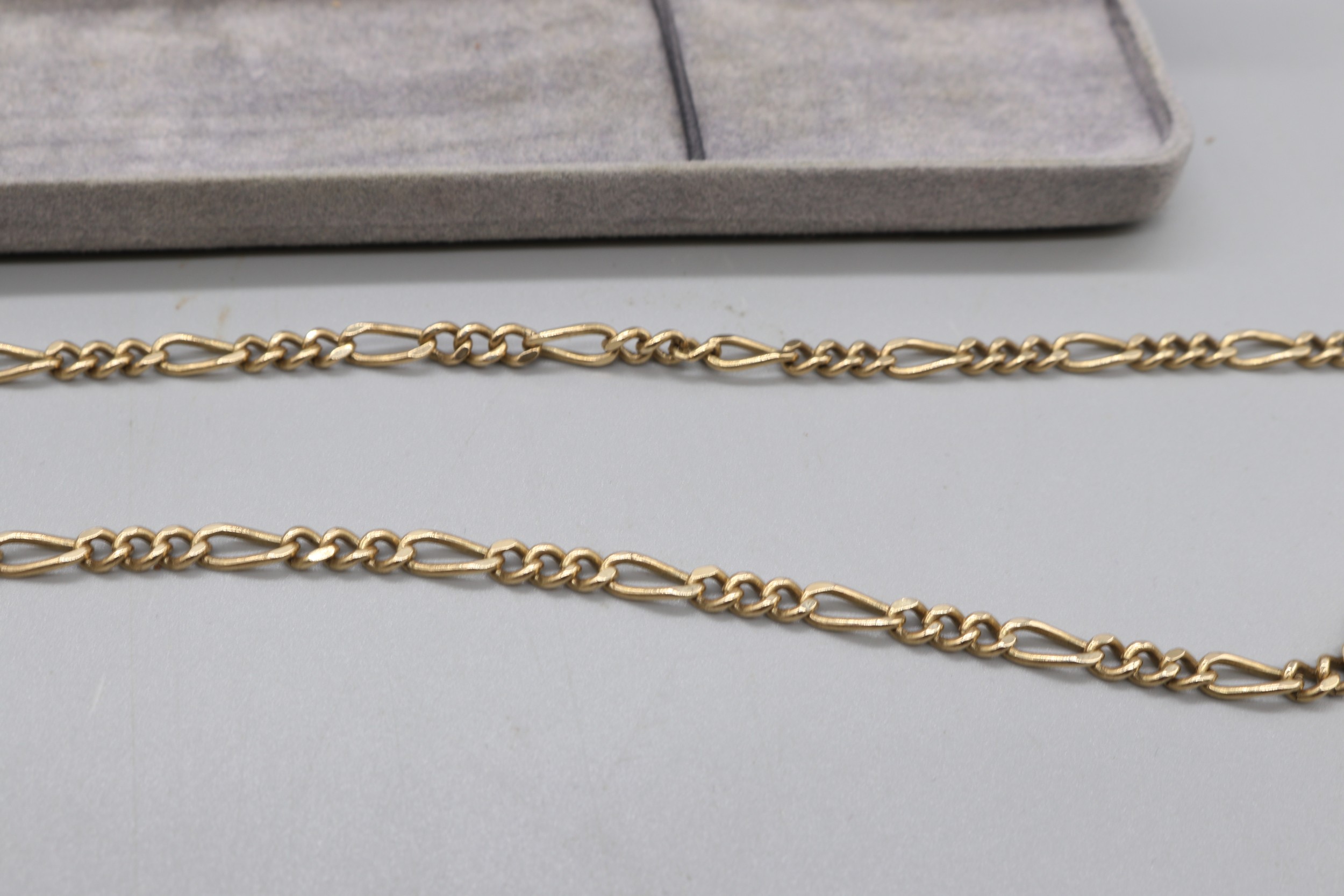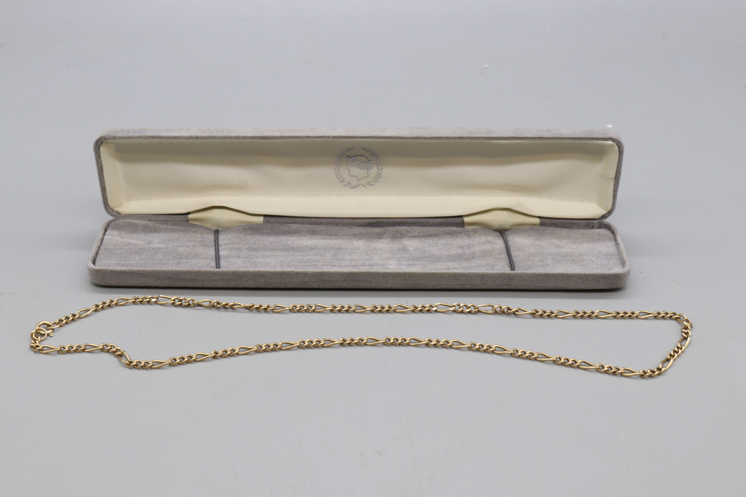 Hallmarked 9ct yellow gold solid Figaro necklace with a bolt ring clasp, length 22", total weight 14.87g