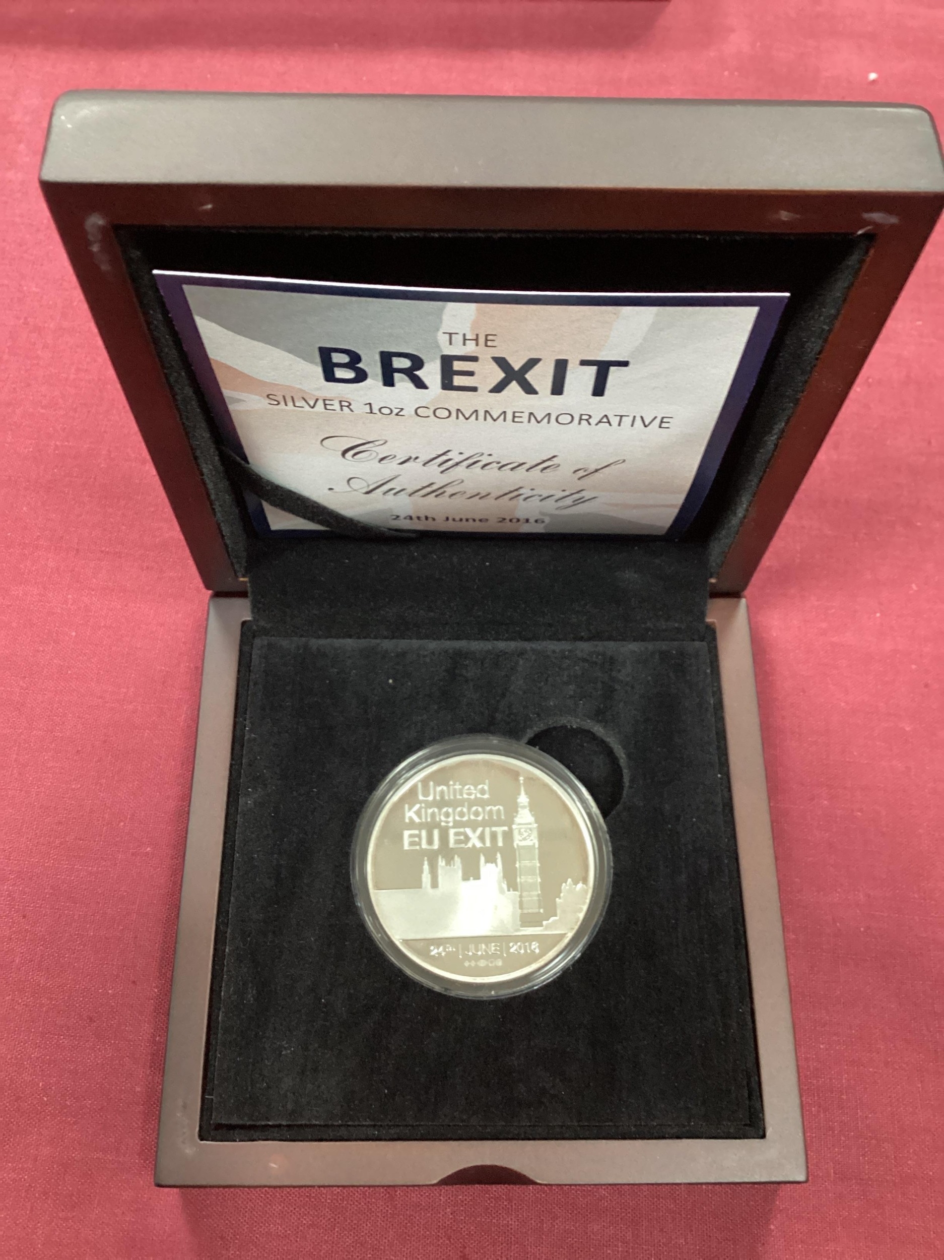 Kensington Mint 'For Generations To Come' 1935 George V Nine Coin Set, includes a silver Crown, Half Crown, Florin, Shilling, Sixpence and Threepence, together with a 2016 fine silver proof 1oz Brexit coin, both cased with certificates of authenticity.