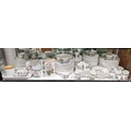 Portmeirion Botanic Garden pattern part dinner service and other wares, composite printed marks, including large number of dinner and luncheon plates, two storage jars and covers in sizes, an enamelled water jug, soup plates, side plates, coffee mugs and saucers in sizes, a sugar caster, a rectangular serving dish, a slop bowl and other items