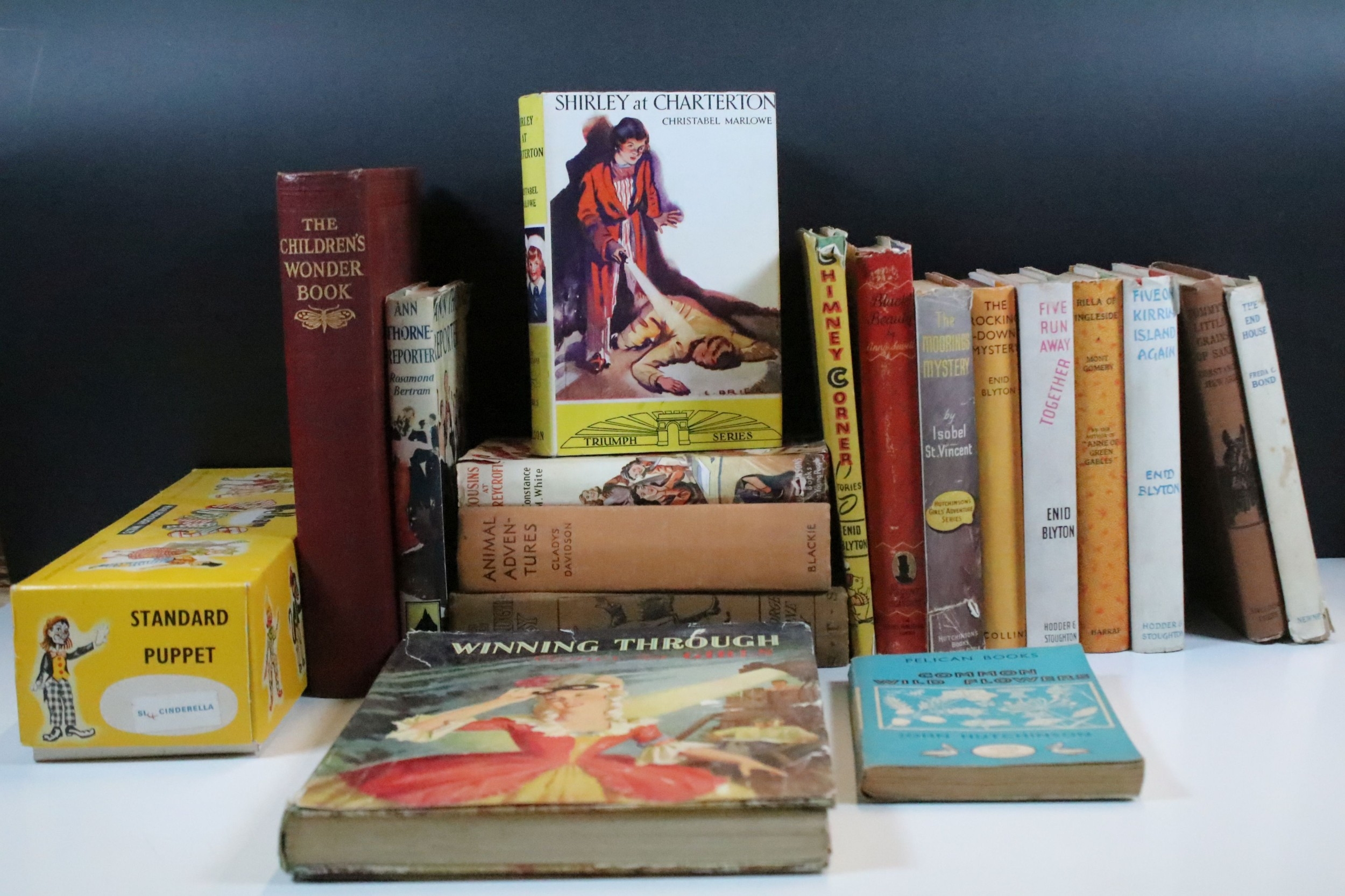 Pelham 'Cinderella' standard puppet together with a quantity of vintage first and early edition children's books to include Enid Blyton examples, etc (1 box)