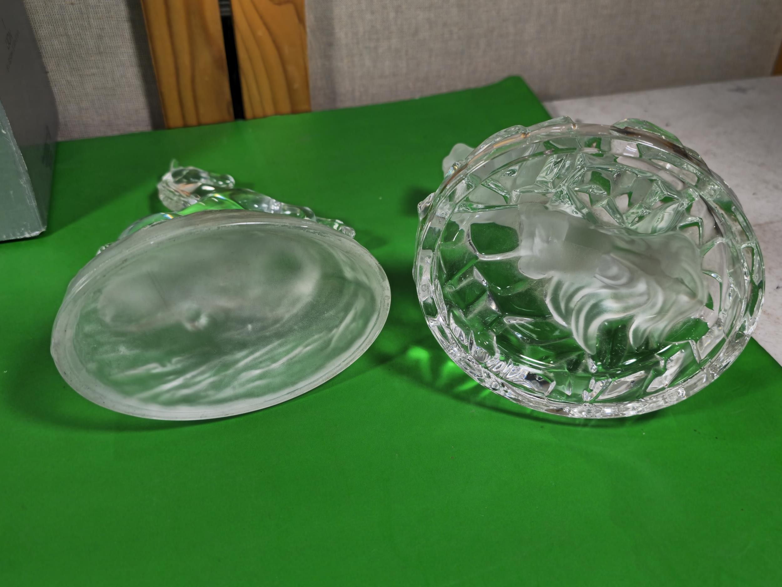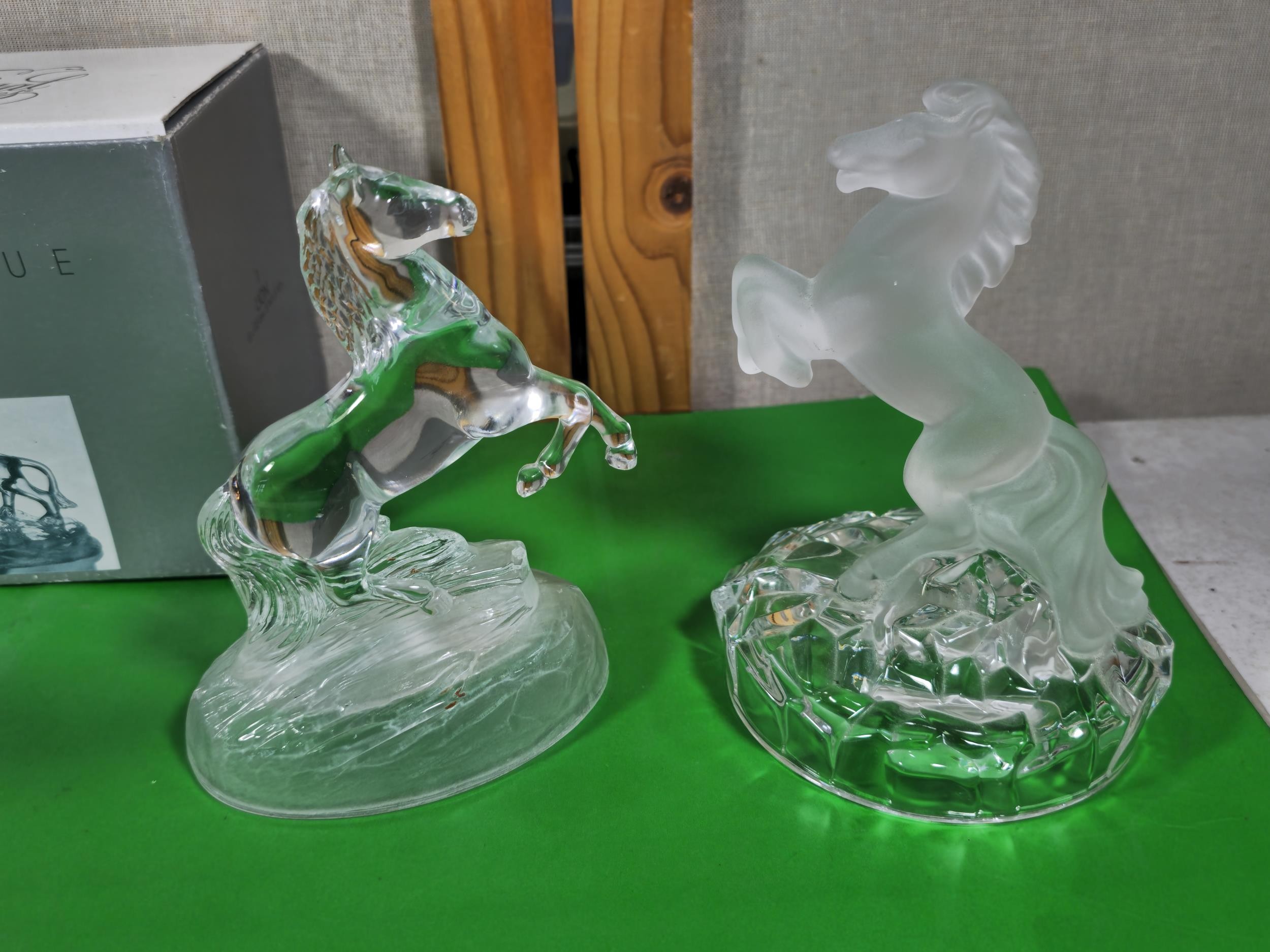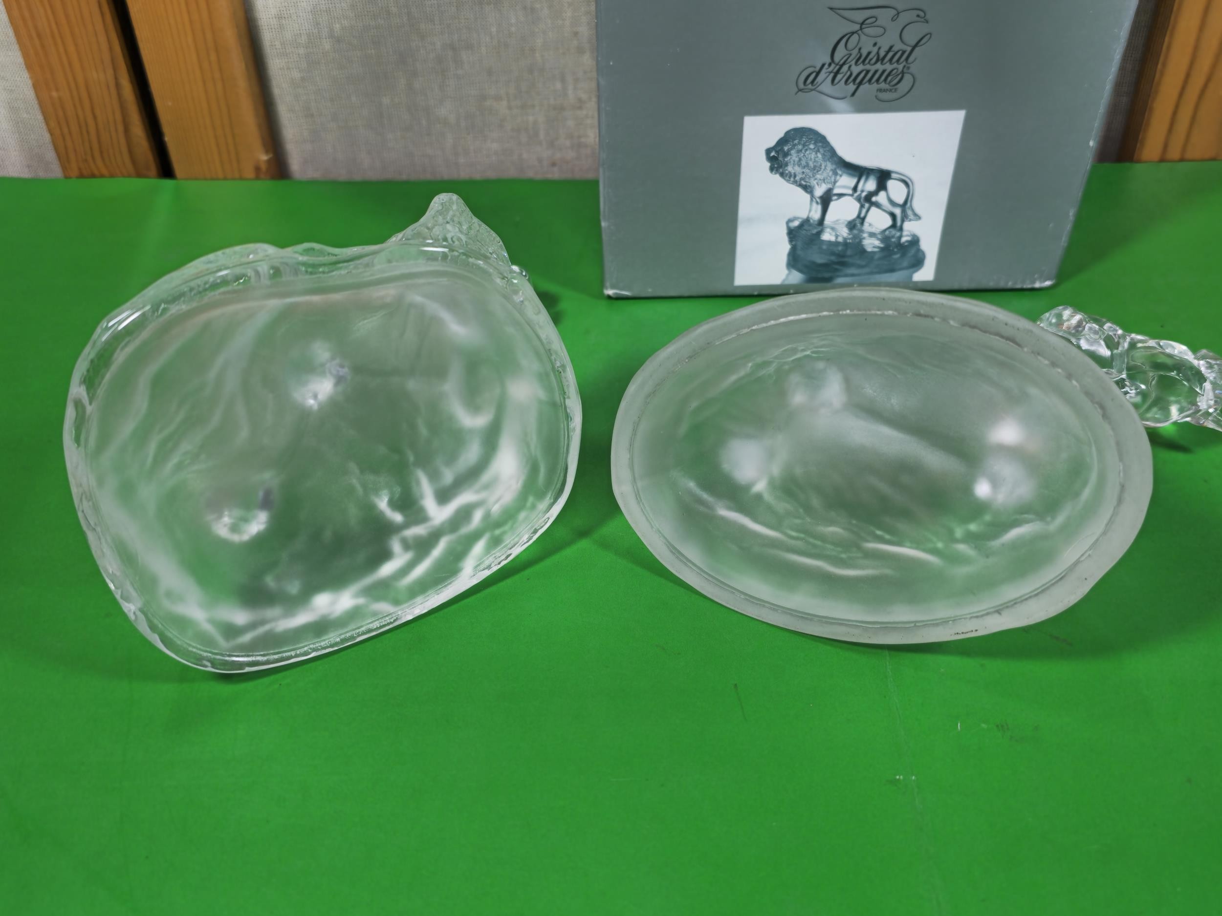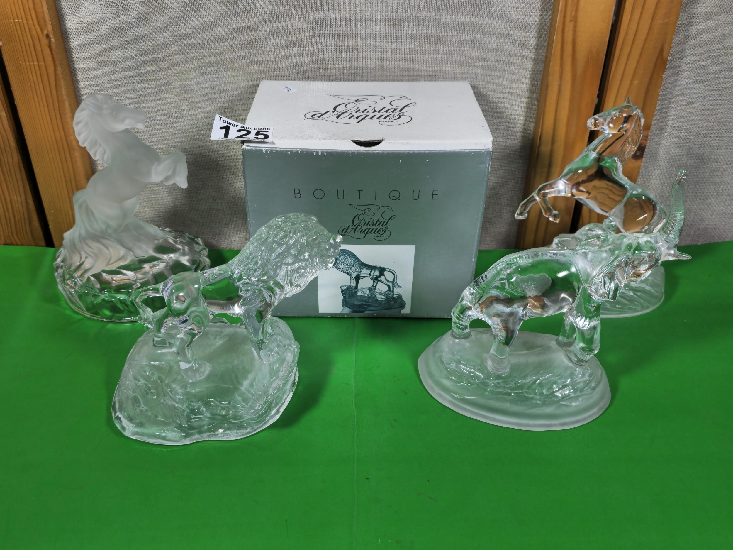 A collection of 4x Cristal D' Arques France glass animal figures to include a lion, an elephant, a horse and an opaque horse, all in good order the lion comes with its box, the tallest piece stands at 17cm high