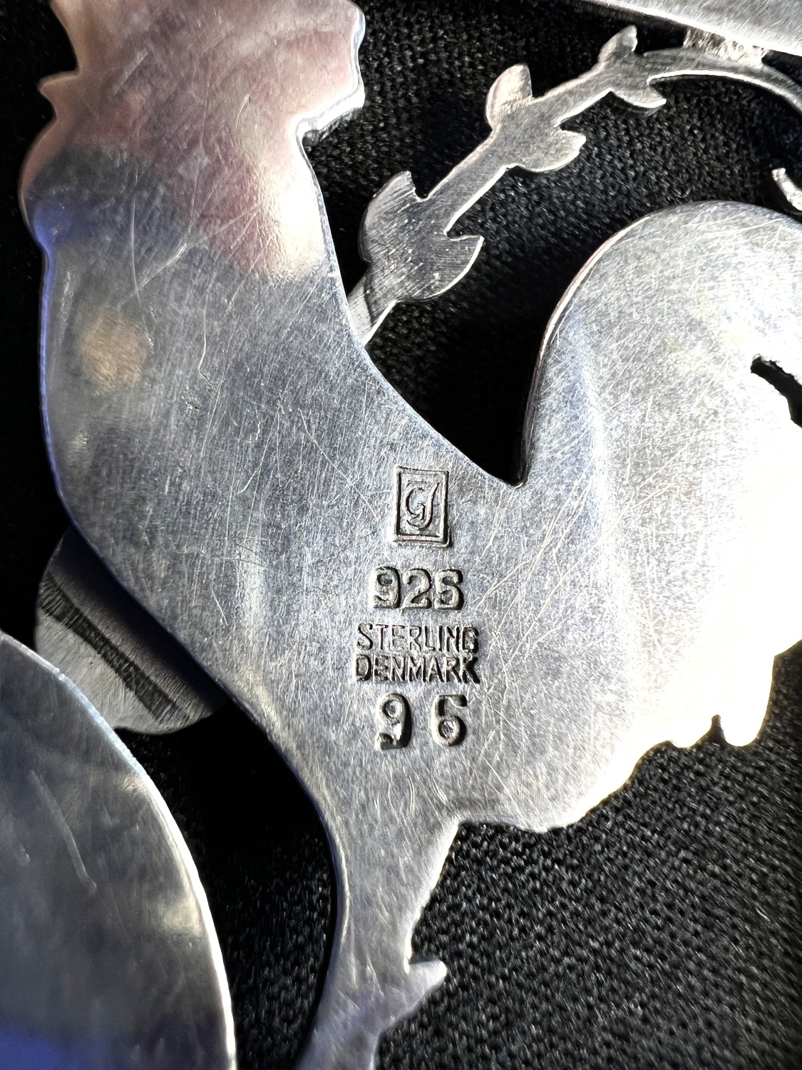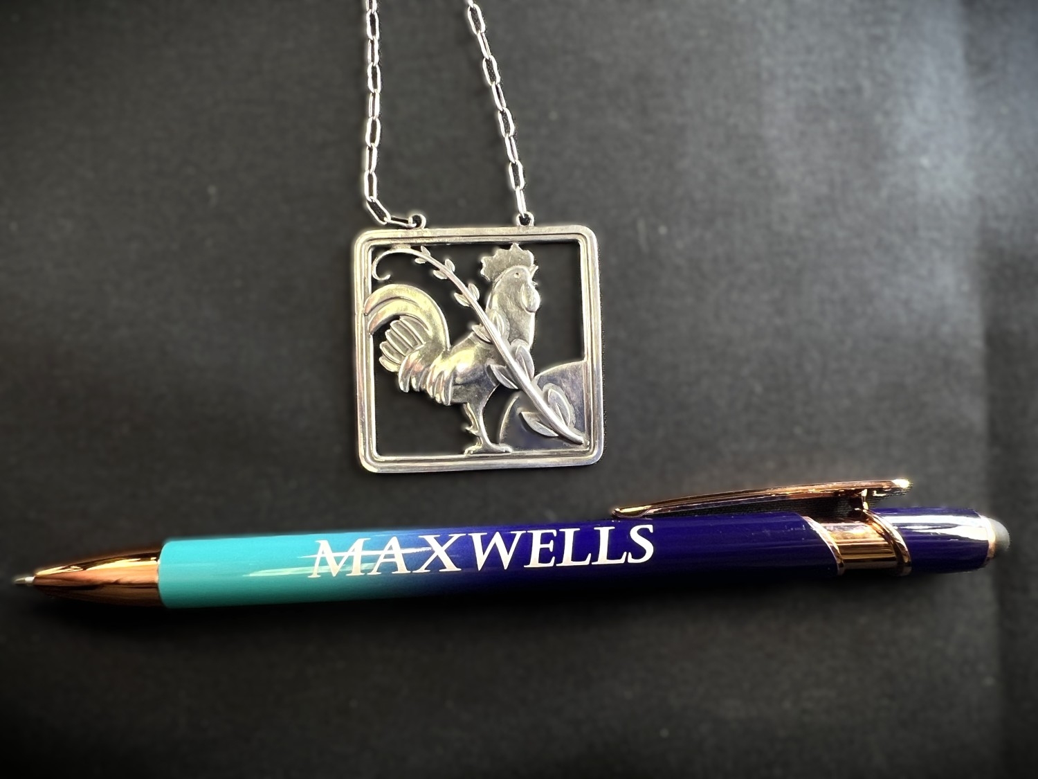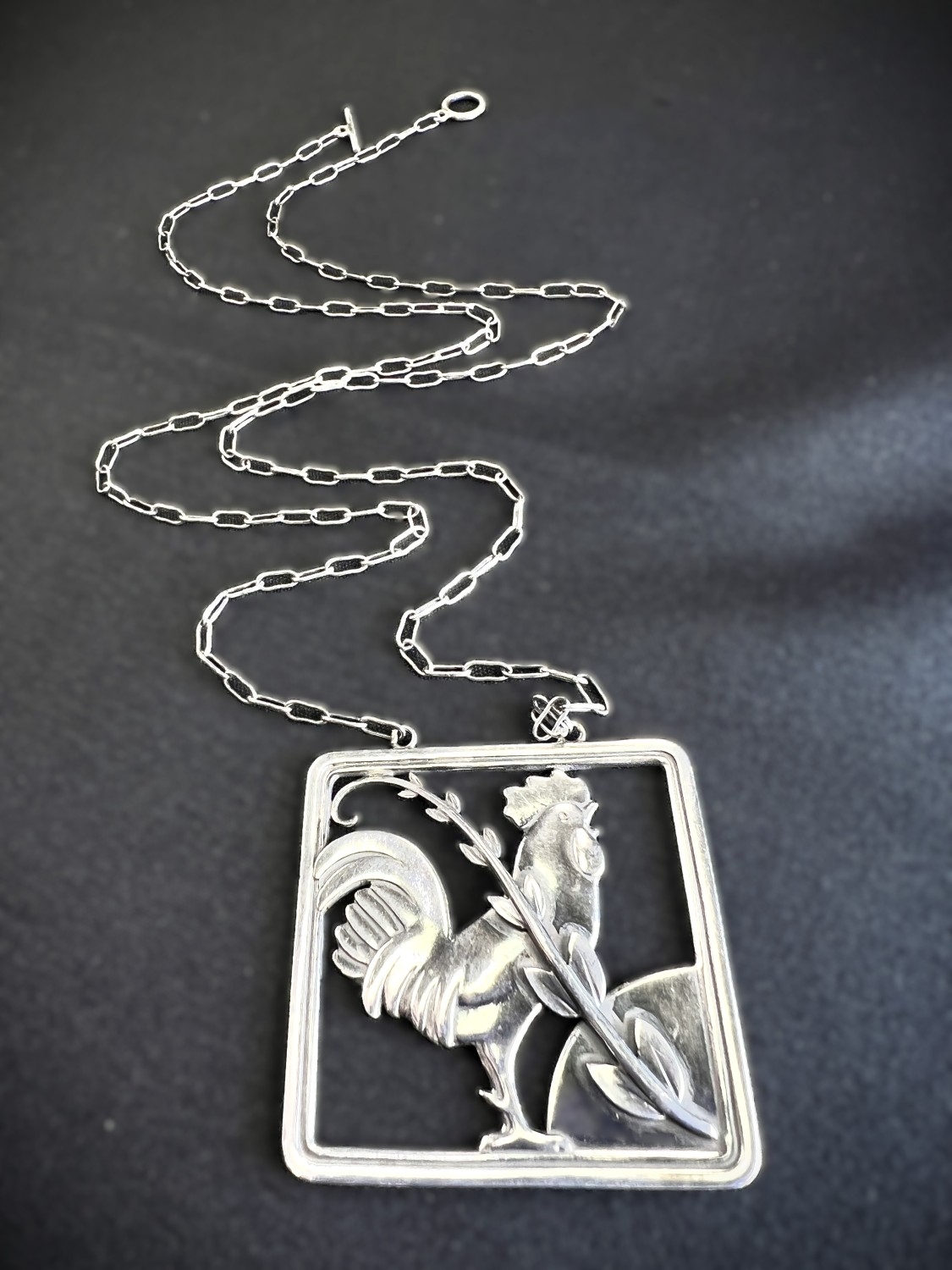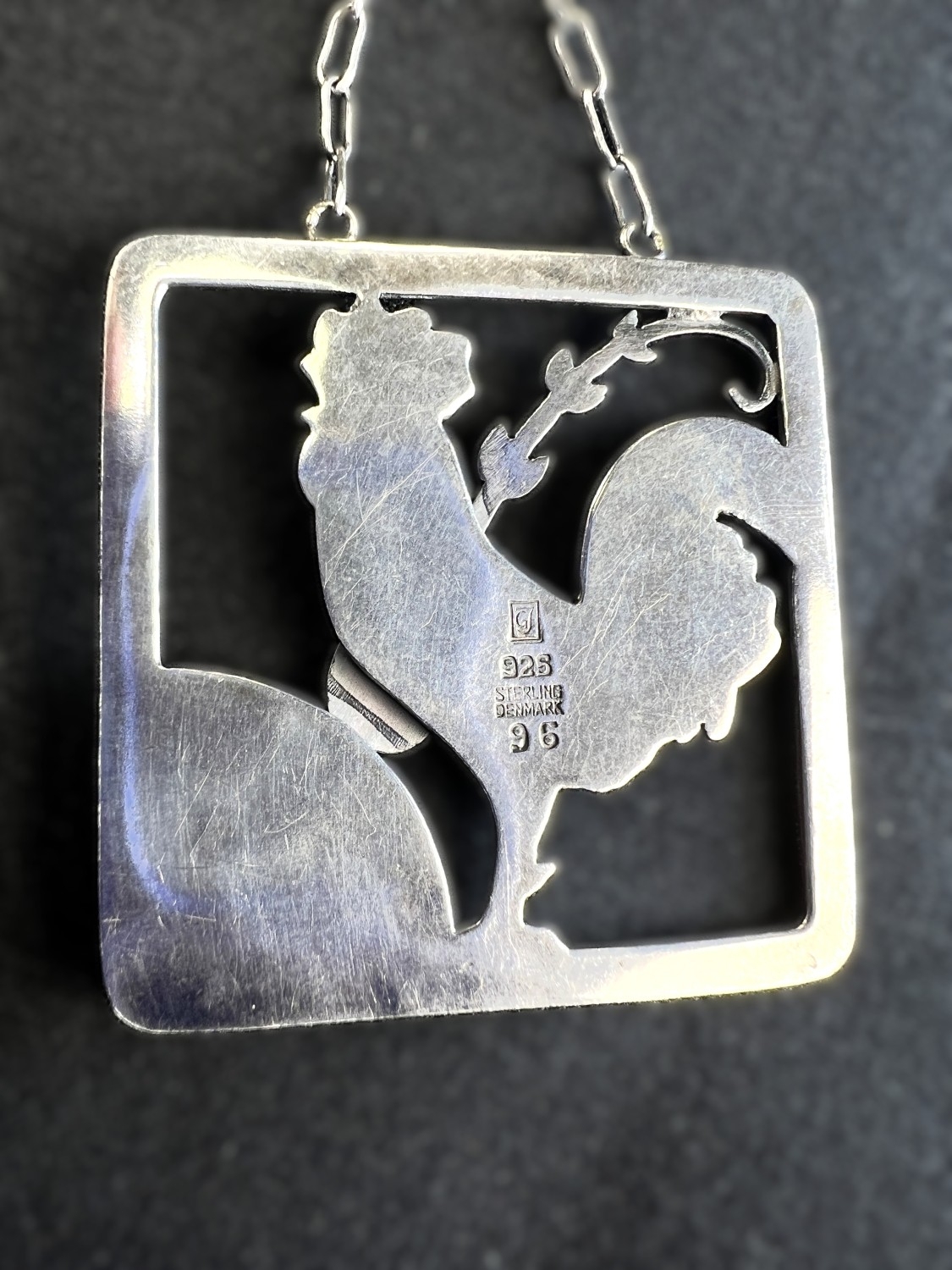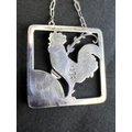 GEORG JENSEN: a square silver pendant with a cockerel and fern, stamped to reverse GJ 925 STERLING DENMARK, 95, 3.8cm, 14.6gm, chain drop length 28cm