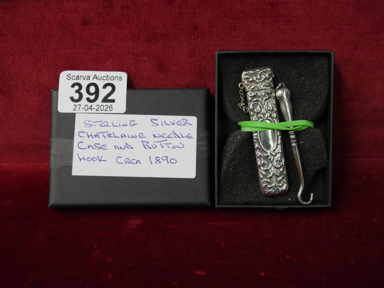 VICTORIAN SILVER BUTTON HOOK AND SMALL SILVER NEEDLE CASE