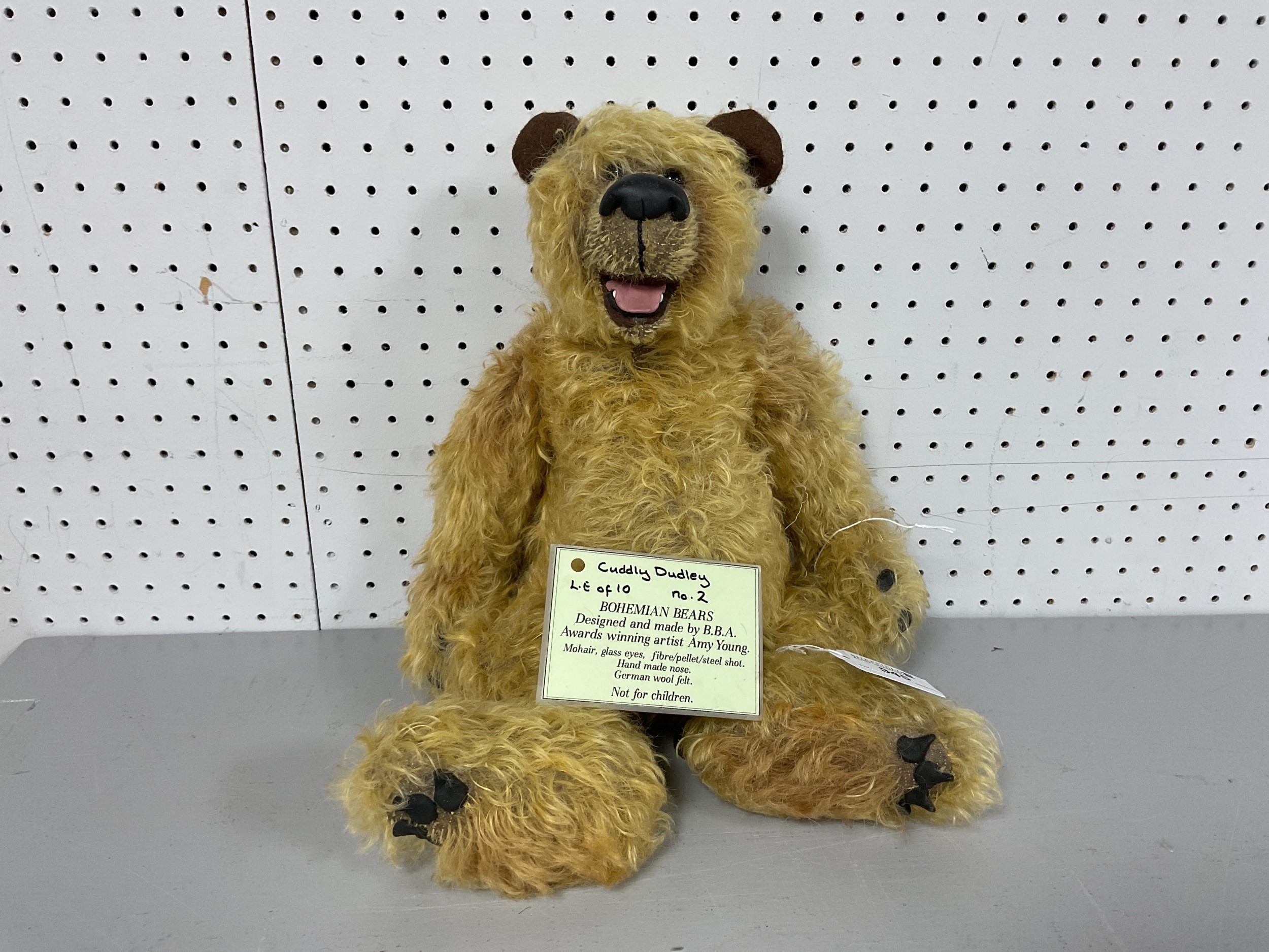 A Bohemian Bears, Mohair With Glass Eyes Jointed Soft Bear. Designed and Made by Amy Young. Labelled "Cuddly Dudley" (Label Loose), Limited Edition Number 2 of 10. Approximately 16" Tall.