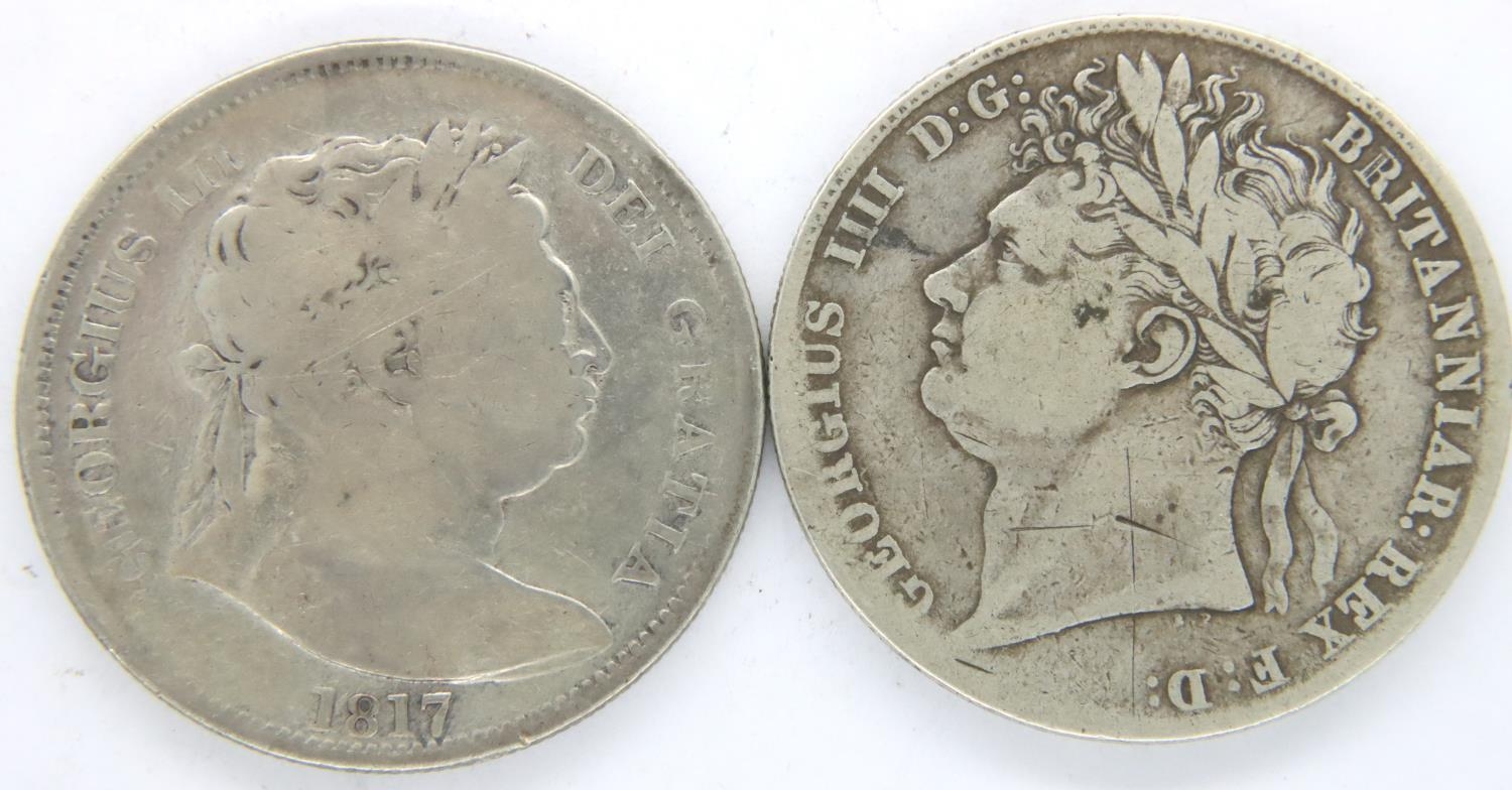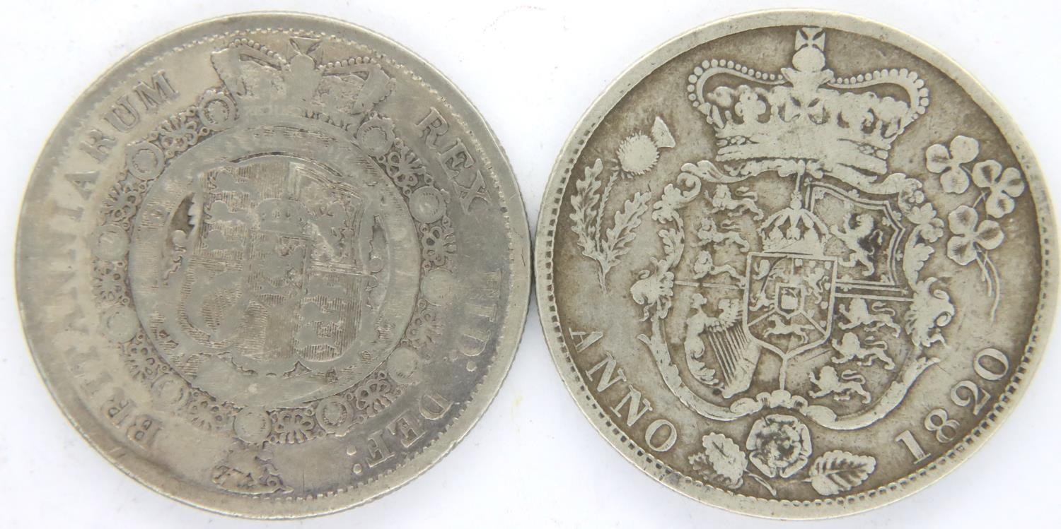 1817 and 1820 silver half crowns of George III and George IV (2). P&P Group 1 (£14+VAT for the first lot and £1+VAT for subsequent lots)