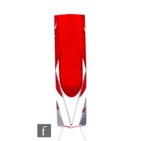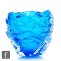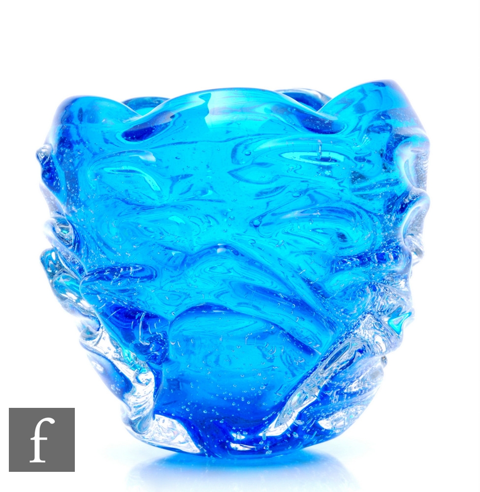 Seguso Vetri d'Arte - Murano - A mid Century sommerso glass vase of ovoid form with naturalistic moulding and undulating rim, blue core with bubble inclusions, clear cased, engraved marks, height 12cm.