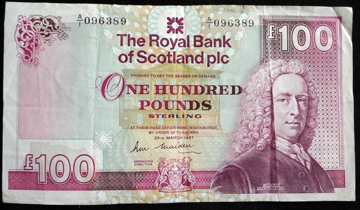 Royal Bank of Scotland plc. £100. SC882a 26.03.1987. VF.