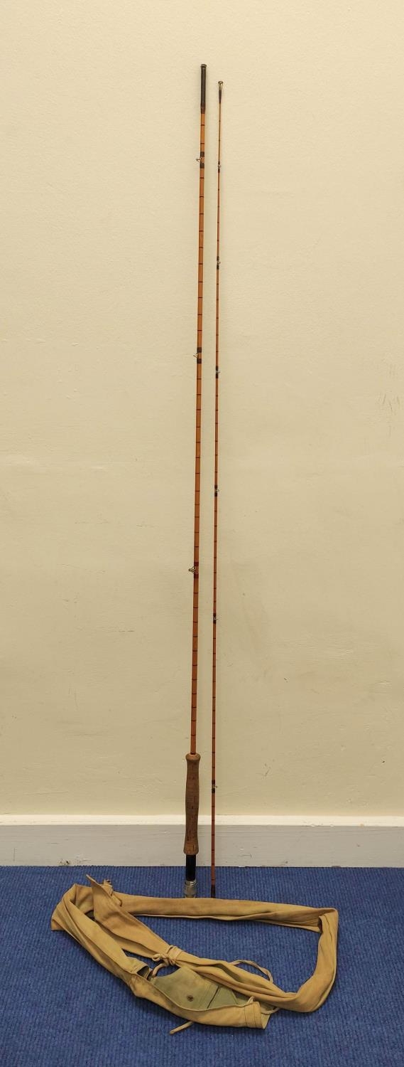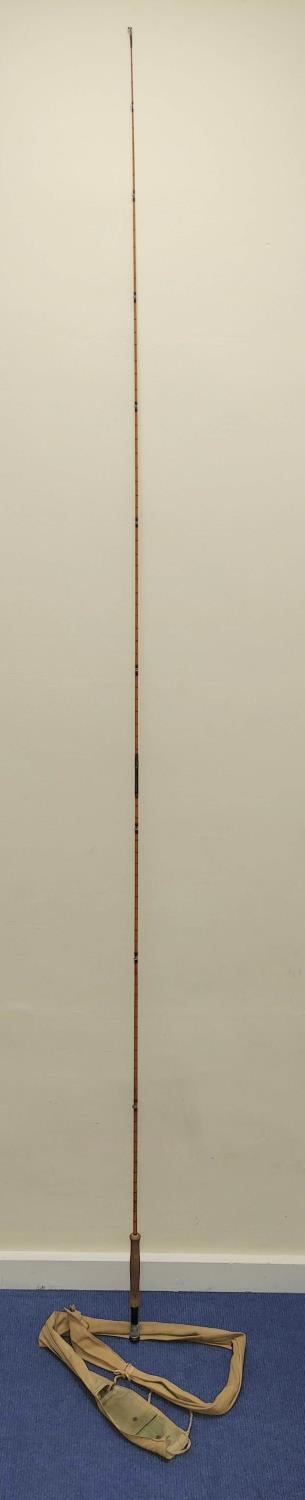 Vintage Hardy's of Alnwick split cane trout rod in canvas bag. 9ft in length with screw locking sections.