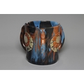A LATE VICTORIAN ELTONWARE LARGE CYLINDRICAL TYG slip decorated in browns, green and blues with three sunflower heads on a drip ground, signed, 6 1/2" high (Est. plus 24% premium inc. VAT)