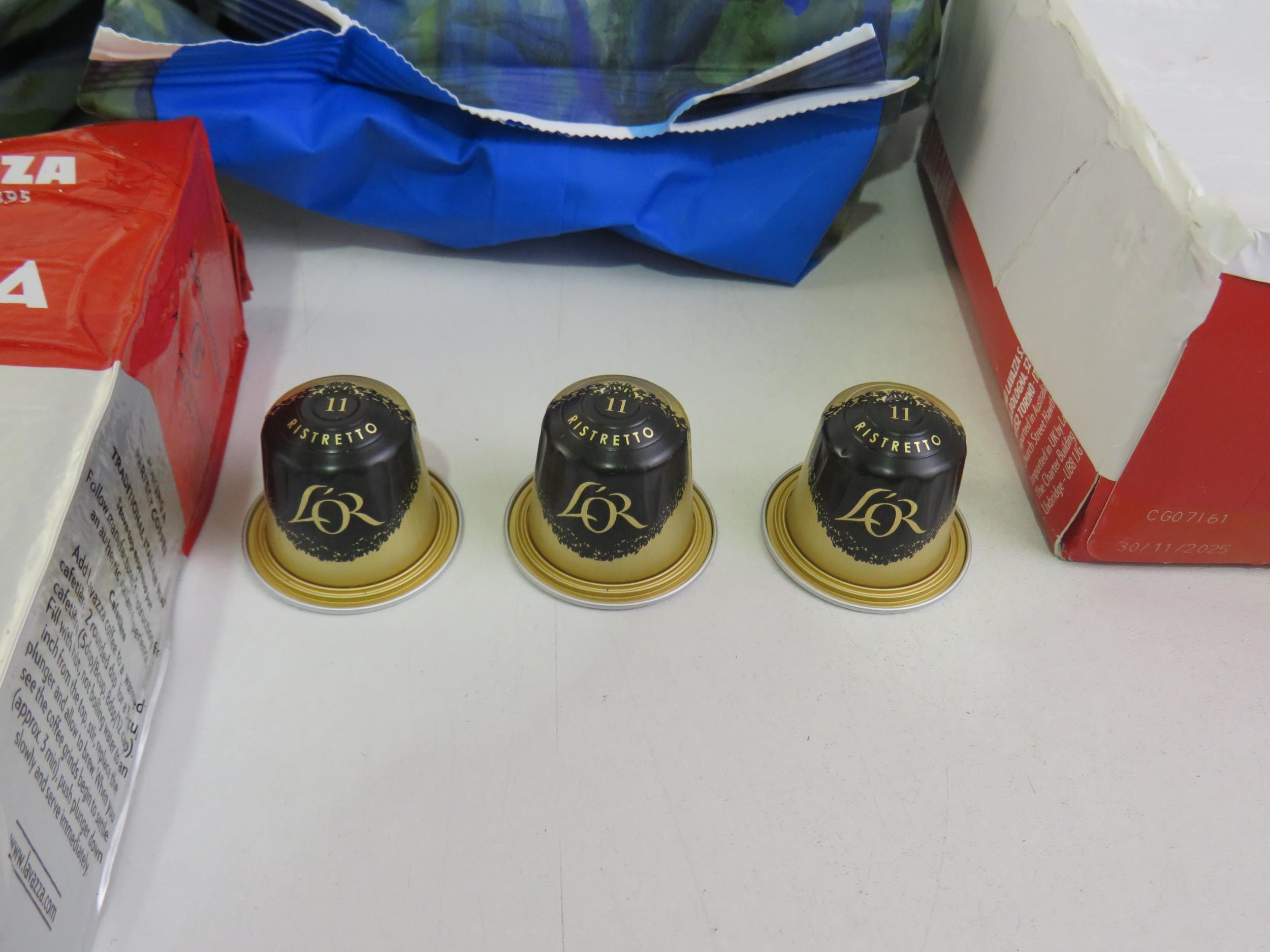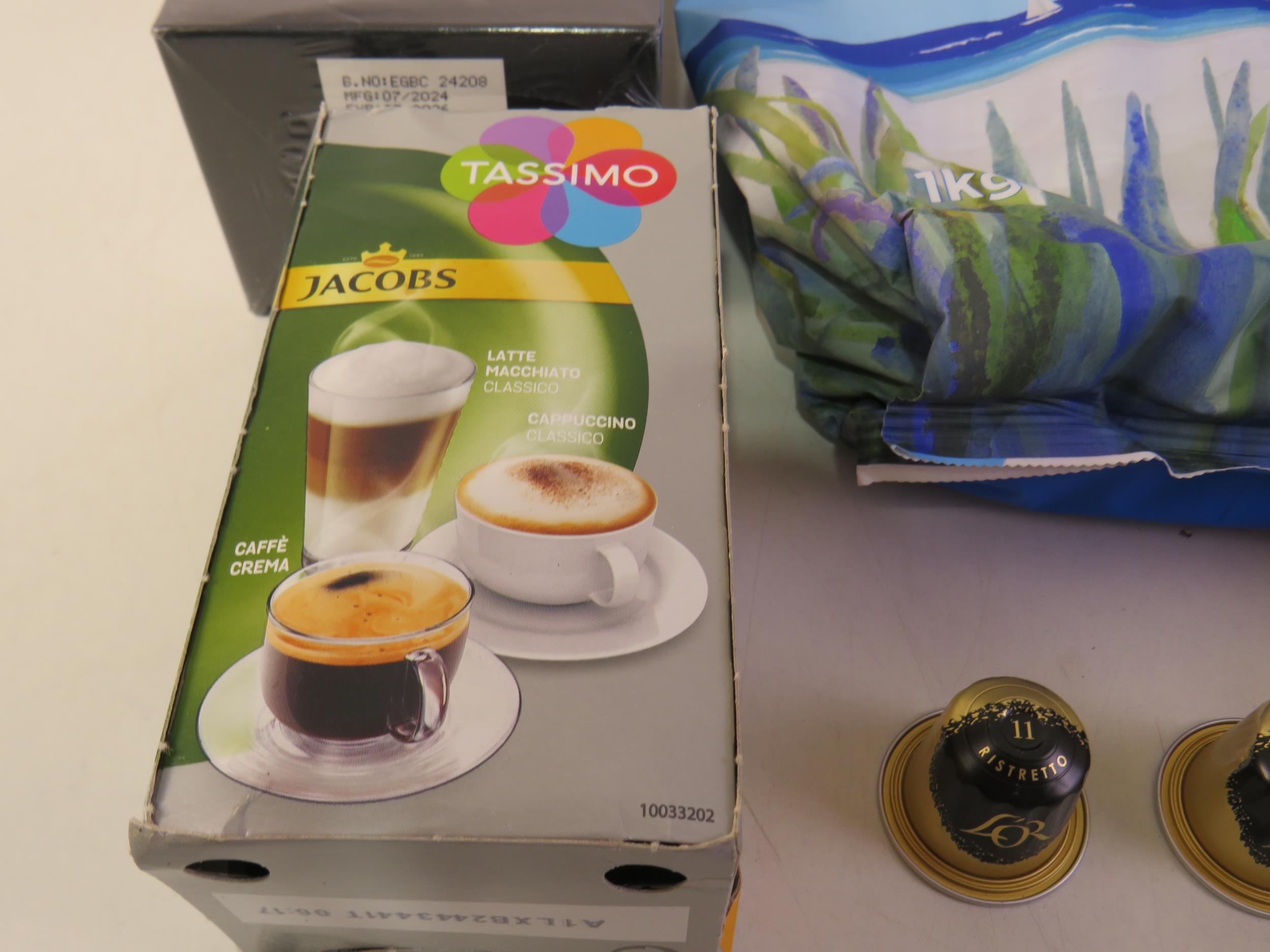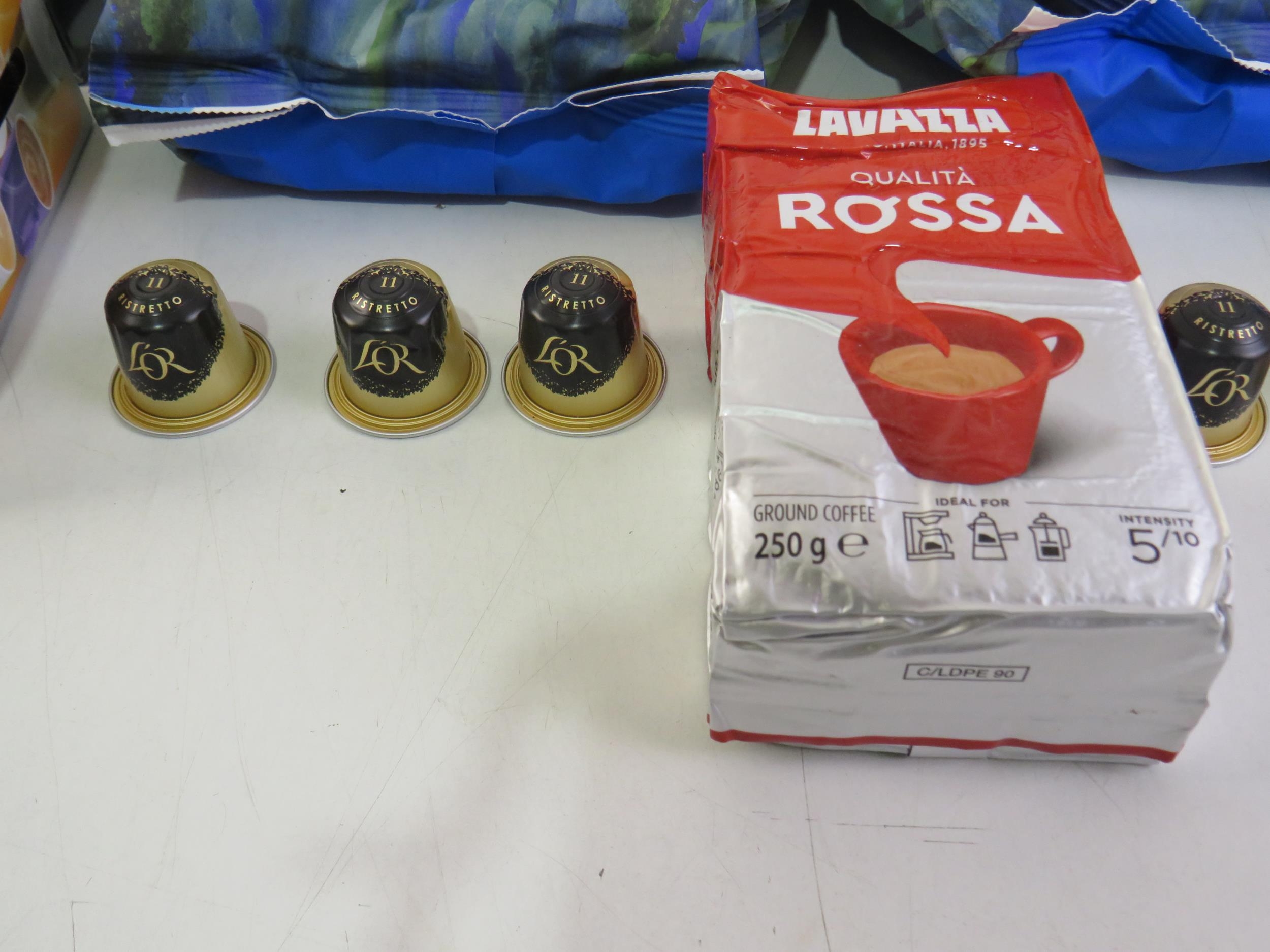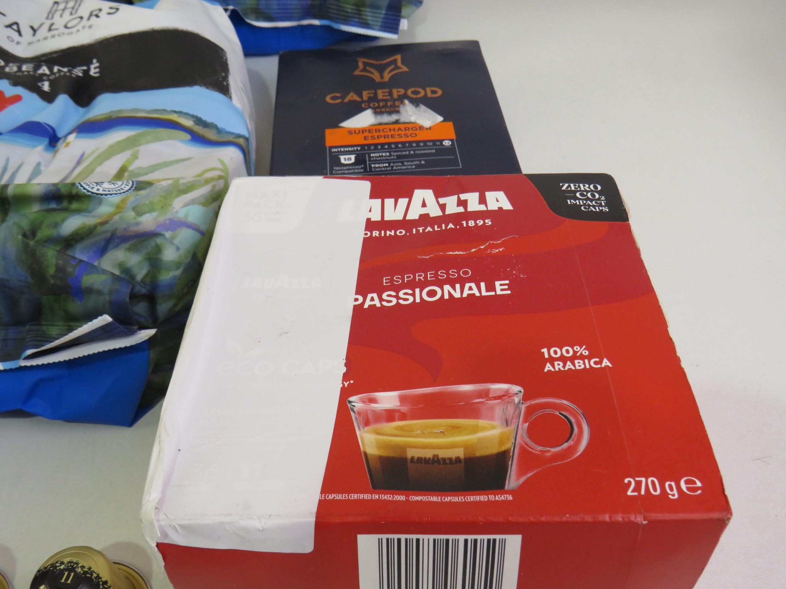 Five 1kg bags taylors coffee beans and five packs of assorted coffee
