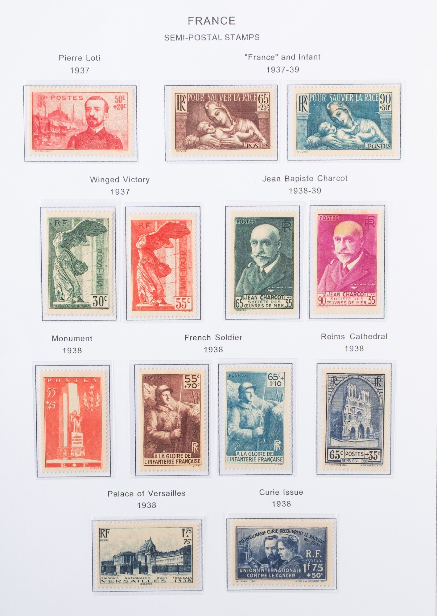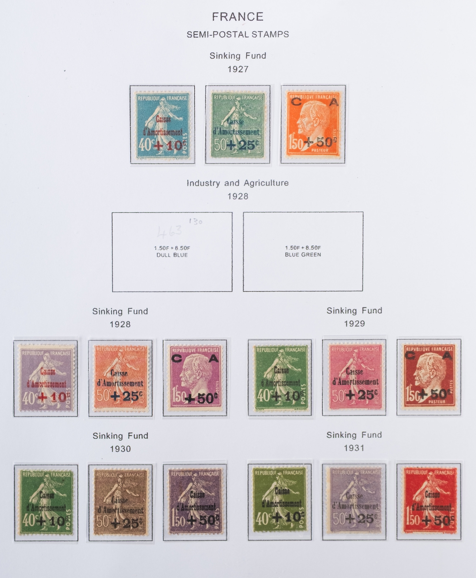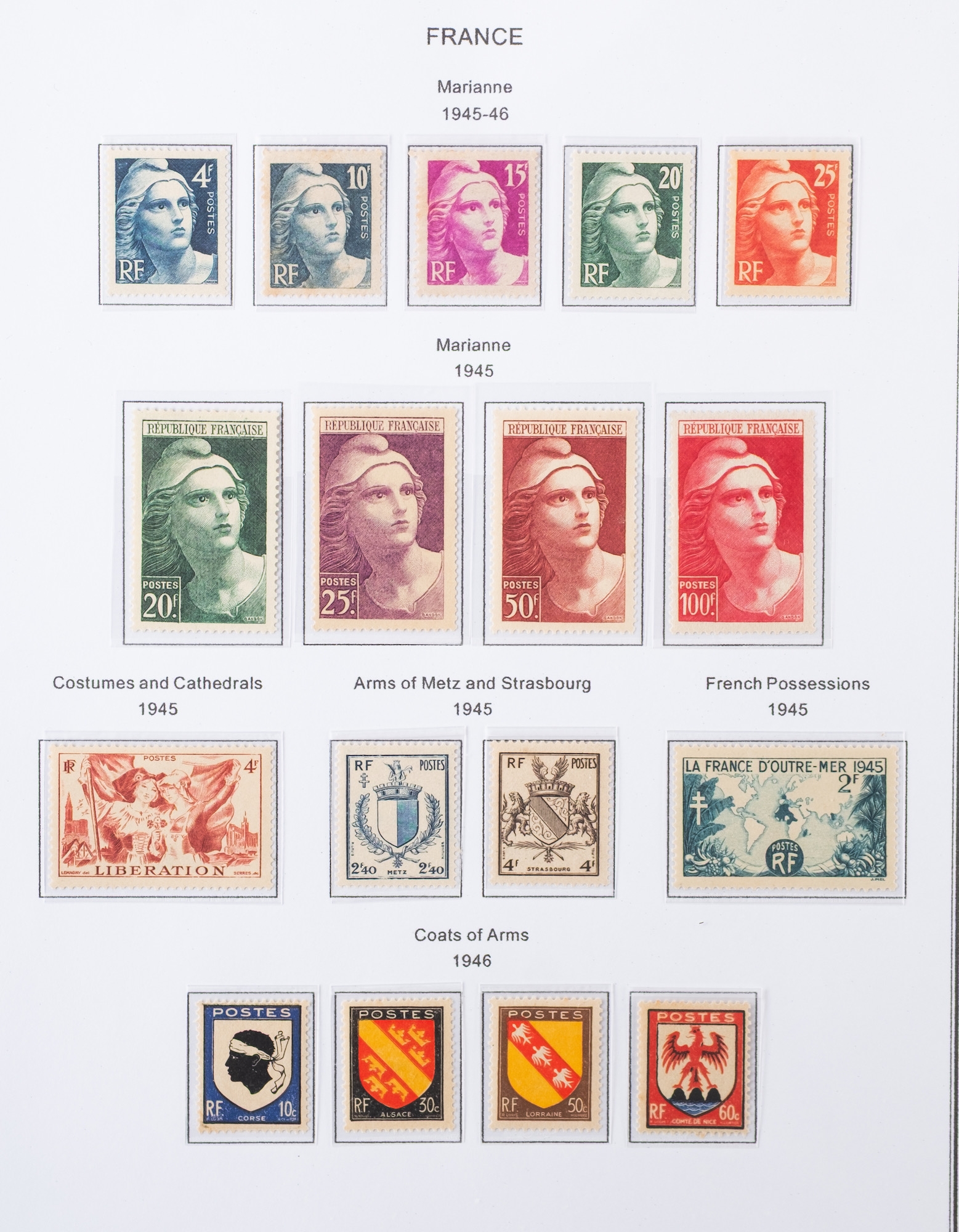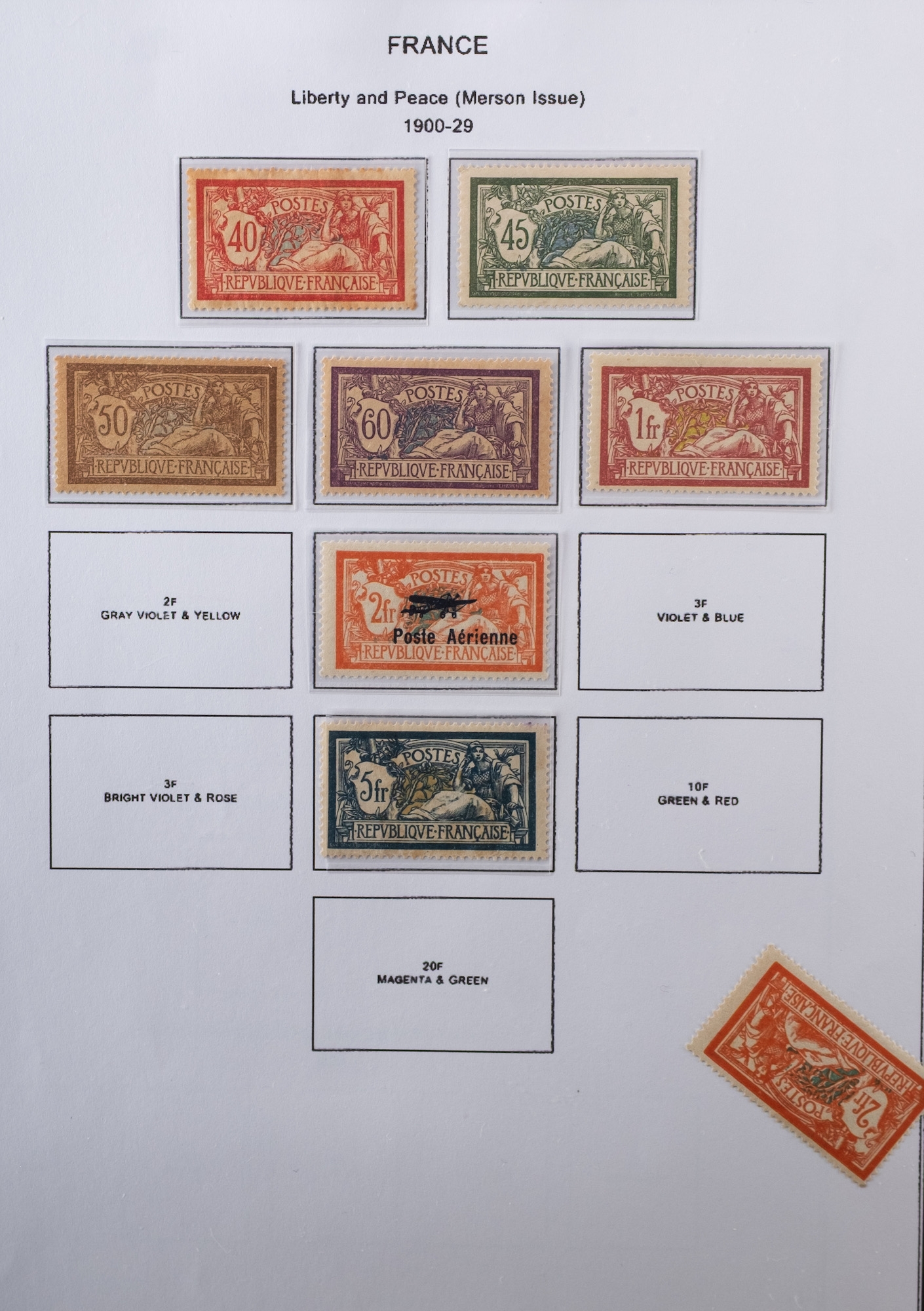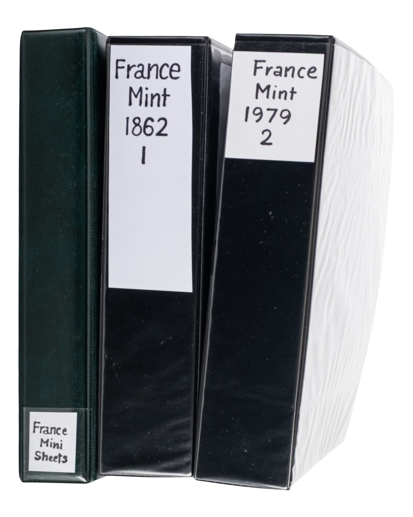 France. A good collection of French stamps in three volumes with mint ranges from 1862, including Peace and Commerce, Mersons, Parcel Posts, Airs, and later sets which appear fairly comprehensive through to 2005, together with a further quantity of mini sheets.
