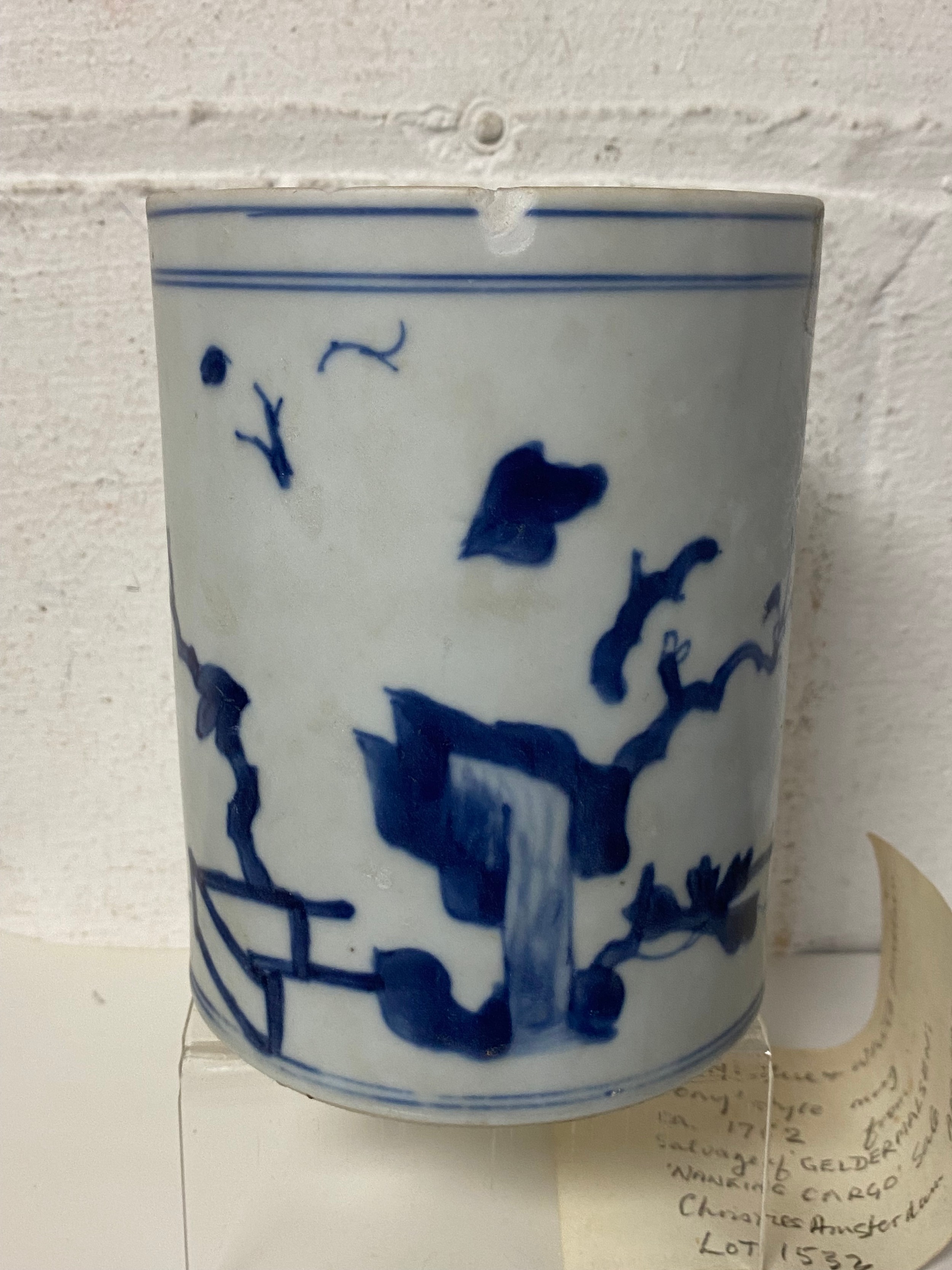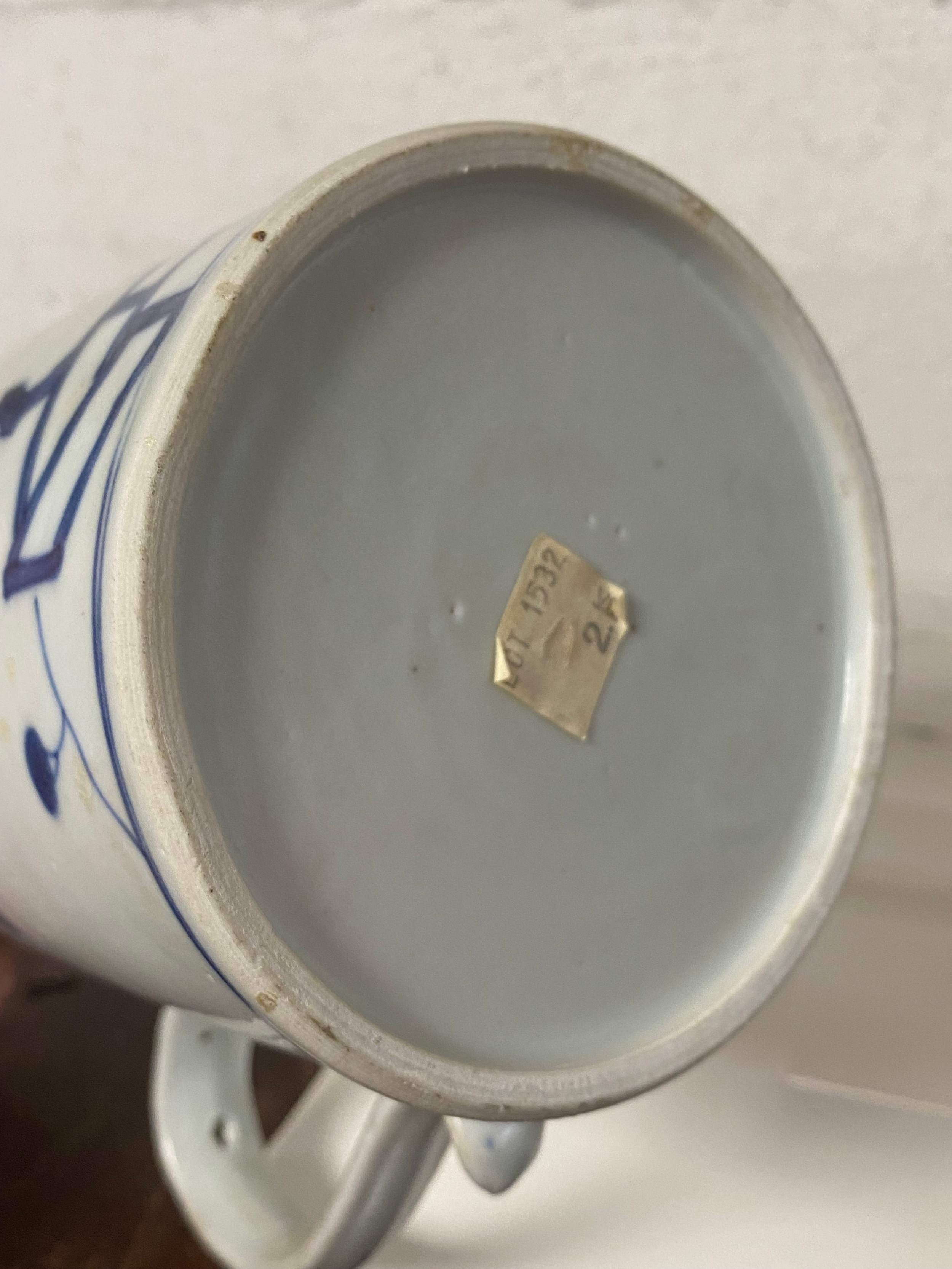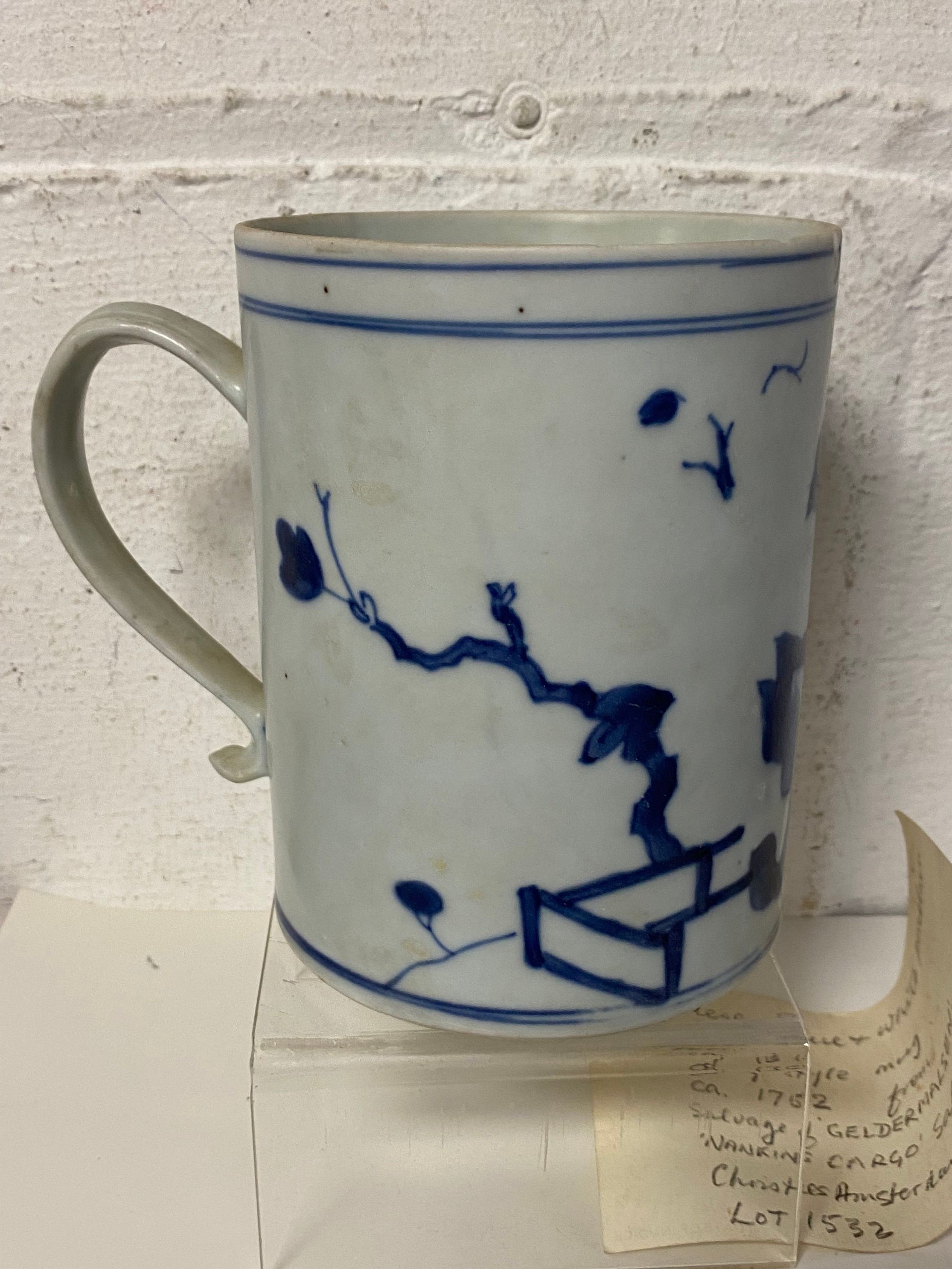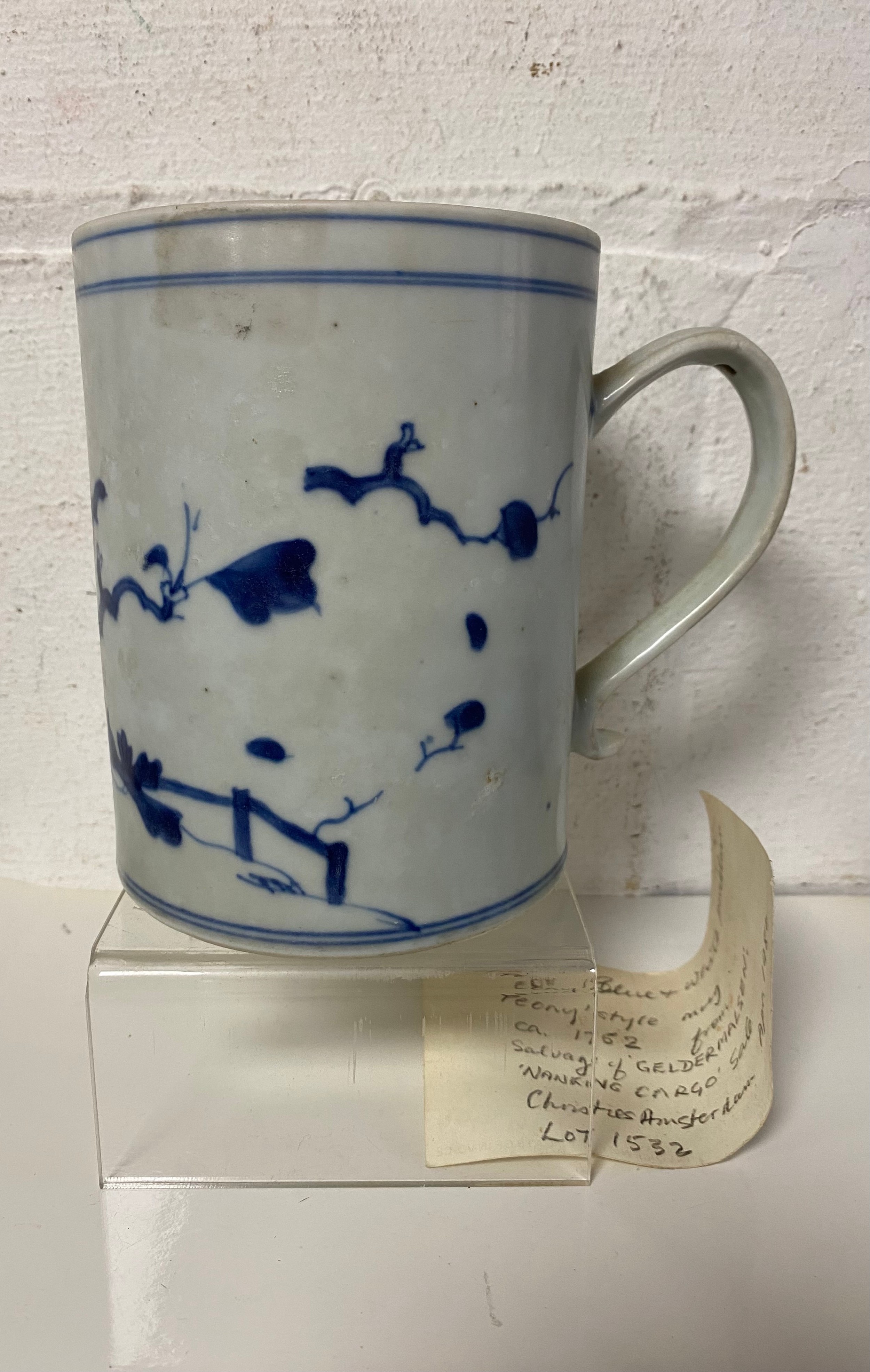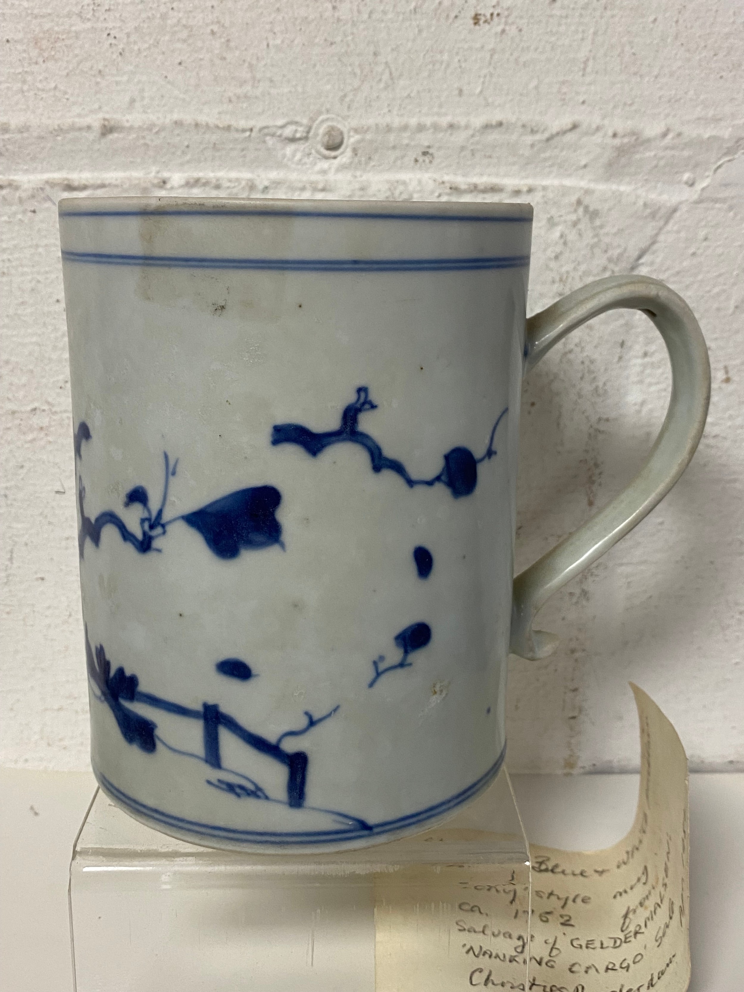 An 18th Chinese tankard, from the Nanking cargo chipped, cracked -