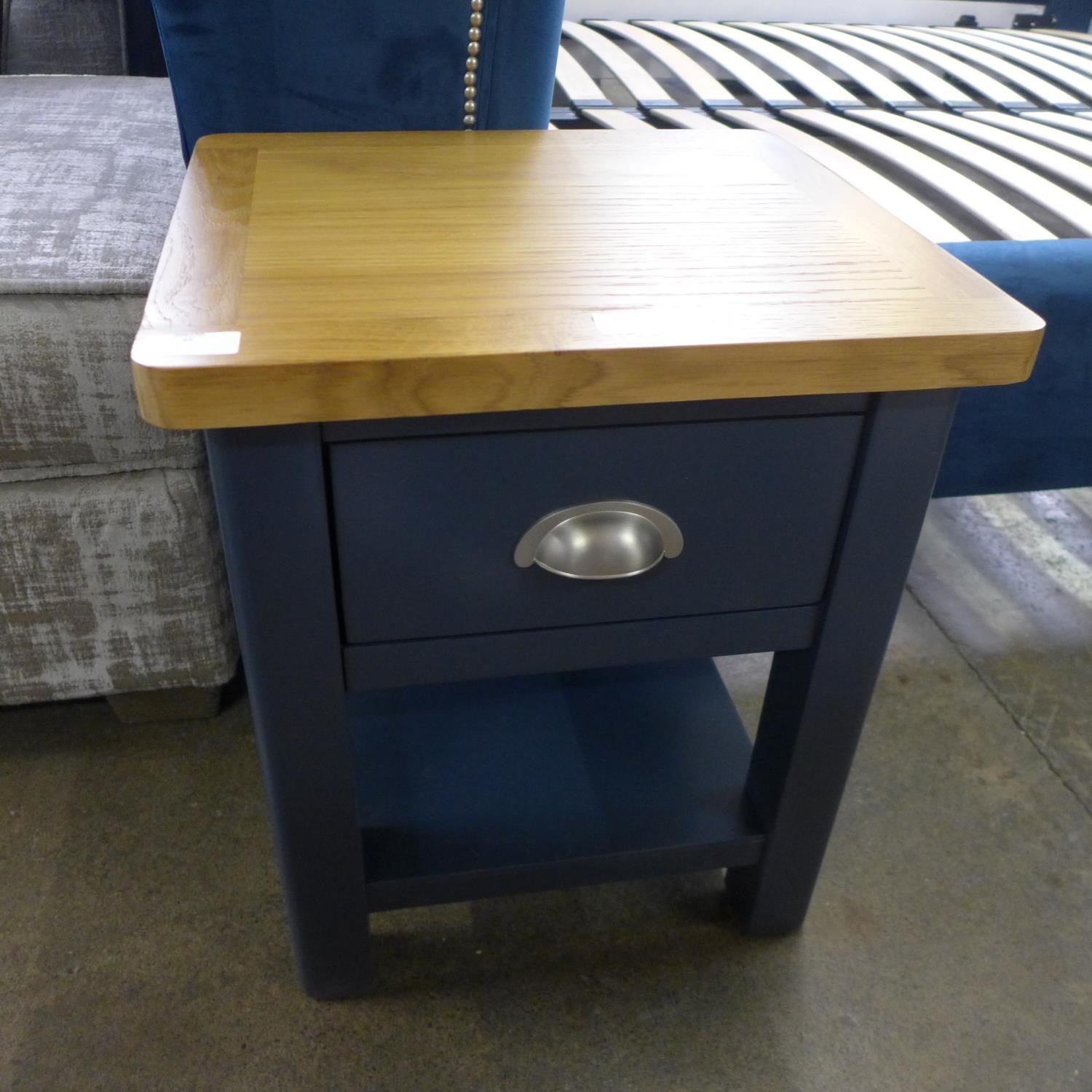 A Rutland blue painted oak lamp table with drawer (RA-LT-B) * This lot is subject to VAT