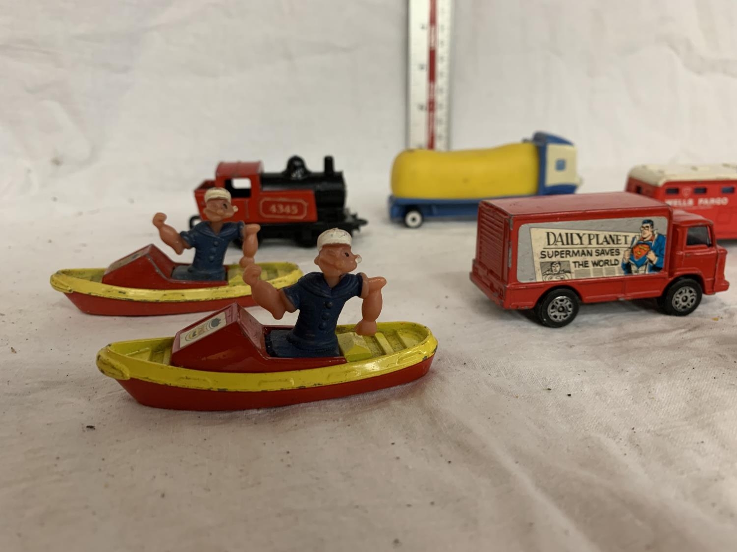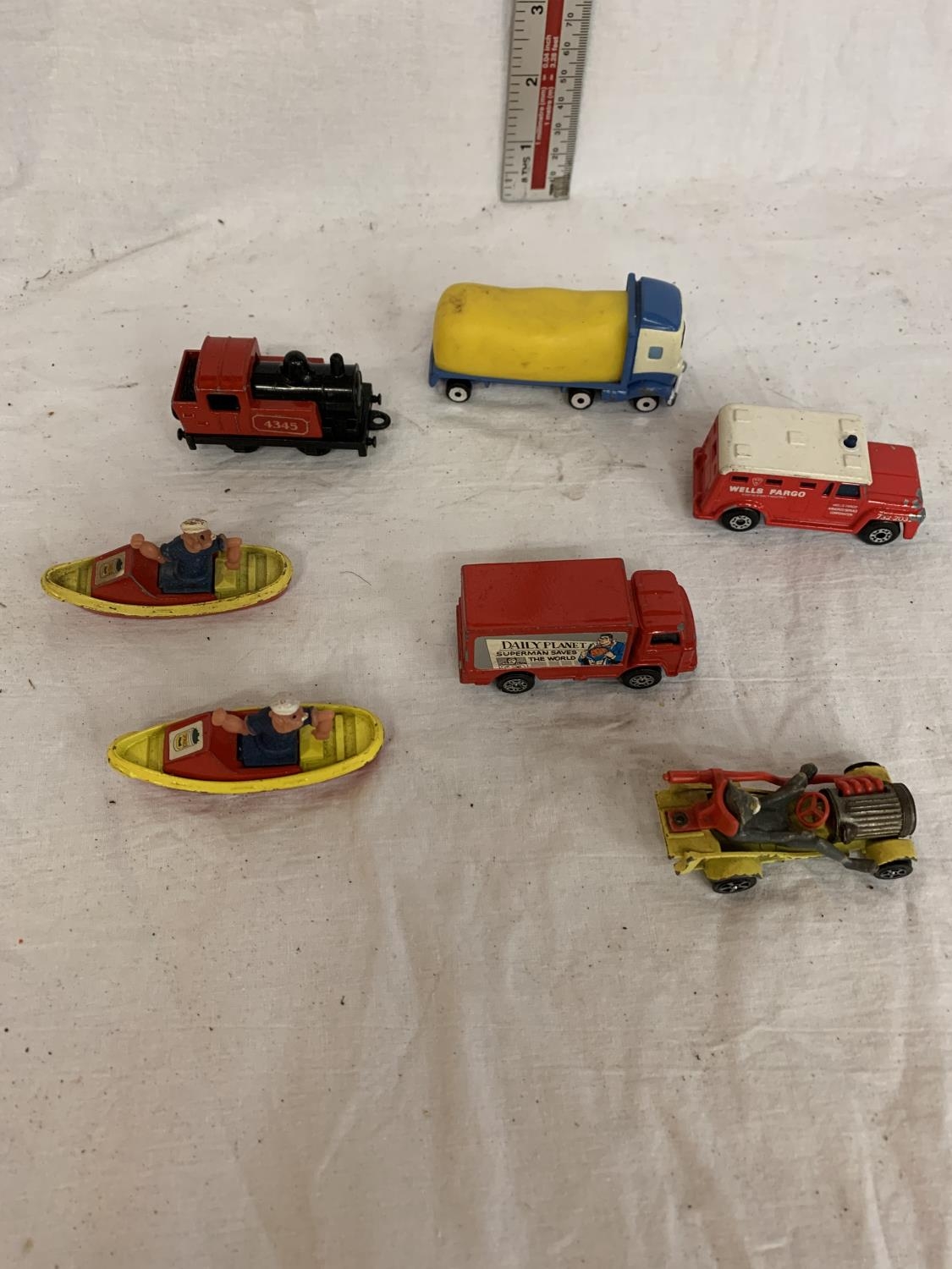 SEVEN VARIOUS TOY CARS AND BOATS