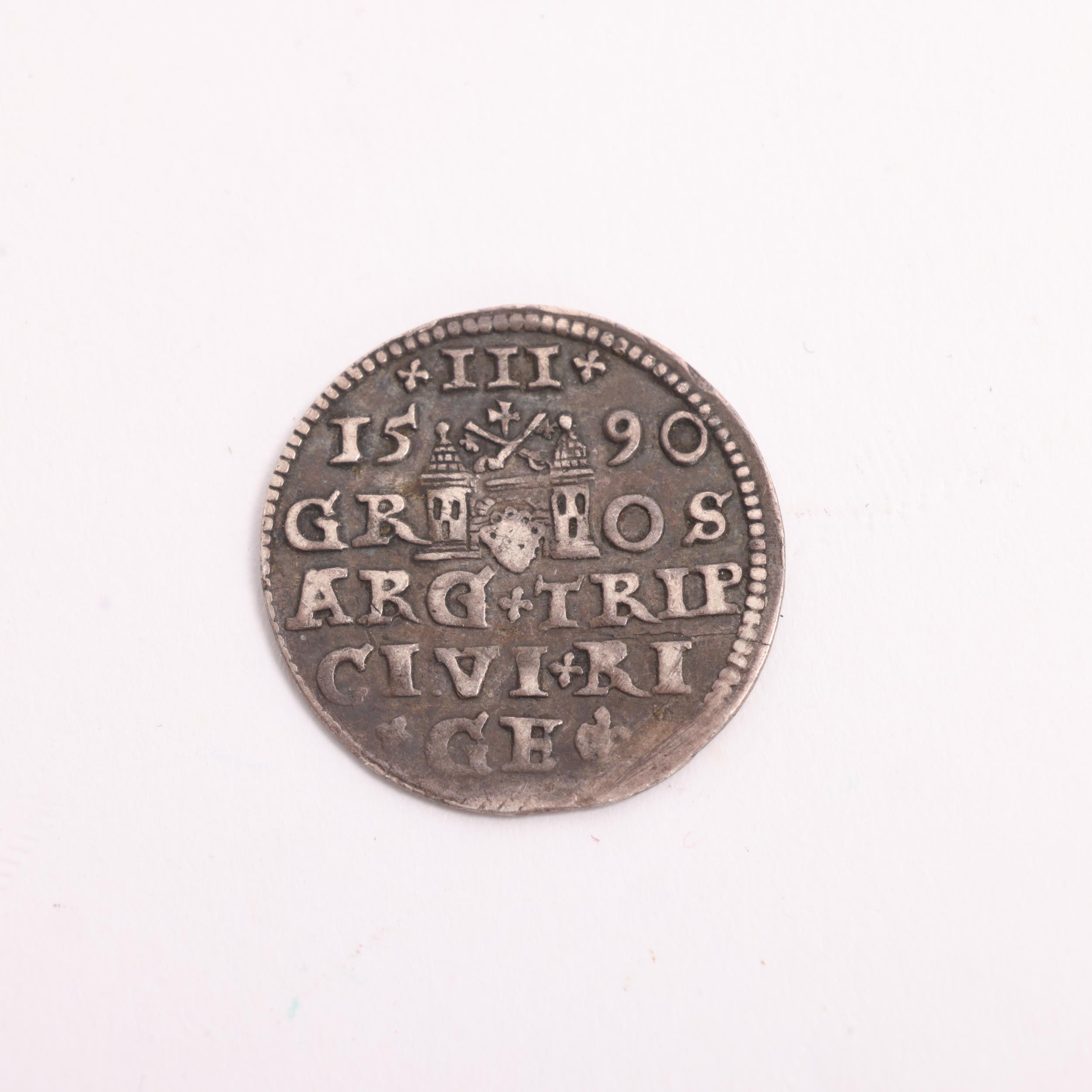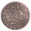 Sigismund III Poland/Lithuania, a 1590 silver 3 Groschen/Trojak coin, dia 21.5mm, weight 2.3g