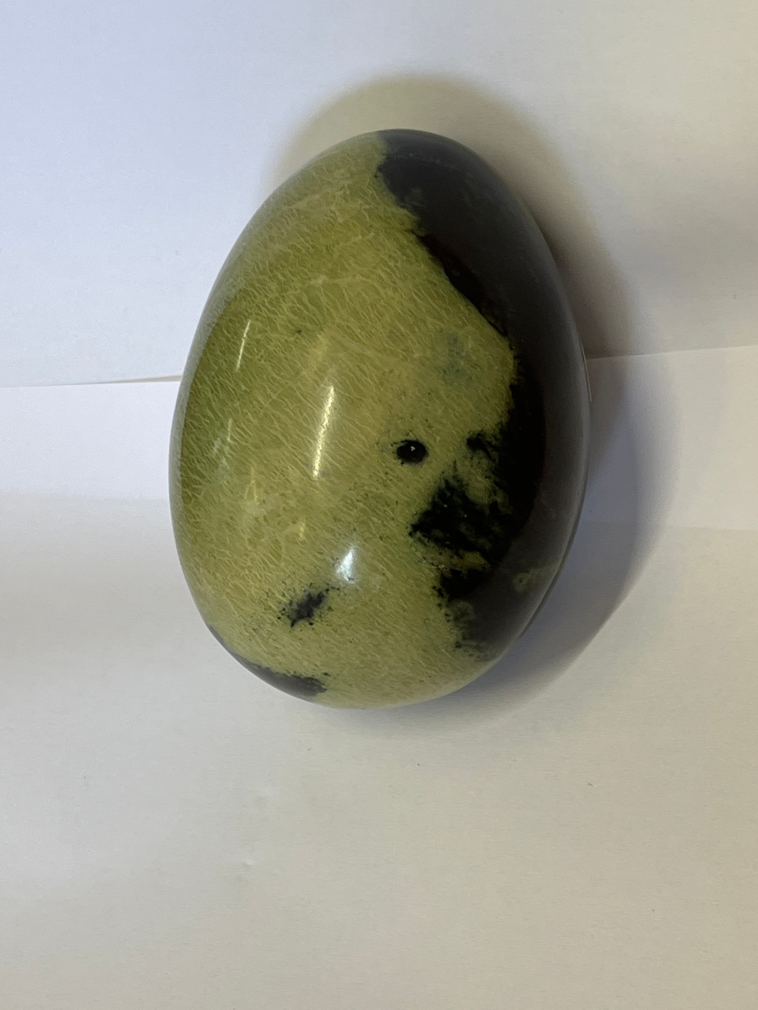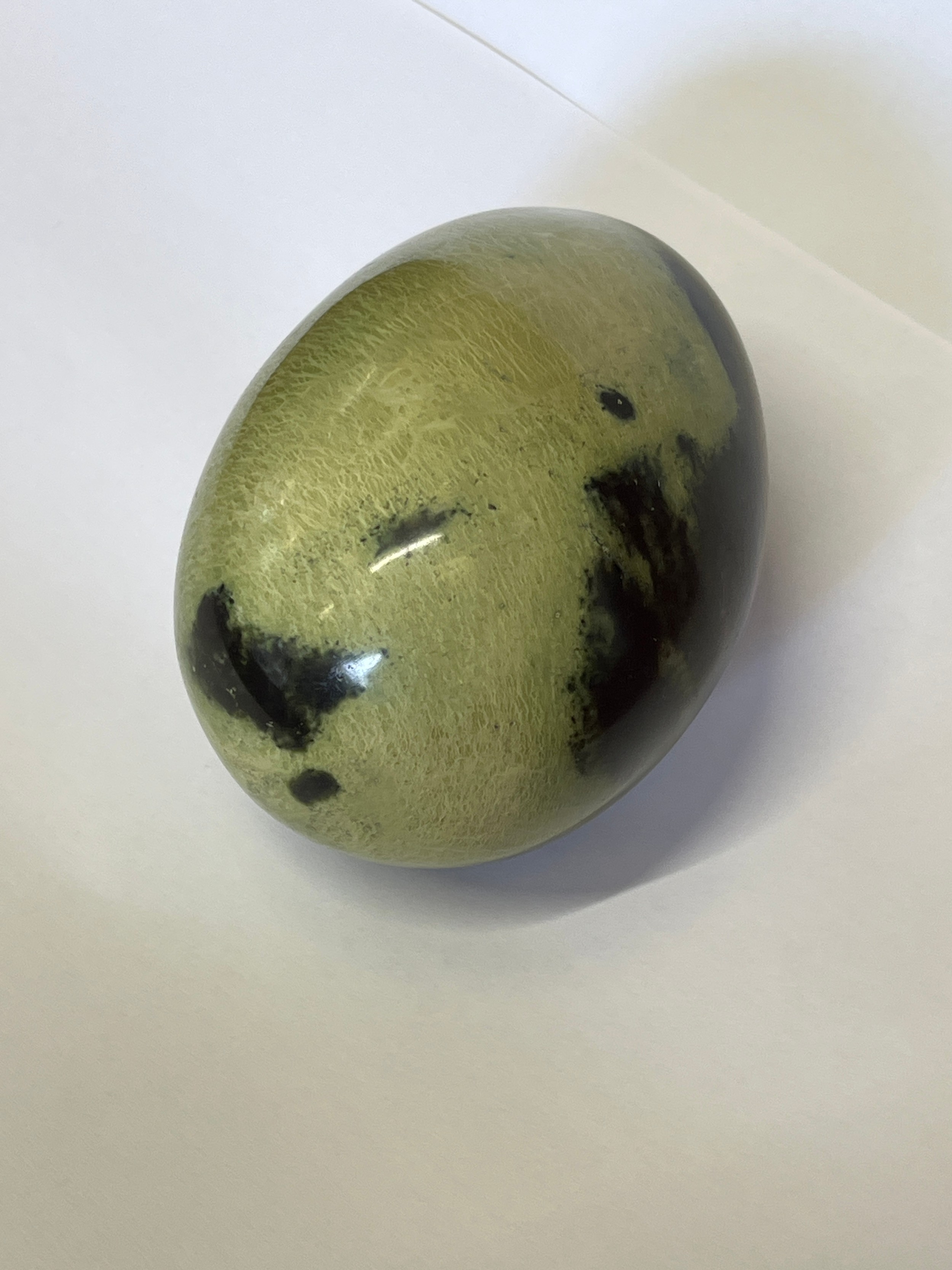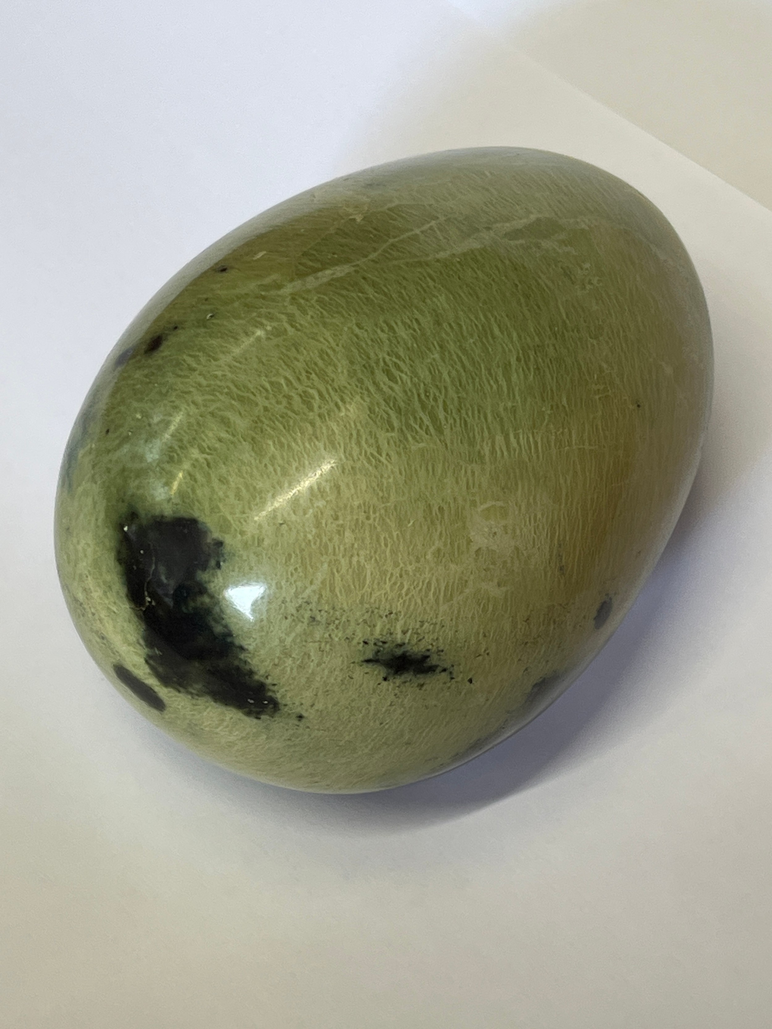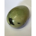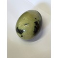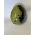 A CARVED EGG OF CHYTHA SERPENTINE STONE FROM SOUTH AFRICA
