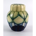 Moorcroft. Pottery ginger jar in the 'Indigo' pattern, design by Emma Bossons, stamped to the base, height 10.5cm approx. 1st quality.
