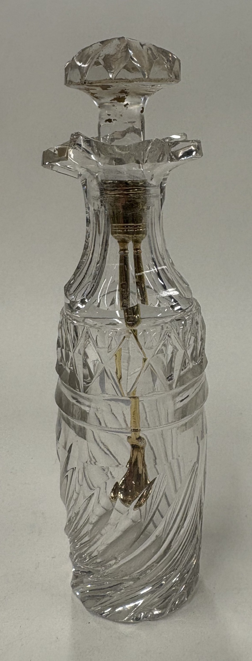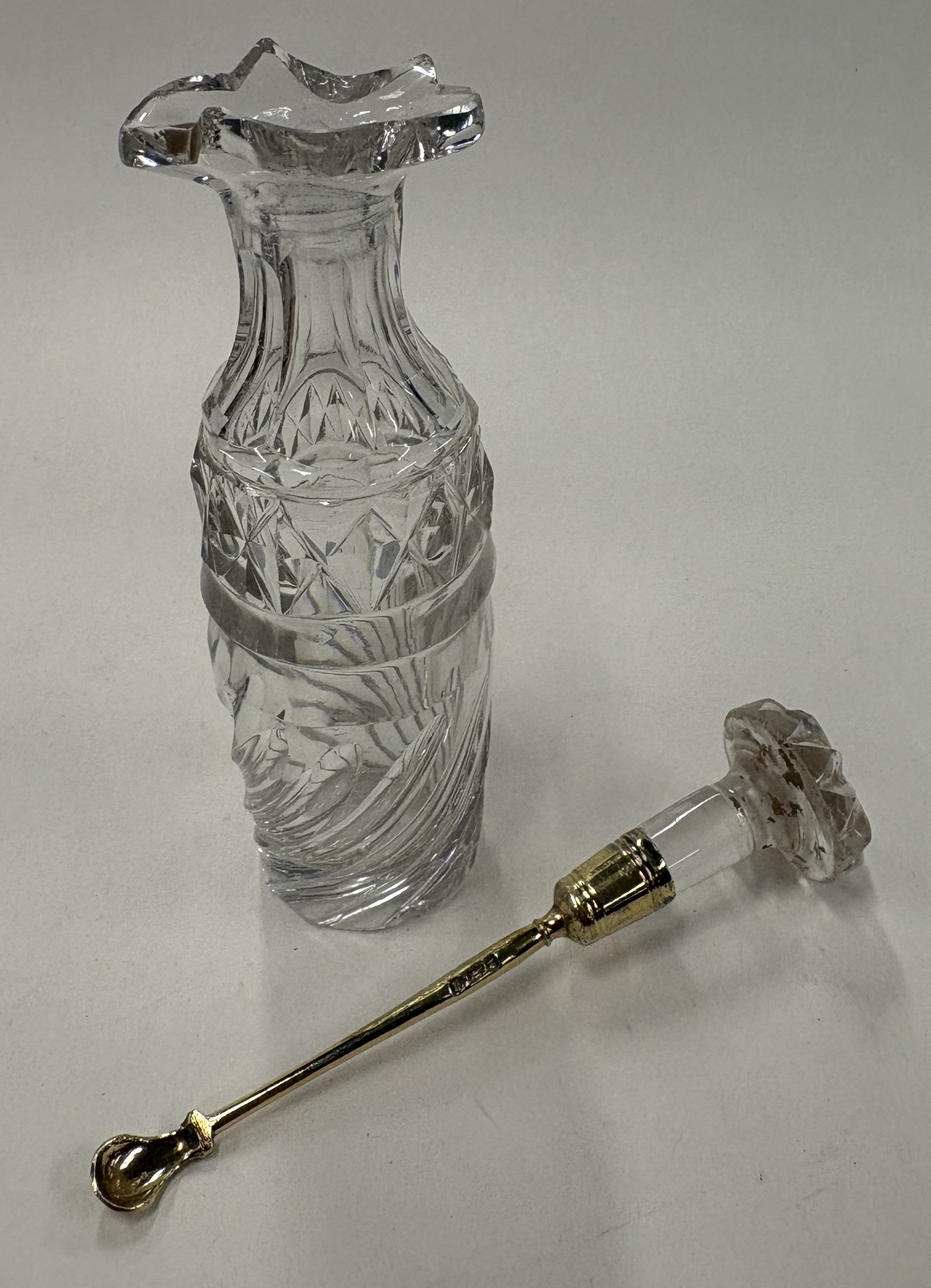 A Victorian glass medicinal jar with silver-gilt spoon. London 1838. Est. £30 - £40.