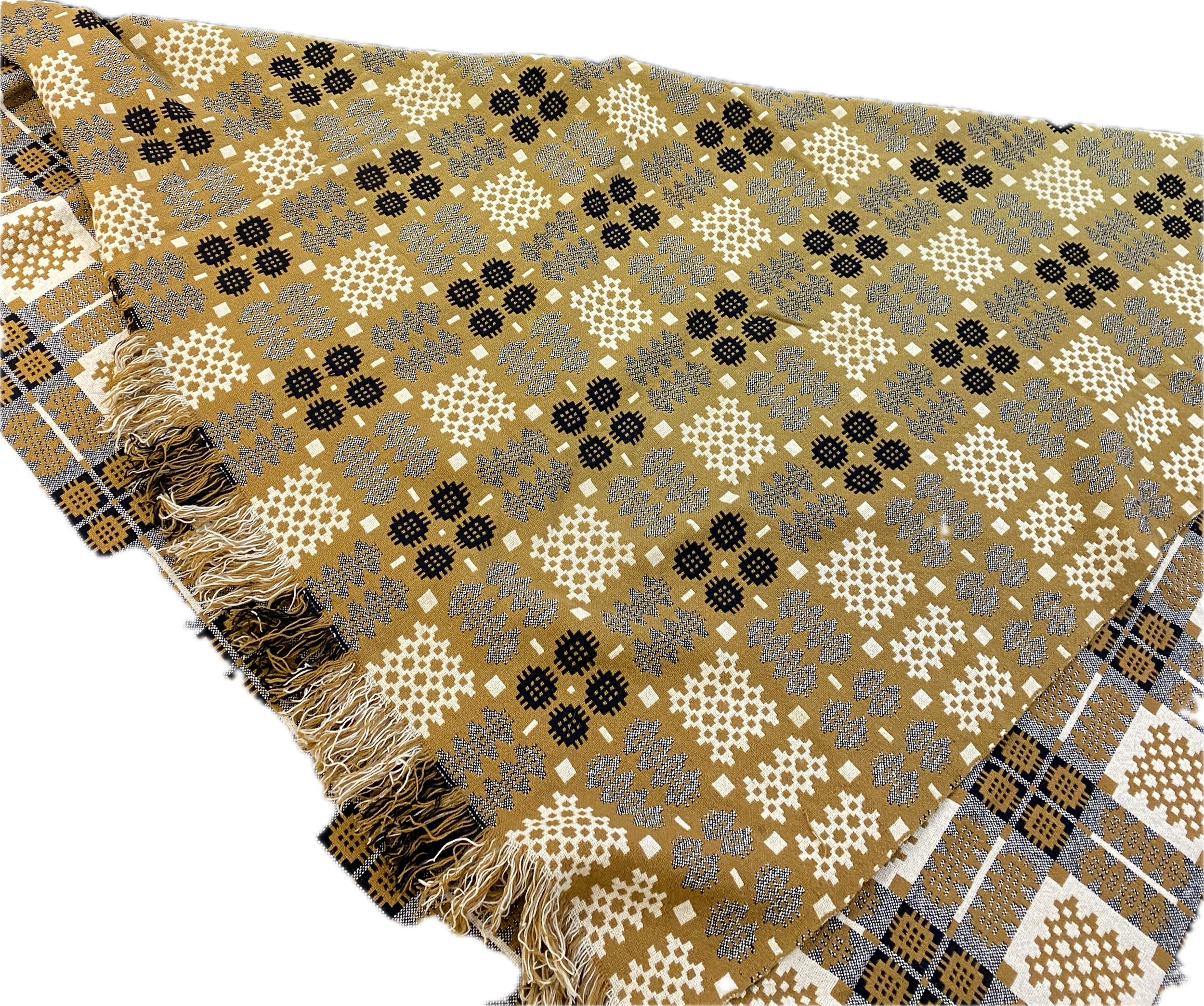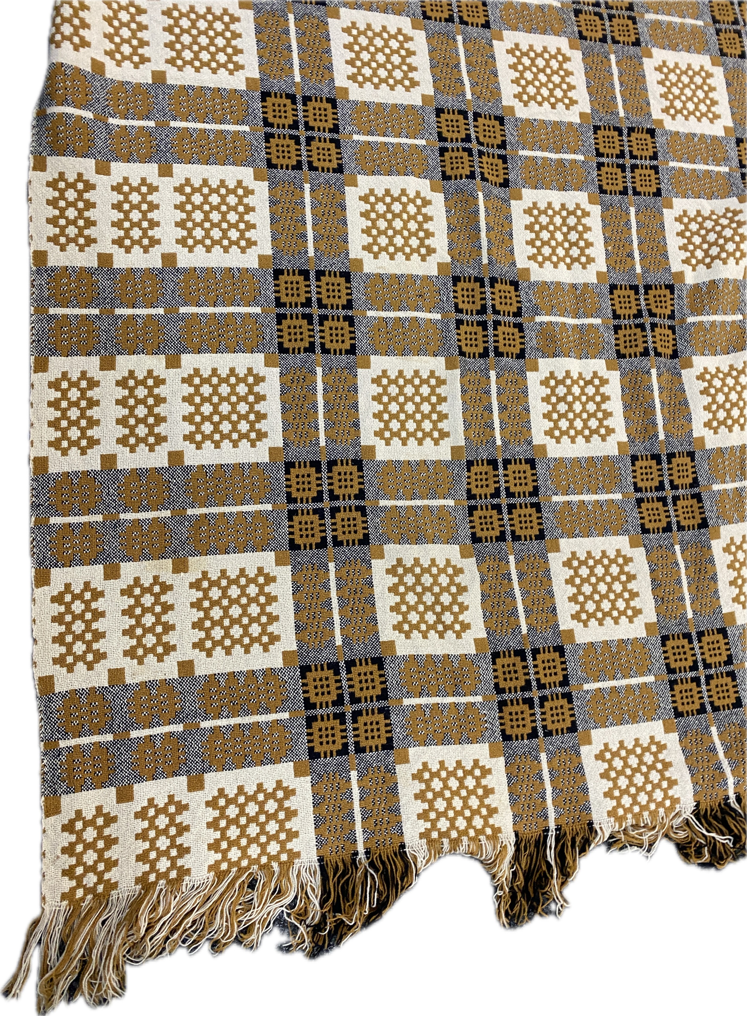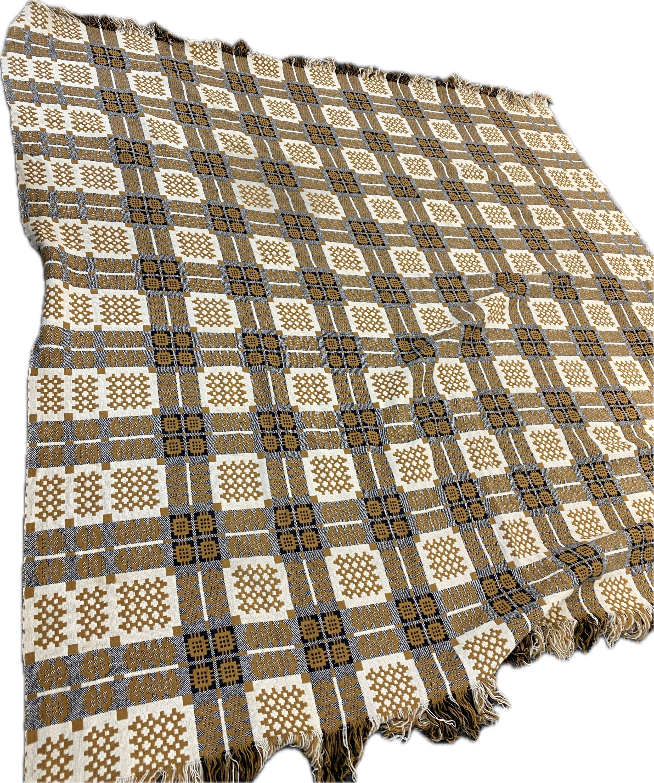 Vintage welsh double sided tapestry blanket measures approximately 90 inches by 93 inches