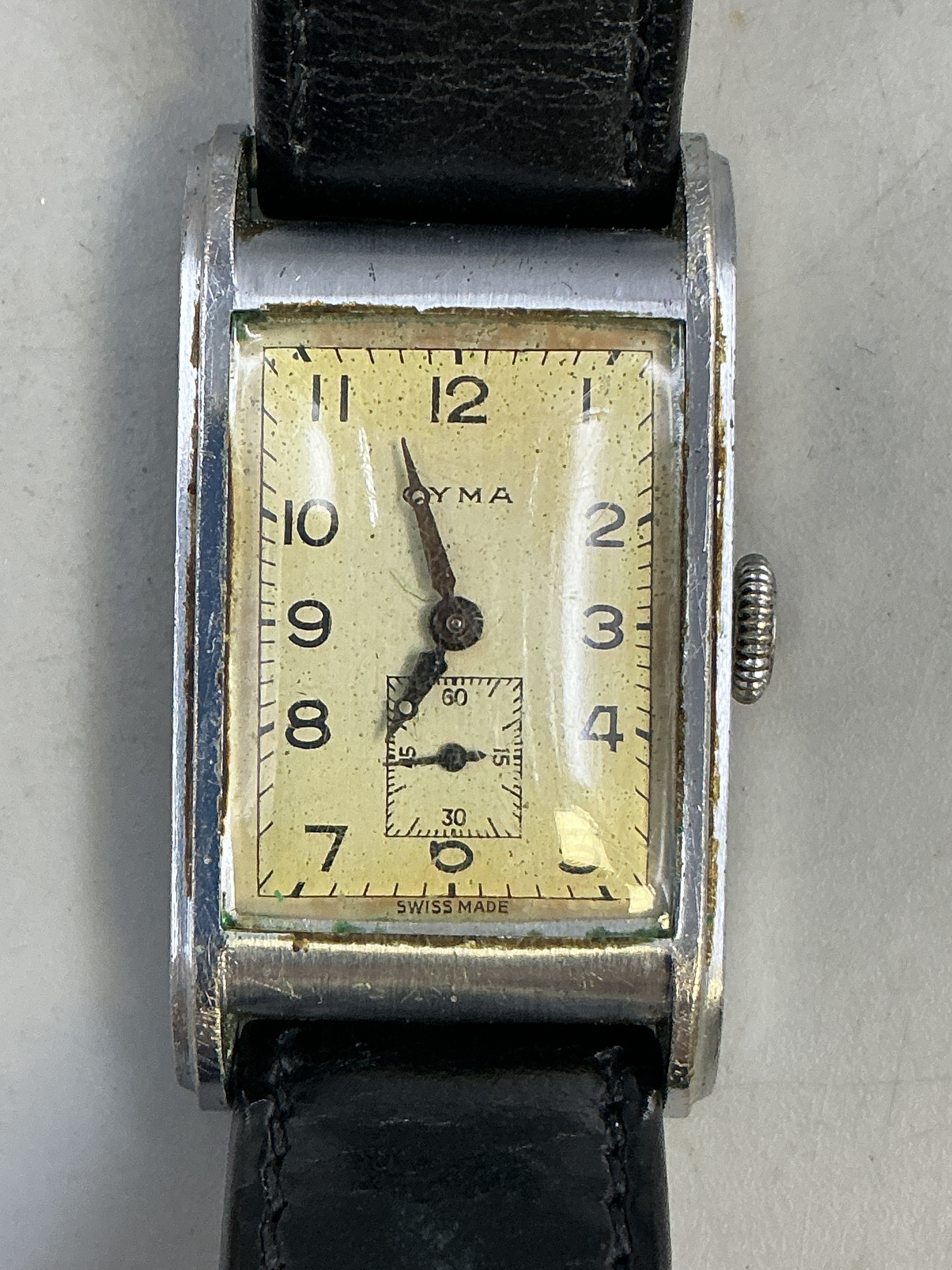 Vintage Swiss rectangular Cyna wristwatch circa 1930-40s