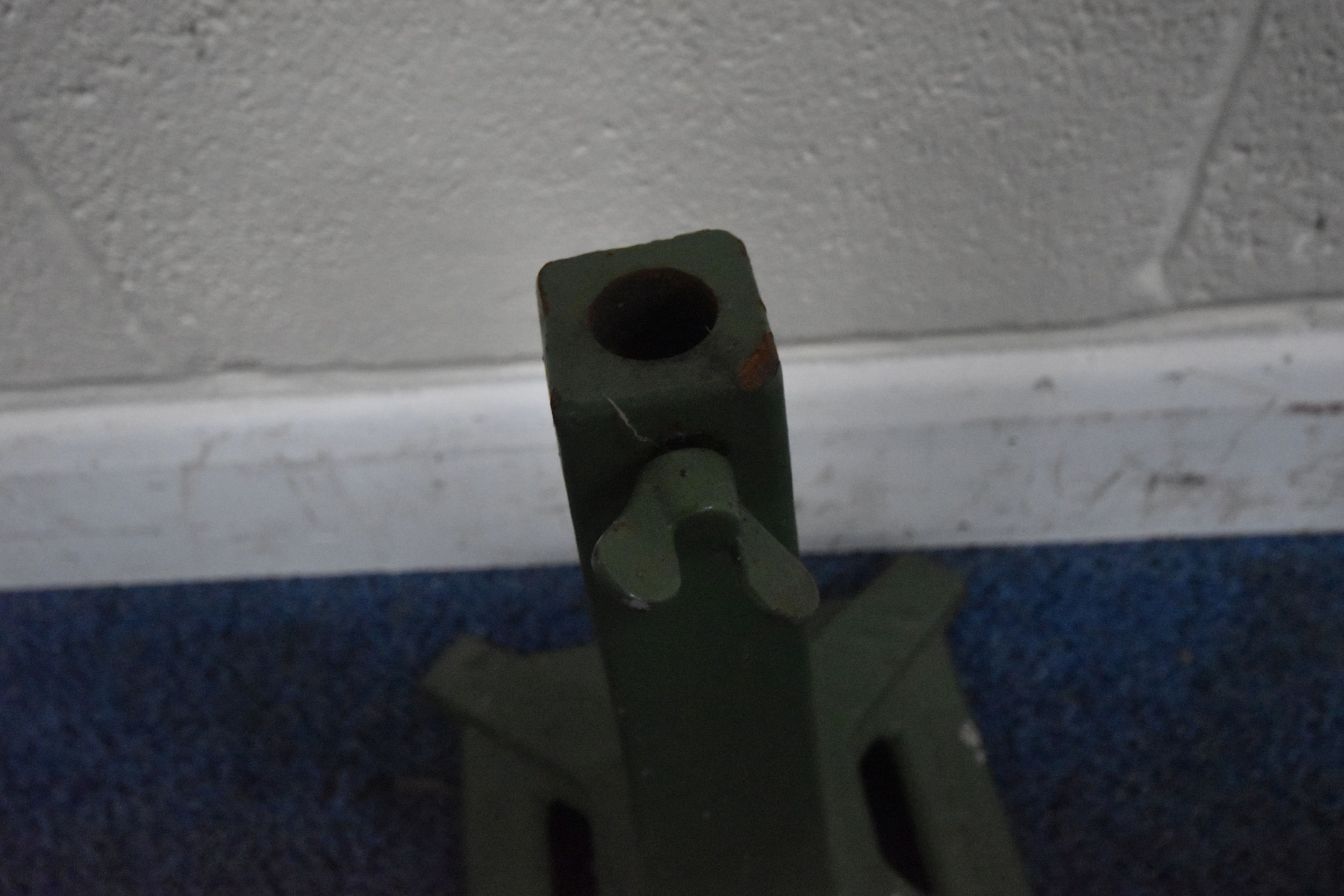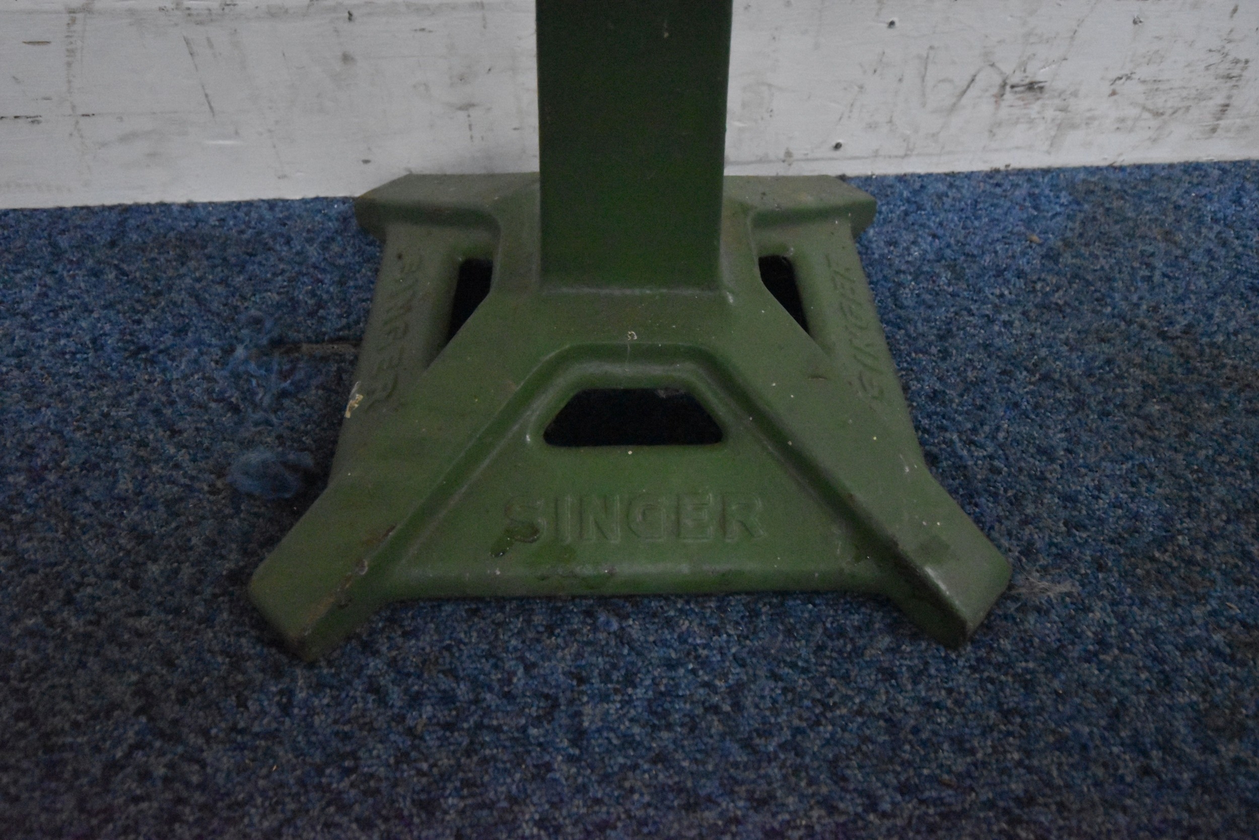 A GREEN PAINTED CAST IRON SINGER MACHINIST STOOL BASE, height 39cm, condition report: top section missing, general signs of usage