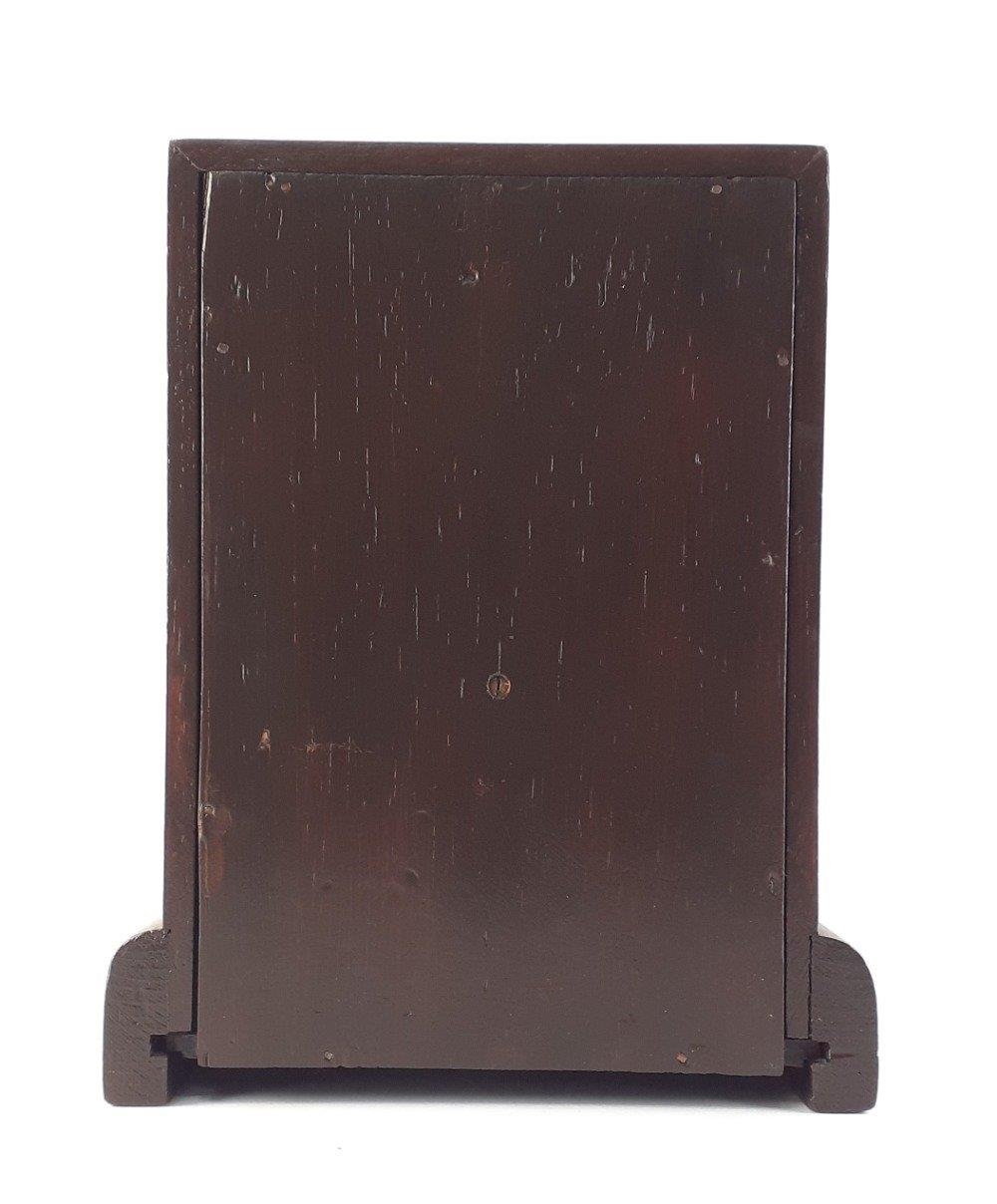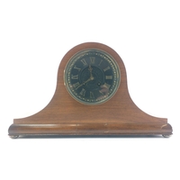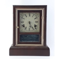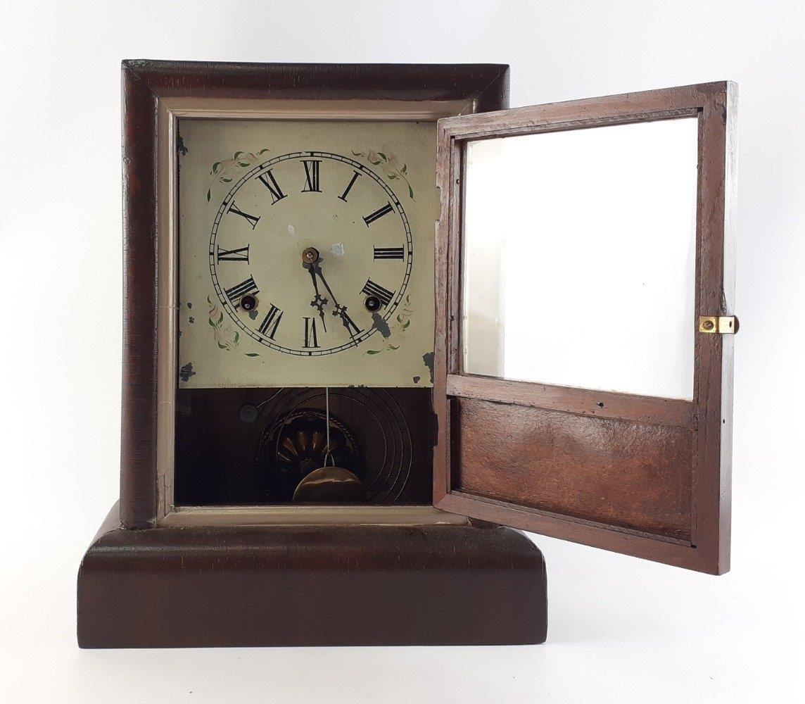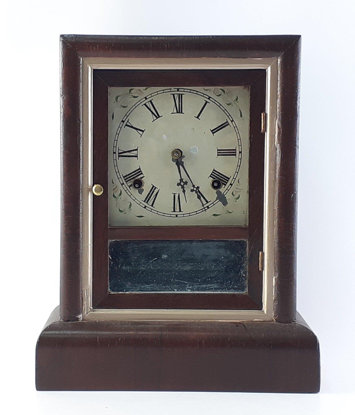 A Square faced mirrored mantle clock. 34cm tall. Complete with key and pendulum.