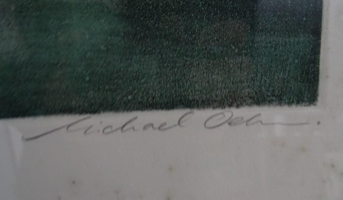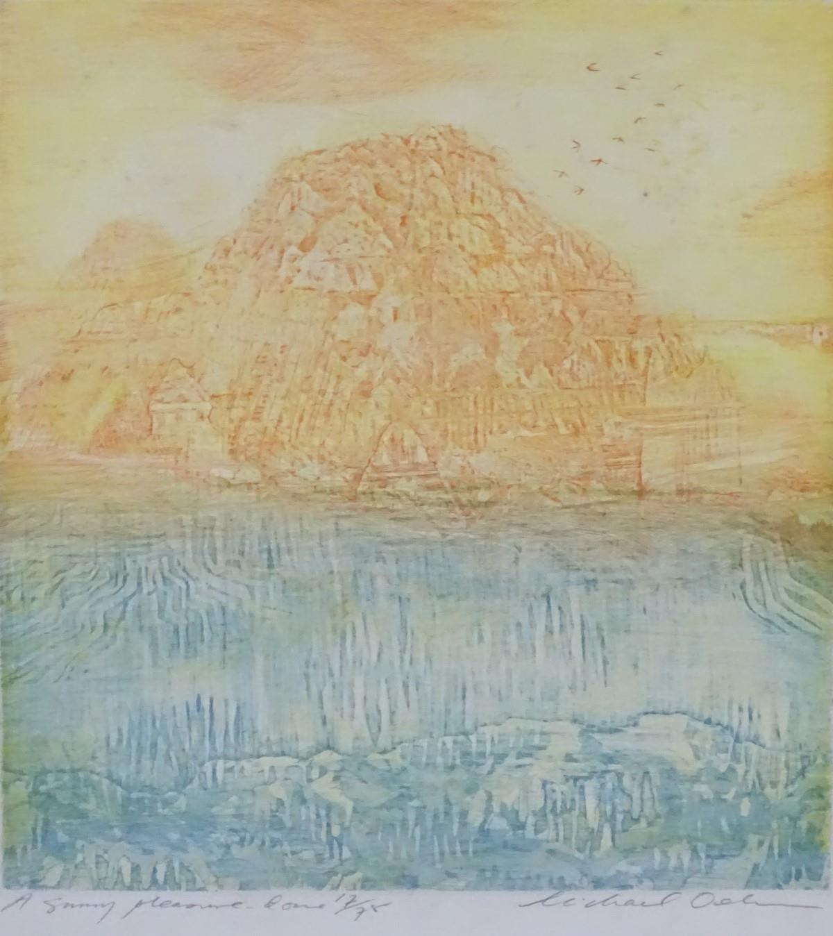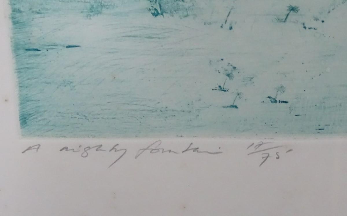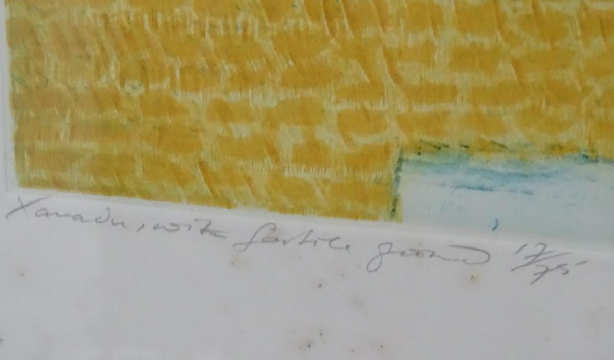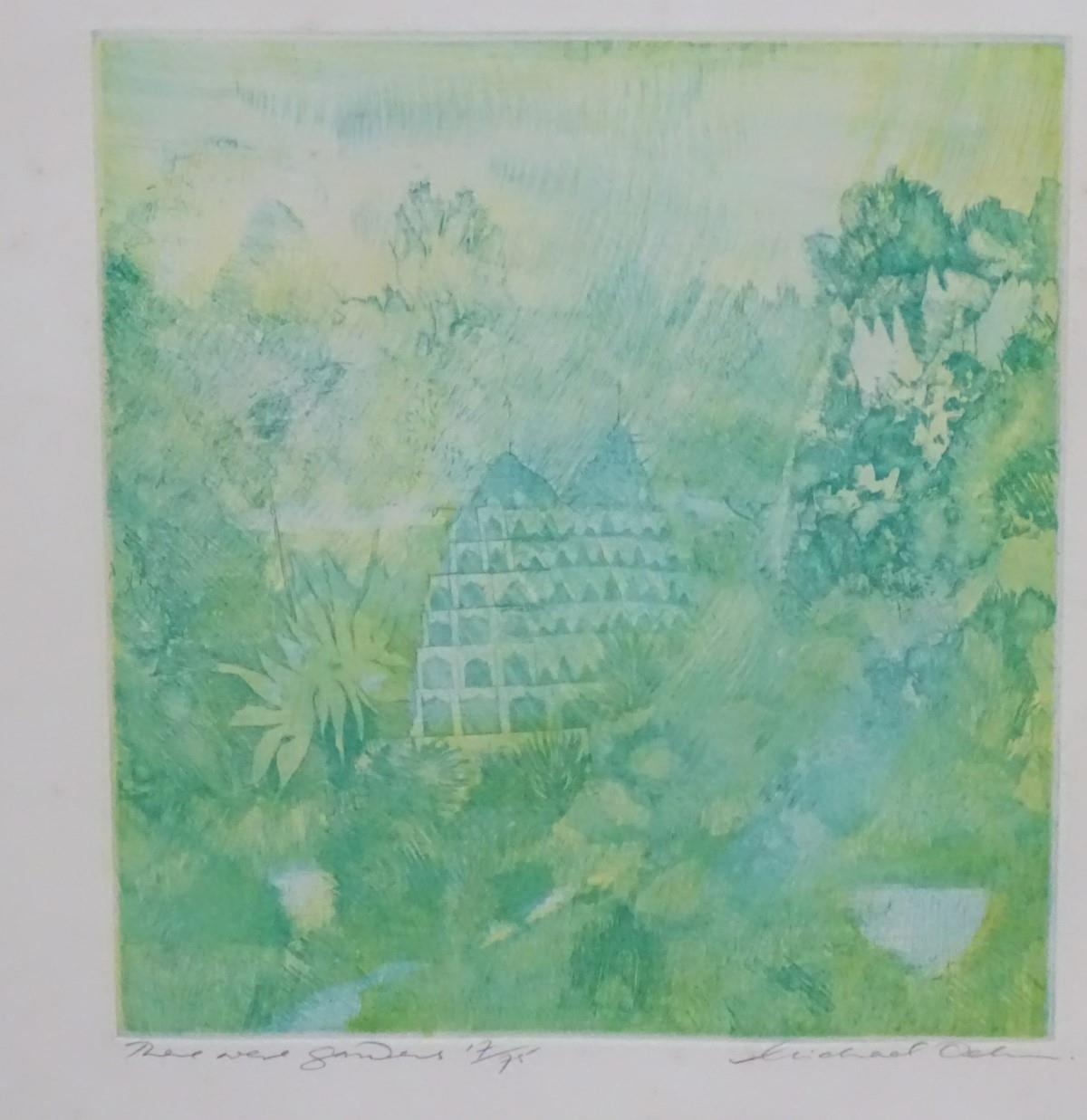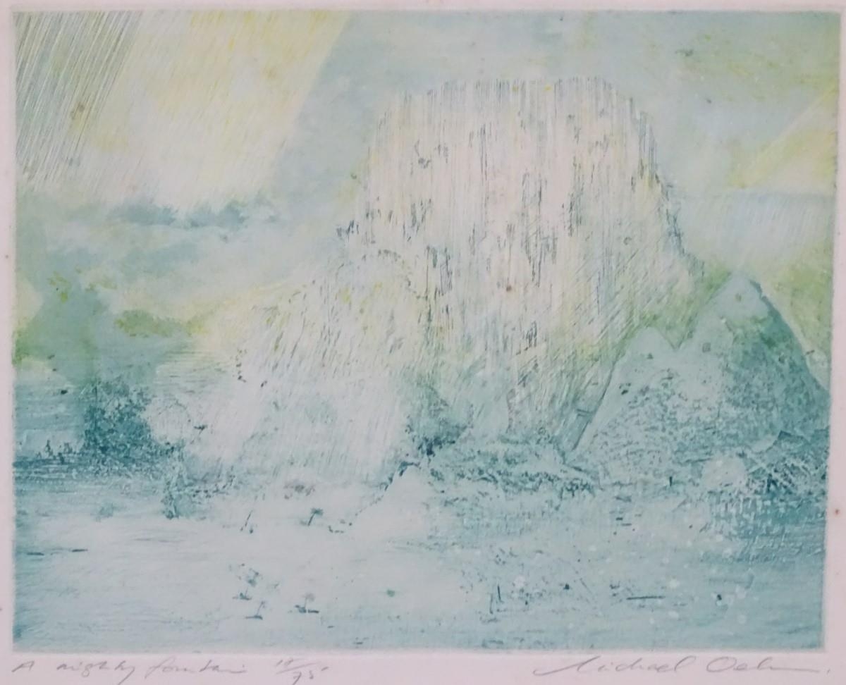 Michael Oelman (1941-), Etchings (7), 'Xanadu', 'A Mighty Fountain', (17/75) 'There Were Gardens', (17/75) 'A Sunless Sea', (17/75) 'A Sunny Pleasure Dome', (17/75) 'Alph, The Sacred River', (17/75) together with the poem 'Kubla Khan' by Samuel Taylor Coleridge, with framed signed proof of the portfolio. Portrait etchings approx. 12 3/4 x 11 3/4'' Landscape etchings approx. 10 3/4 x 13 3/4'' Published by Gorner & Miller in a first edition limited to 75 portfolios of 6 etchings, each titled, numbered and signed by the artist.