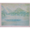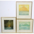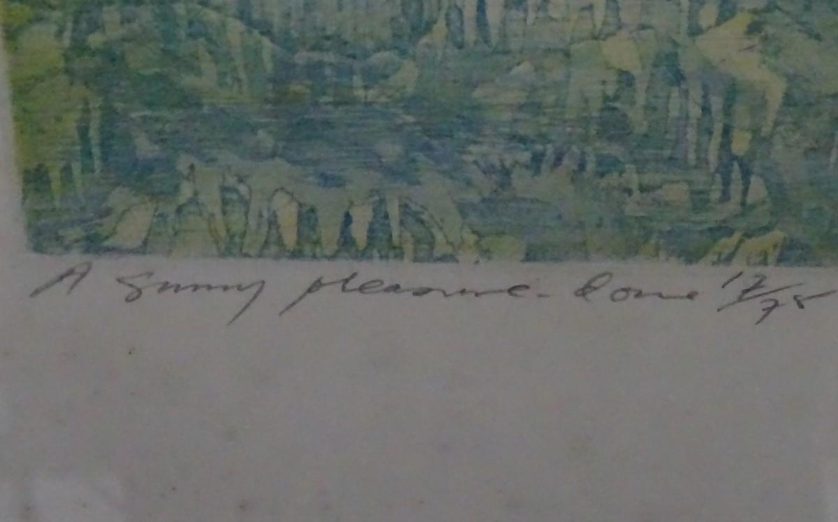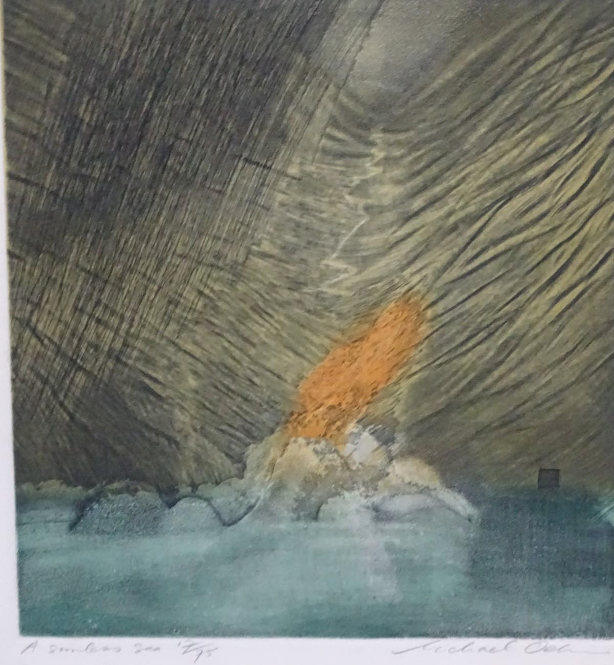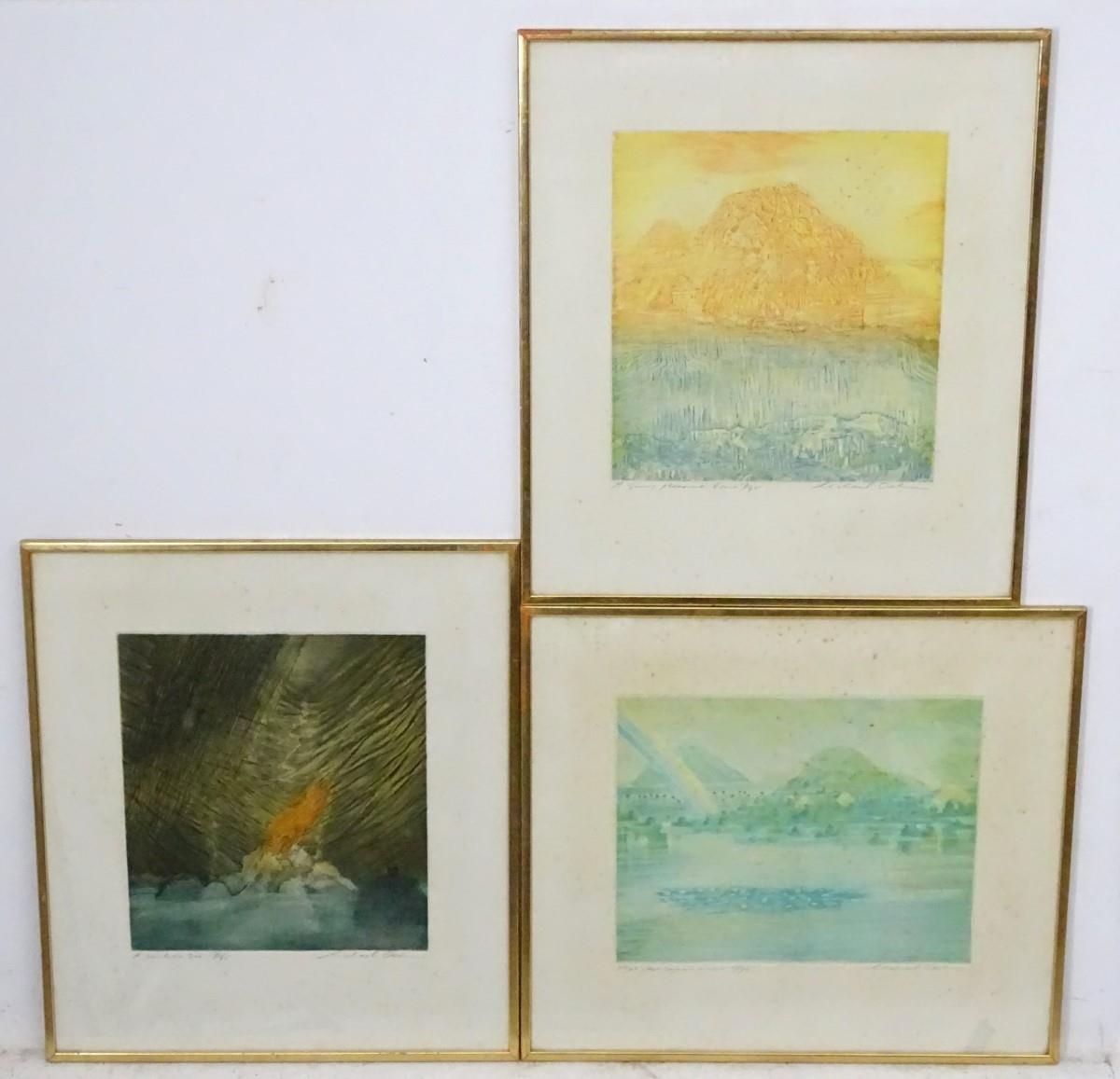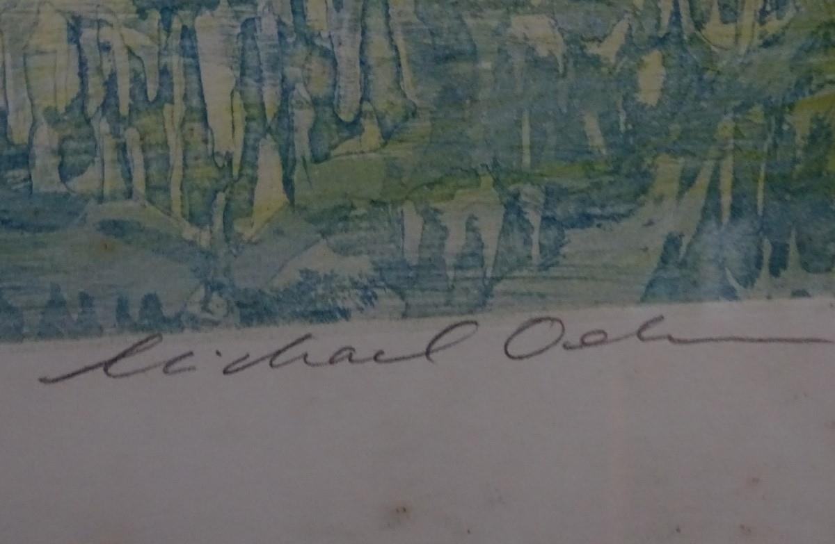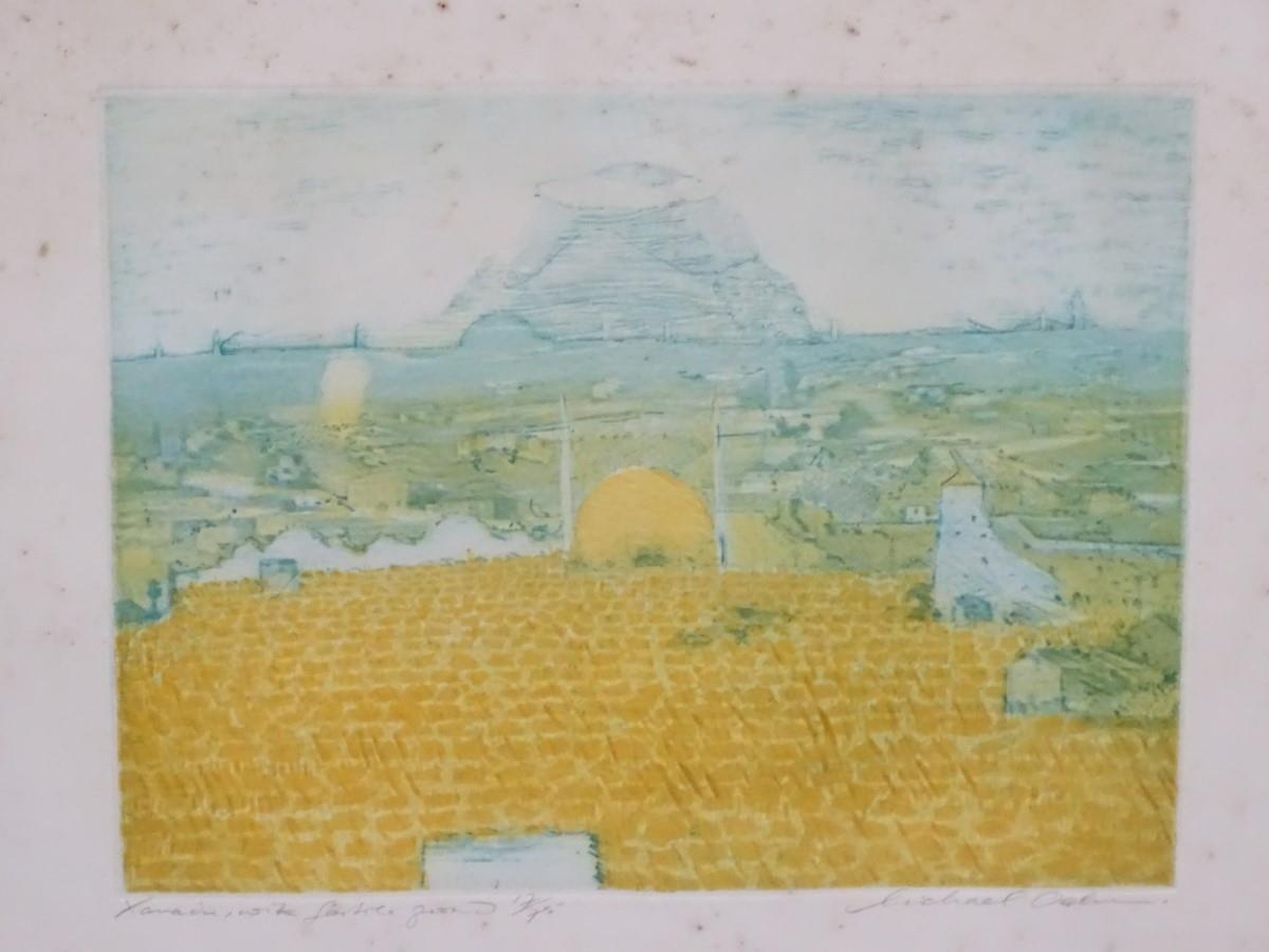 Michael Oelman (1941-), Etchings (7), 'Xanadu', 'A Mighty Fountain', (17/75) 'There Were Gardens', (17/75) 'A Sunless Sea', (17/75) 'A Sunny Pleasure Dome', (17/75) 'Alph, The Sacred River', (17/75) together with the poem 'Kubla Khan' by Samuel Taylor Coleridge, with framed signed proof of the portfolio. Portrait etchings approx. 12 3/4 x 11 3/4'' Landscape etchings approx. 10 3/4 x 13 3/4'' Published by Gorner & Miller in a first edition limited to 75 portfolios of 6 etchings, each titled, numbered and signed by the artist.