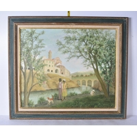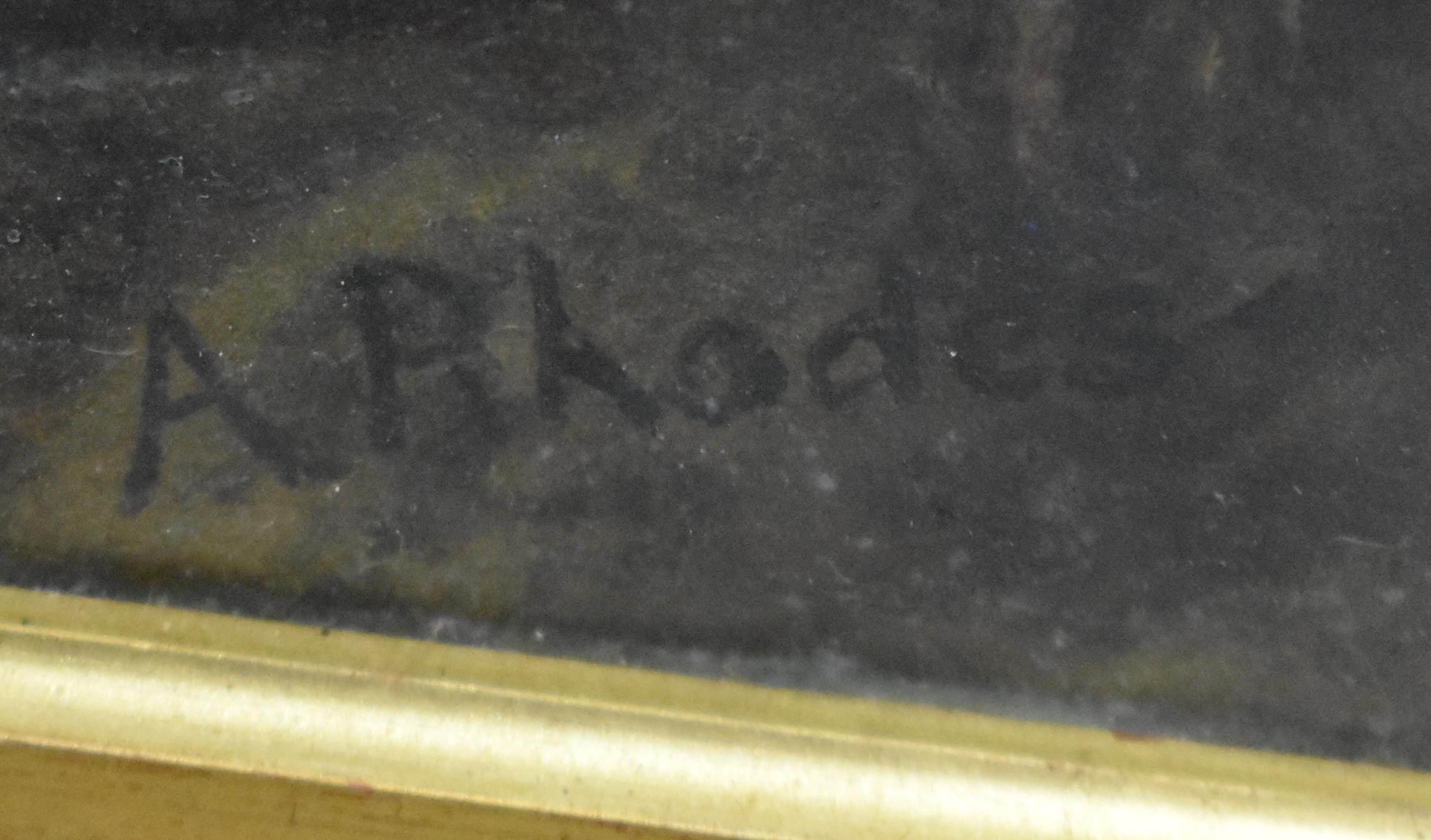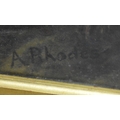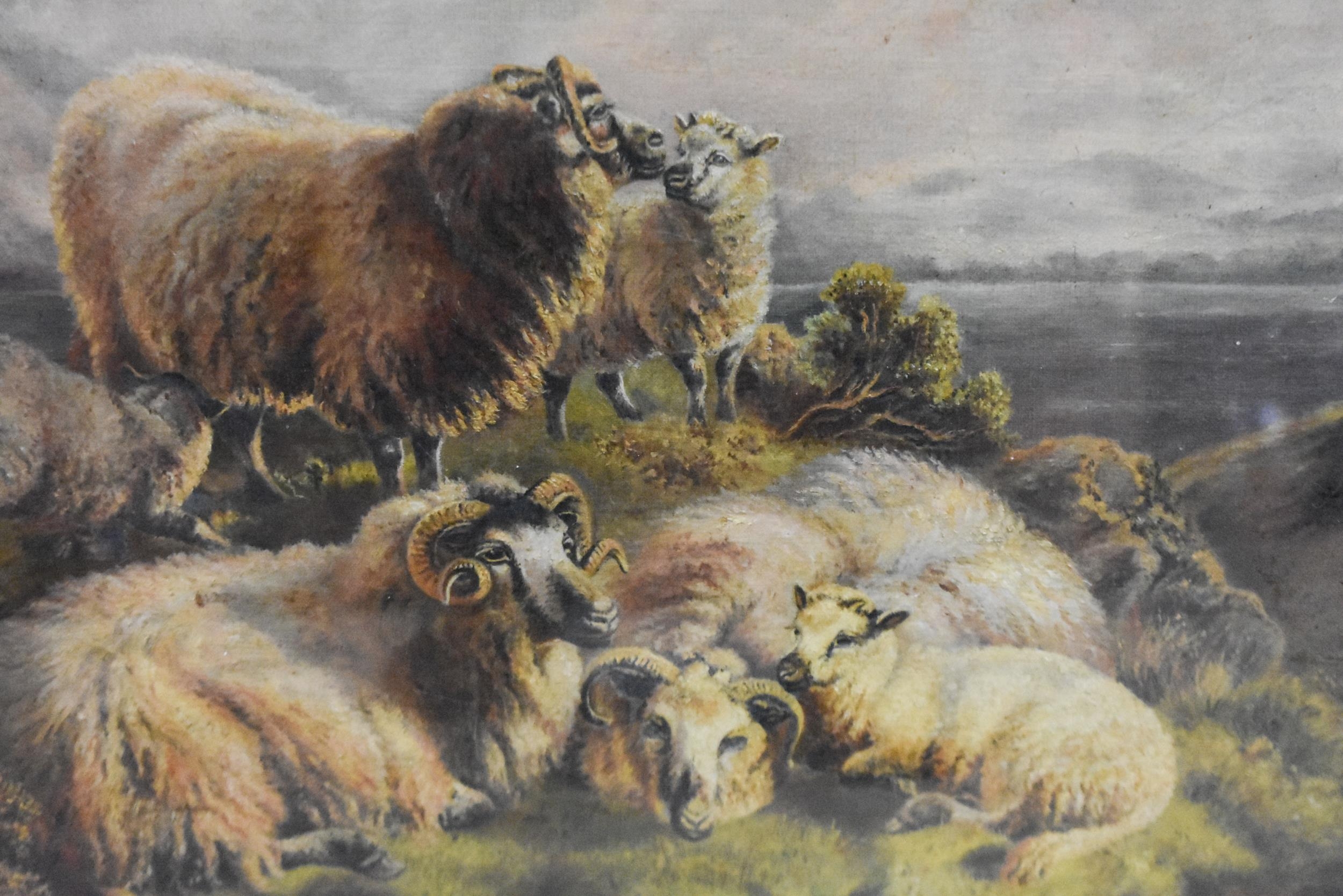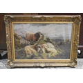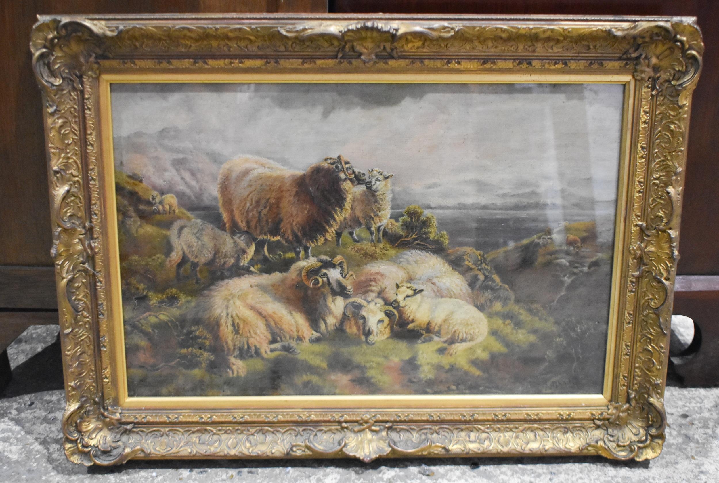 A circle of Robert Watson late 19th Century, framed oil on canvas depicting sheep in a landscape signed A Rhodes 36 x 57cm frame 52 x 72cm