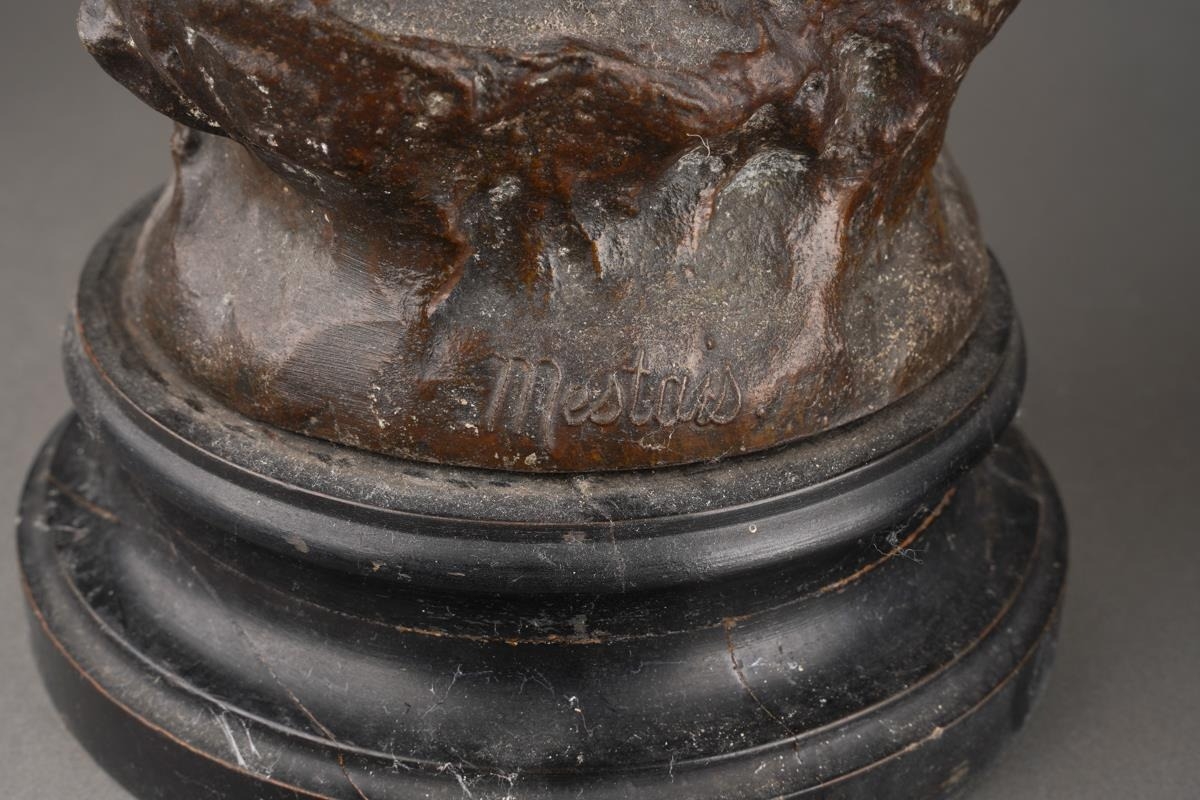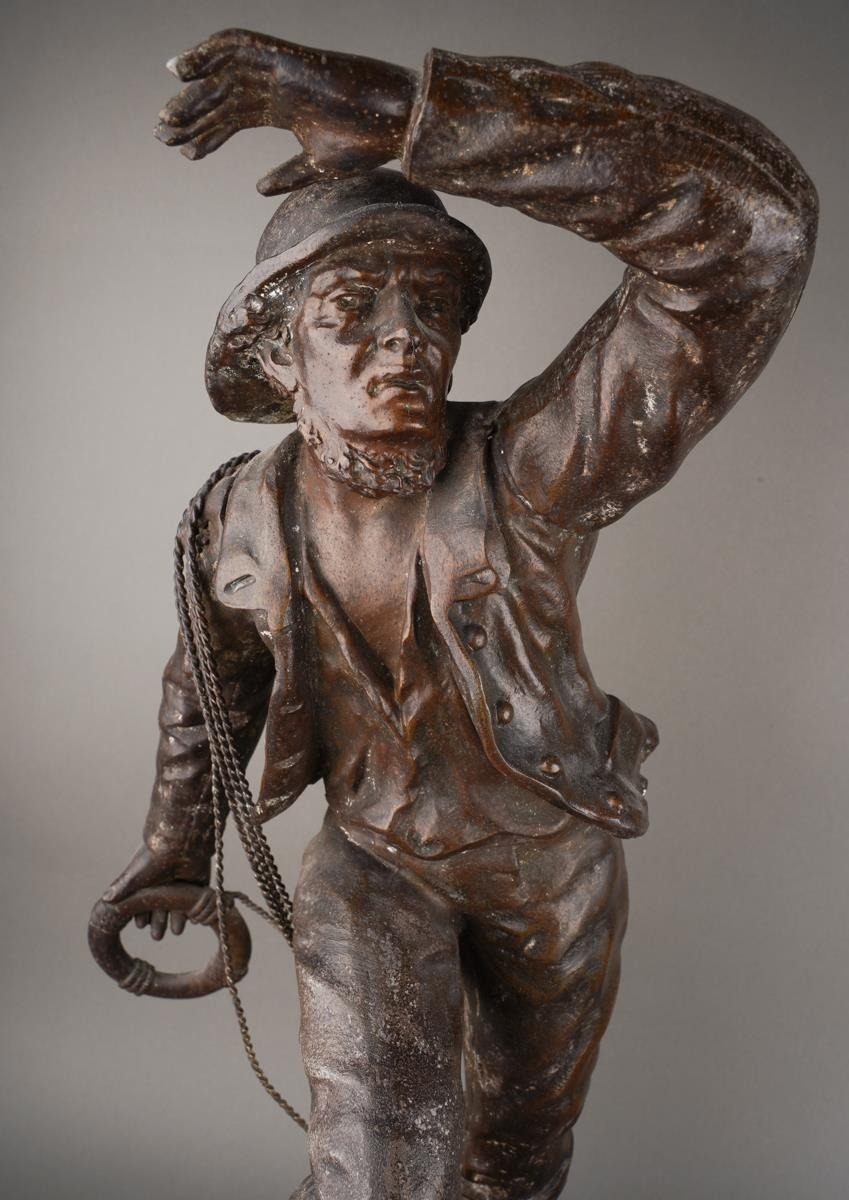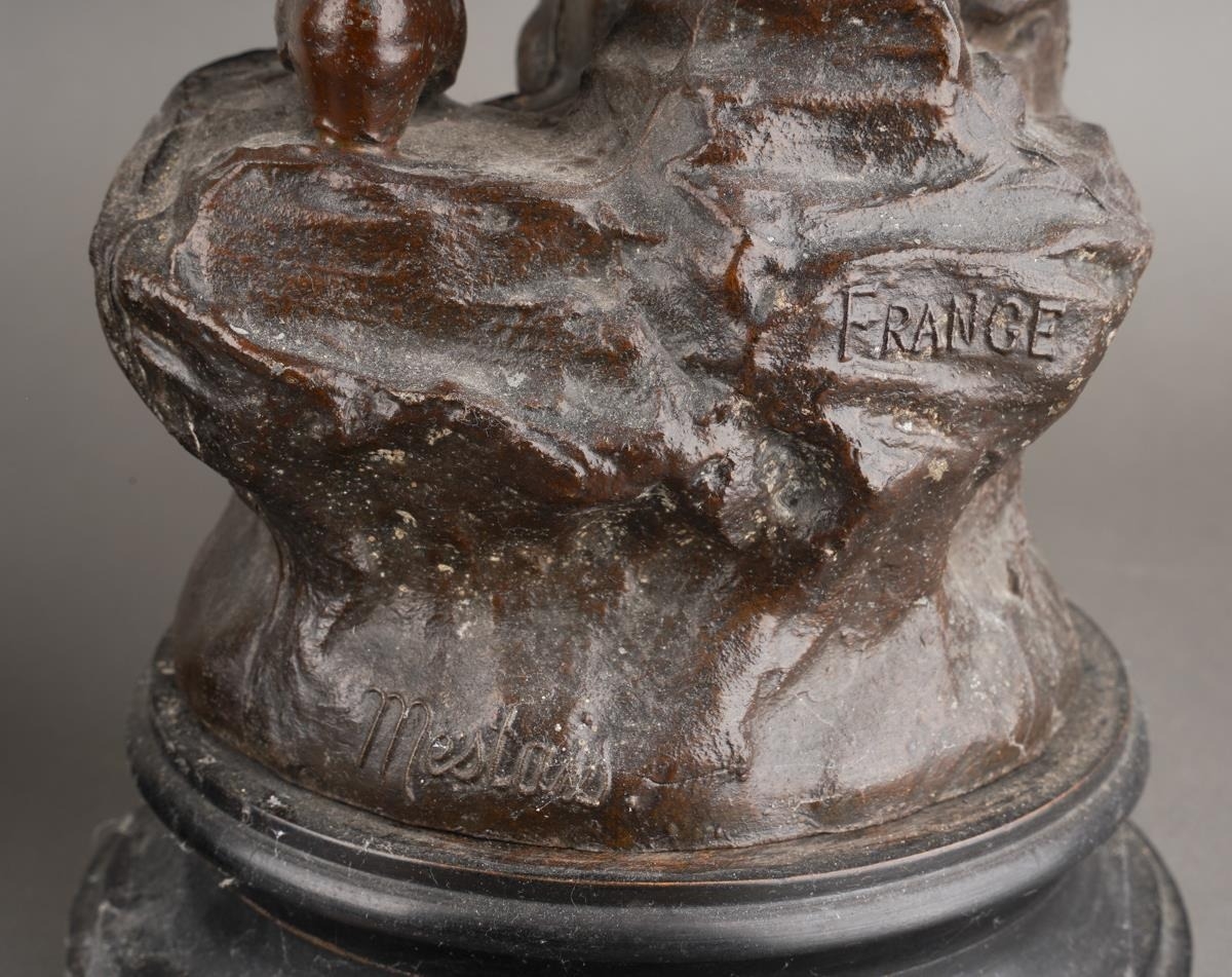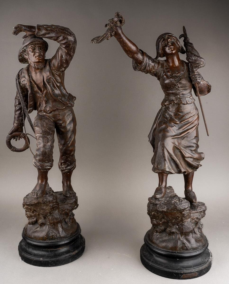 After Mestais, a pair of French Spelter figures of a Fisherman and Wife titled "Distress" and "Rescue", on socle bases, approx 55cm high [2]