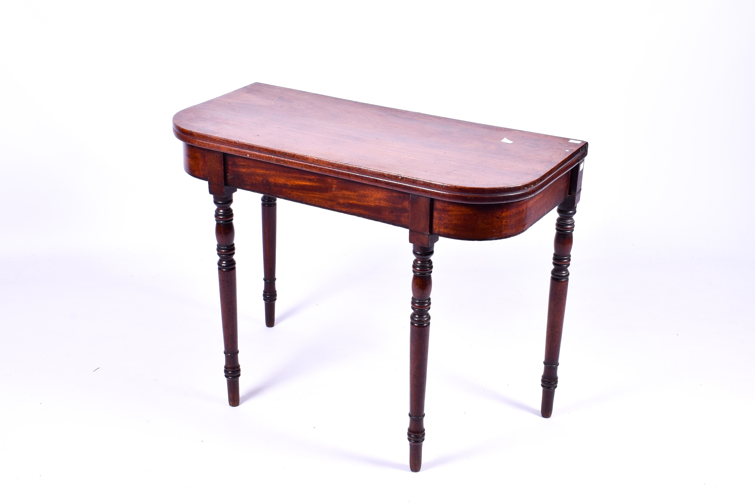 19th Century mahogany fold-over tea/card table. H72cm x W92cm x D44cm (closed)
